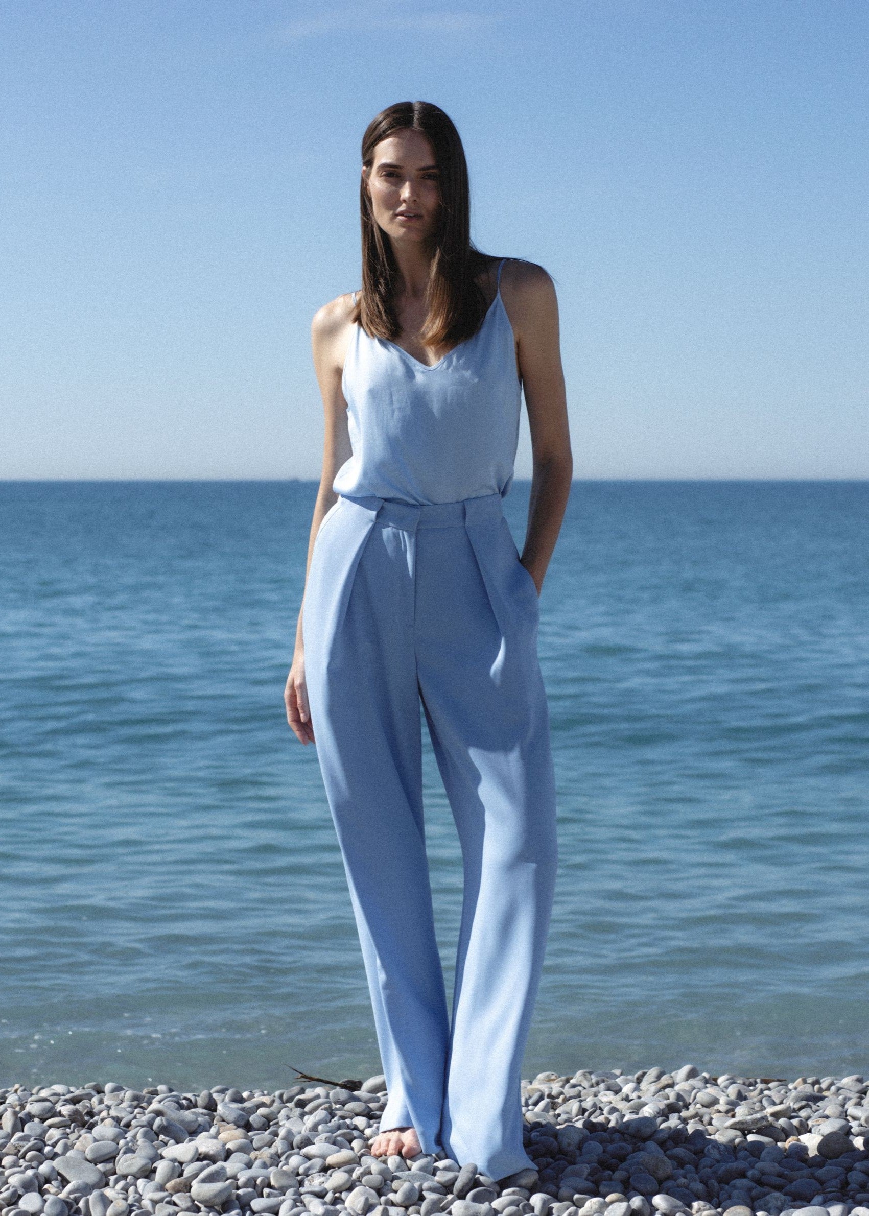 LIGHT BLUE WIDE-LEG TROUSERS