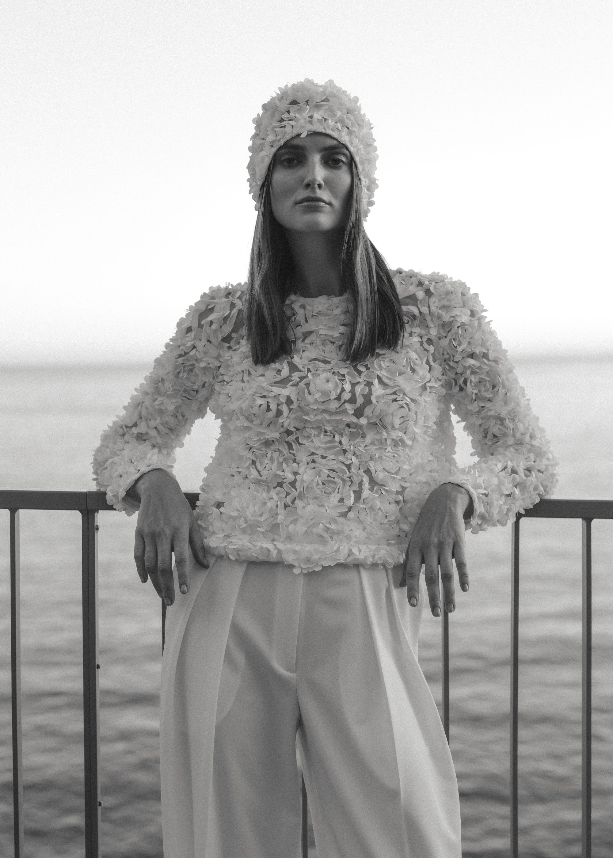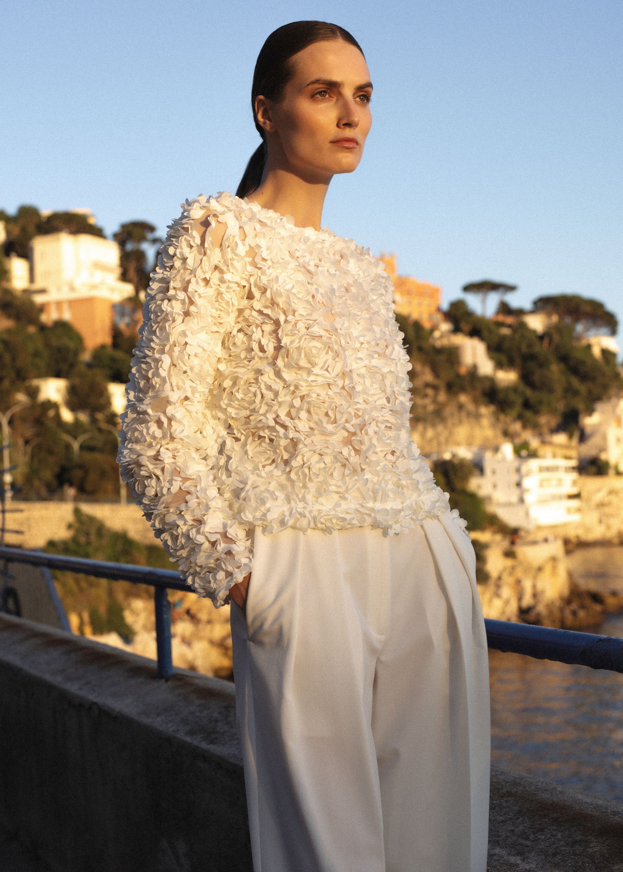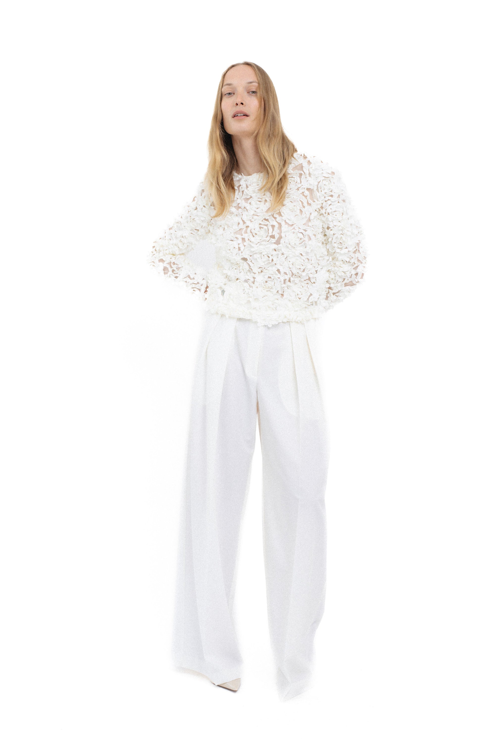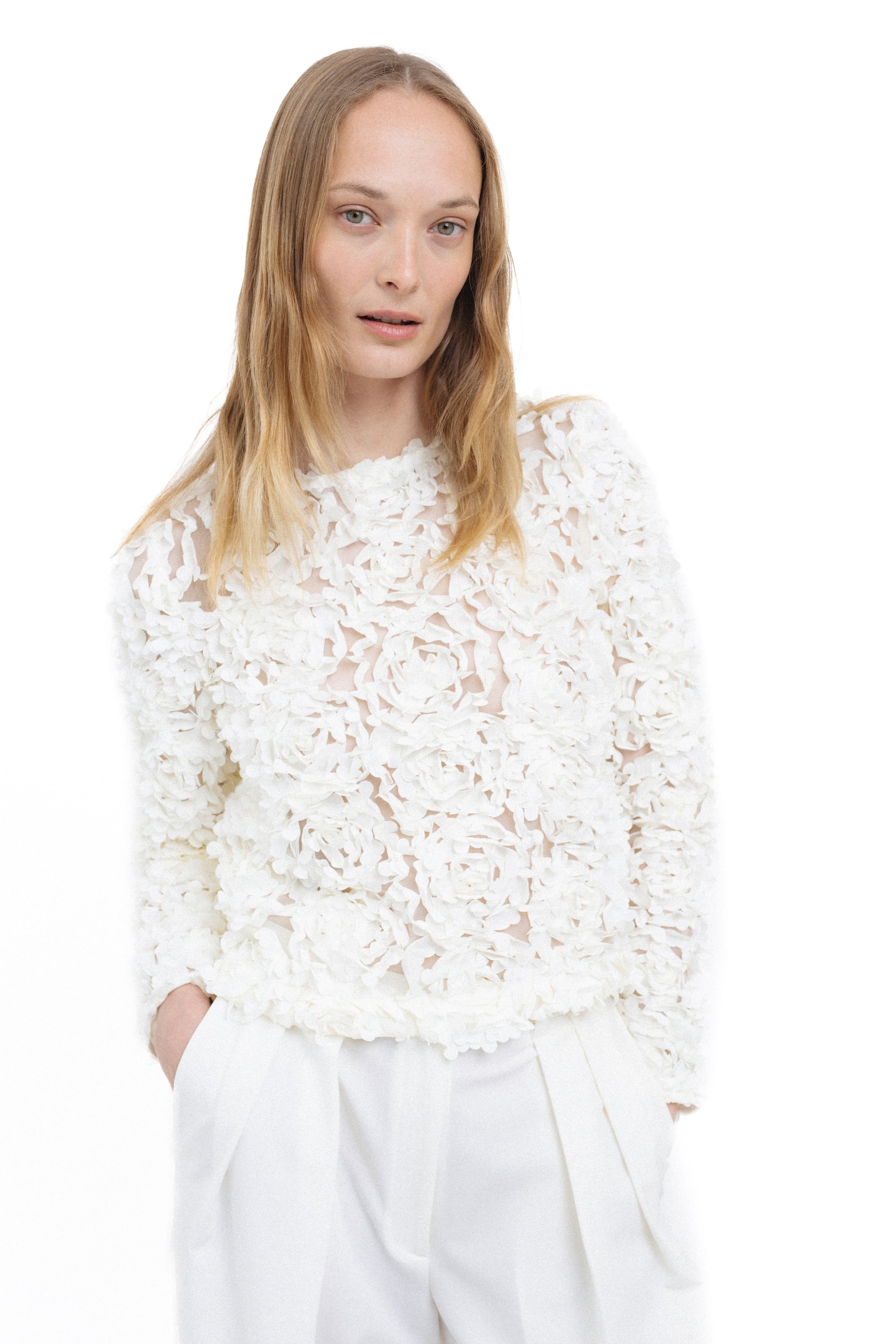 WHITE TEXTURED FLORAL BLOUSE