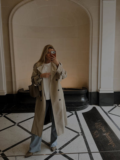 BEIGE TRENCH COAT WITH DECORATIVE BELTS