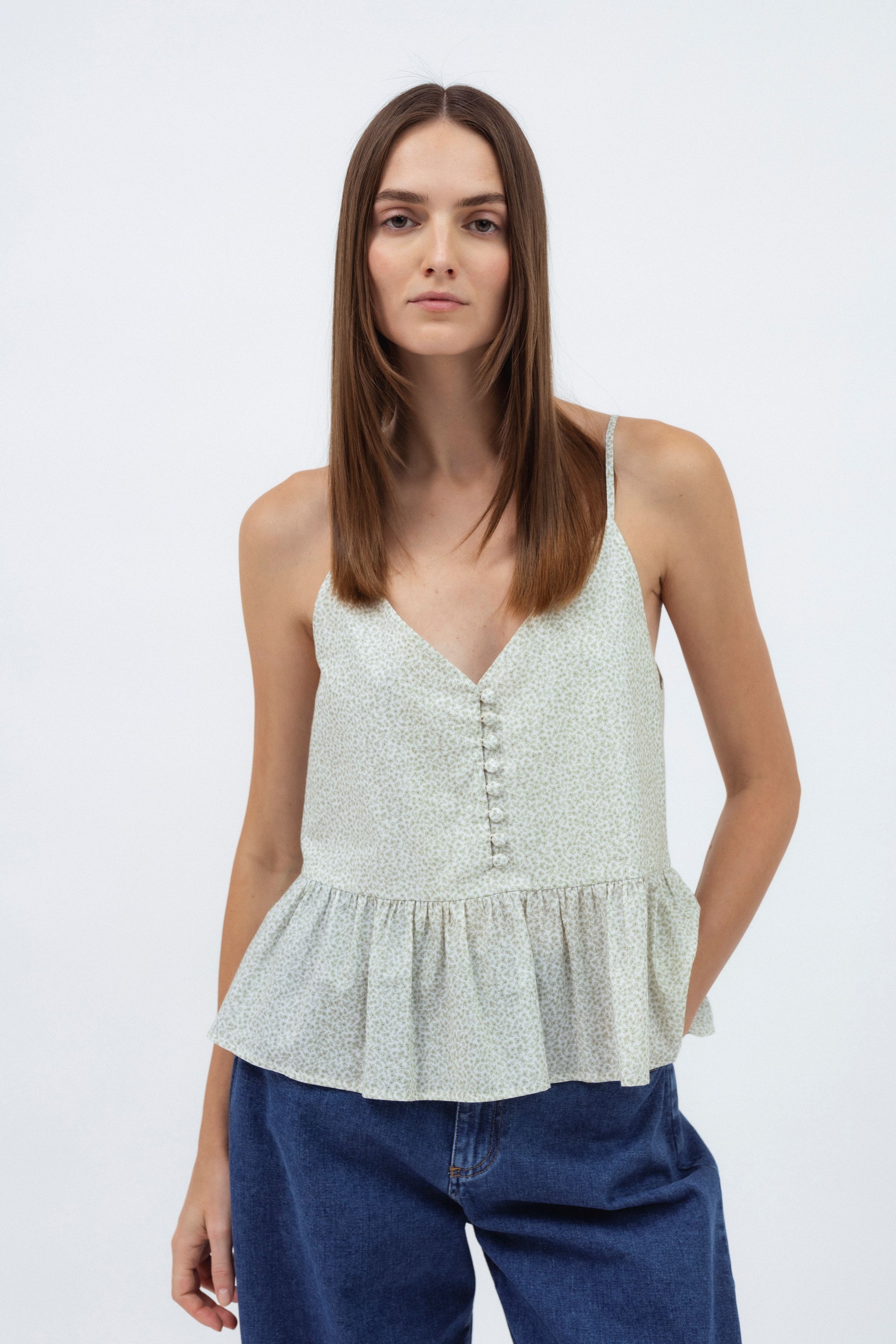 CREAM PRINTED CAMISOLE TOP