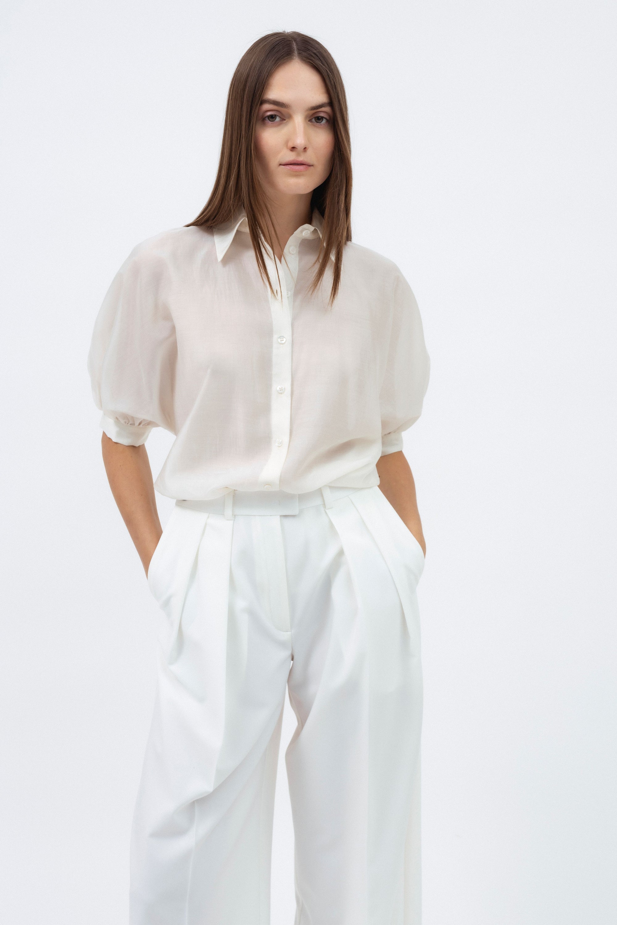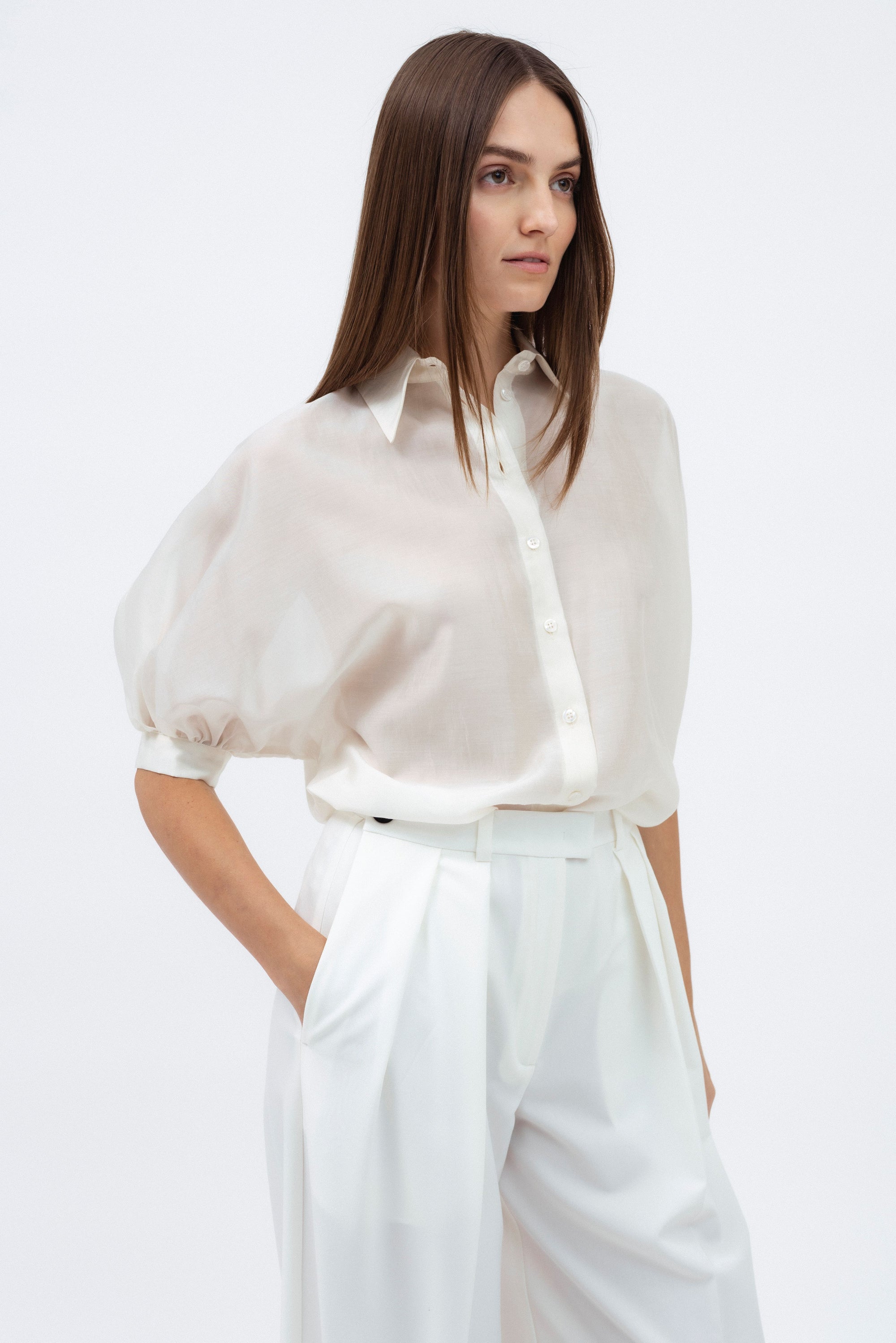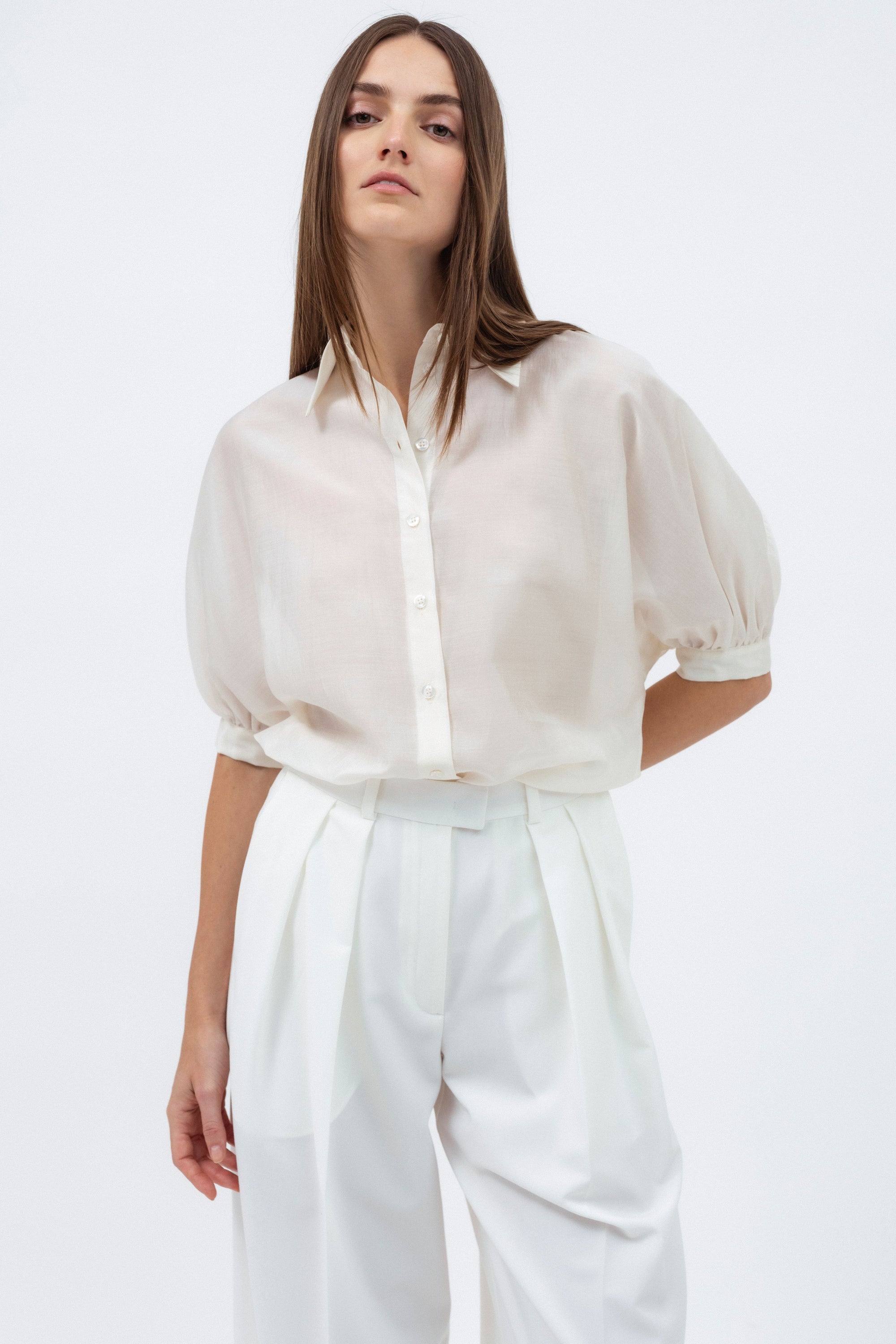 OFF-WHITE SHIRT WITH SHORT PUFF SLEEVES