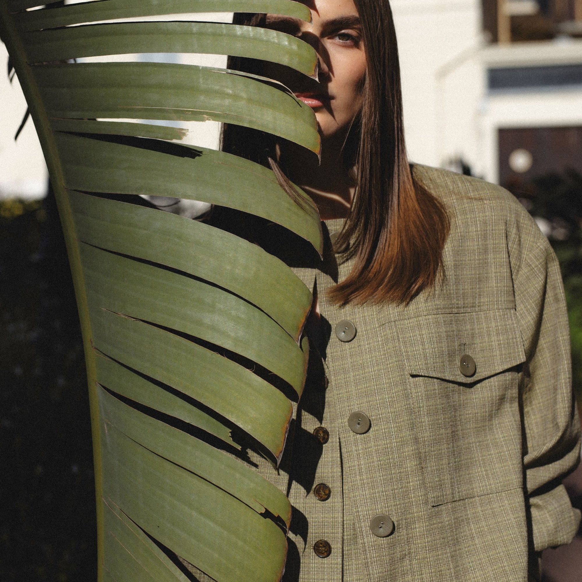 SAGE CHECKED FITTED BLAZER