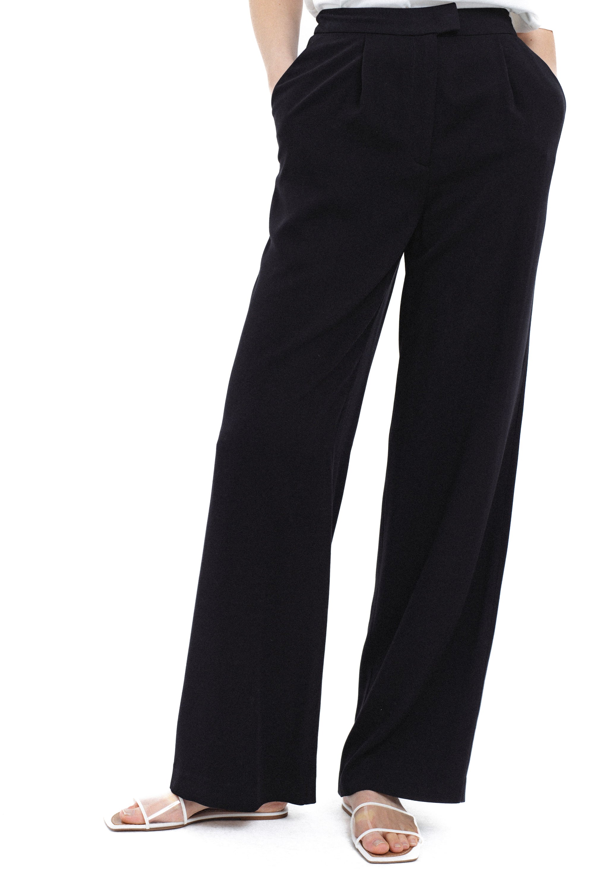 BLACK STRAIGHT-LEG TROUSERS