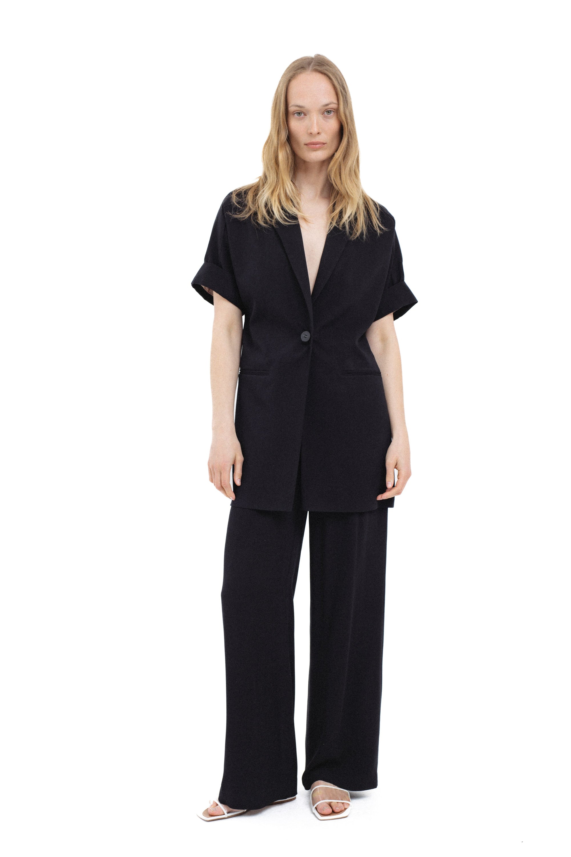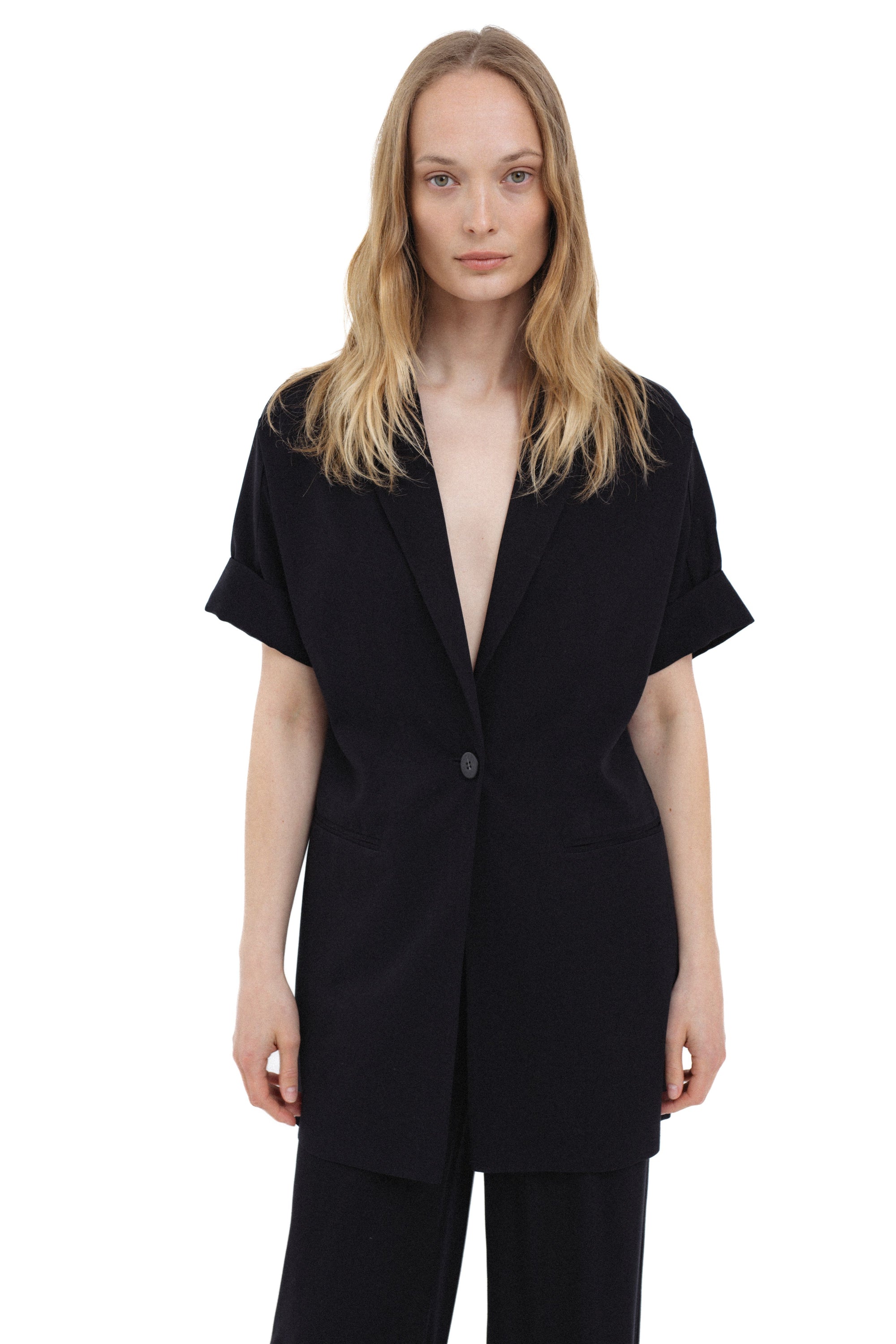 BLACK SHORT-SLEEVE BLAZER