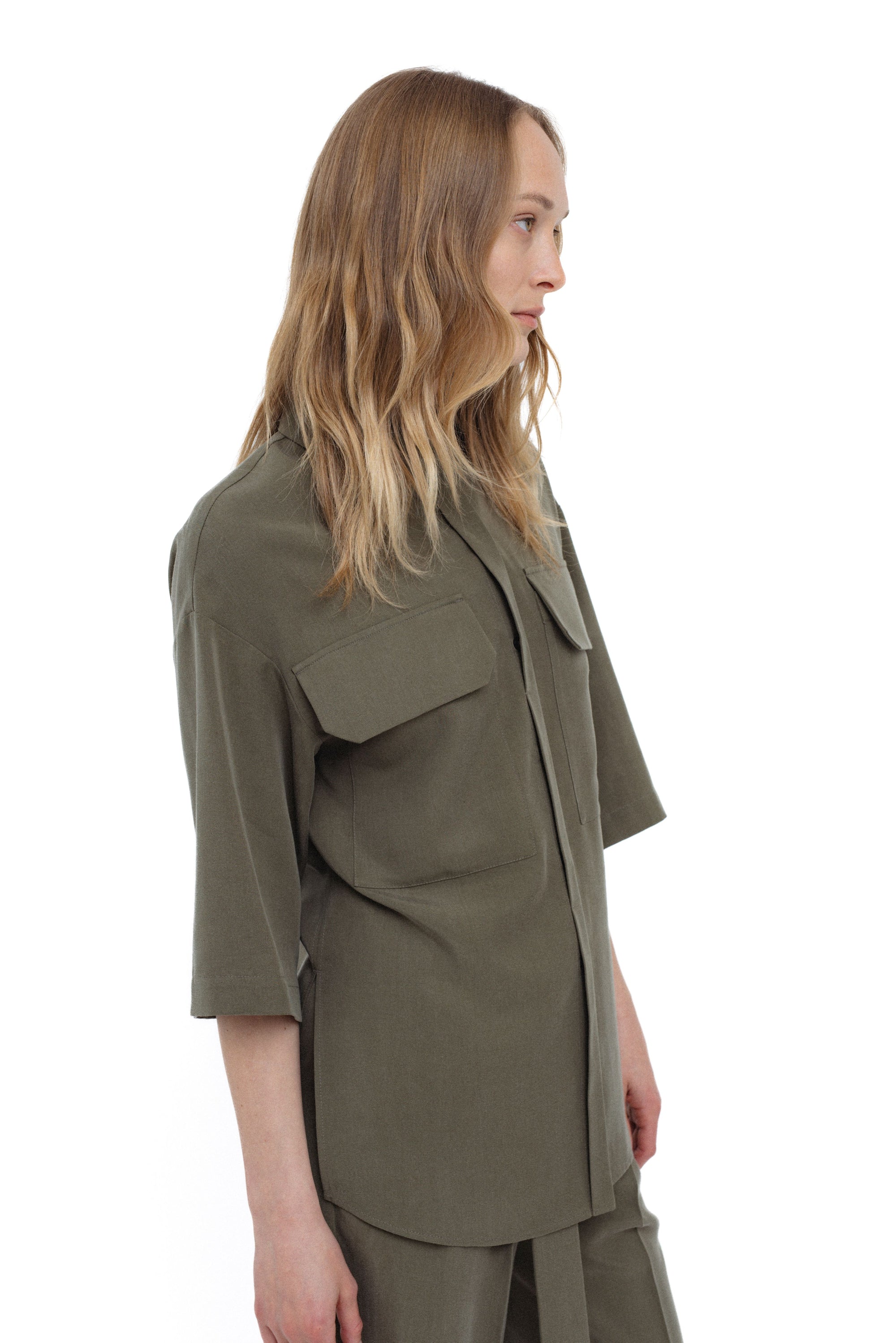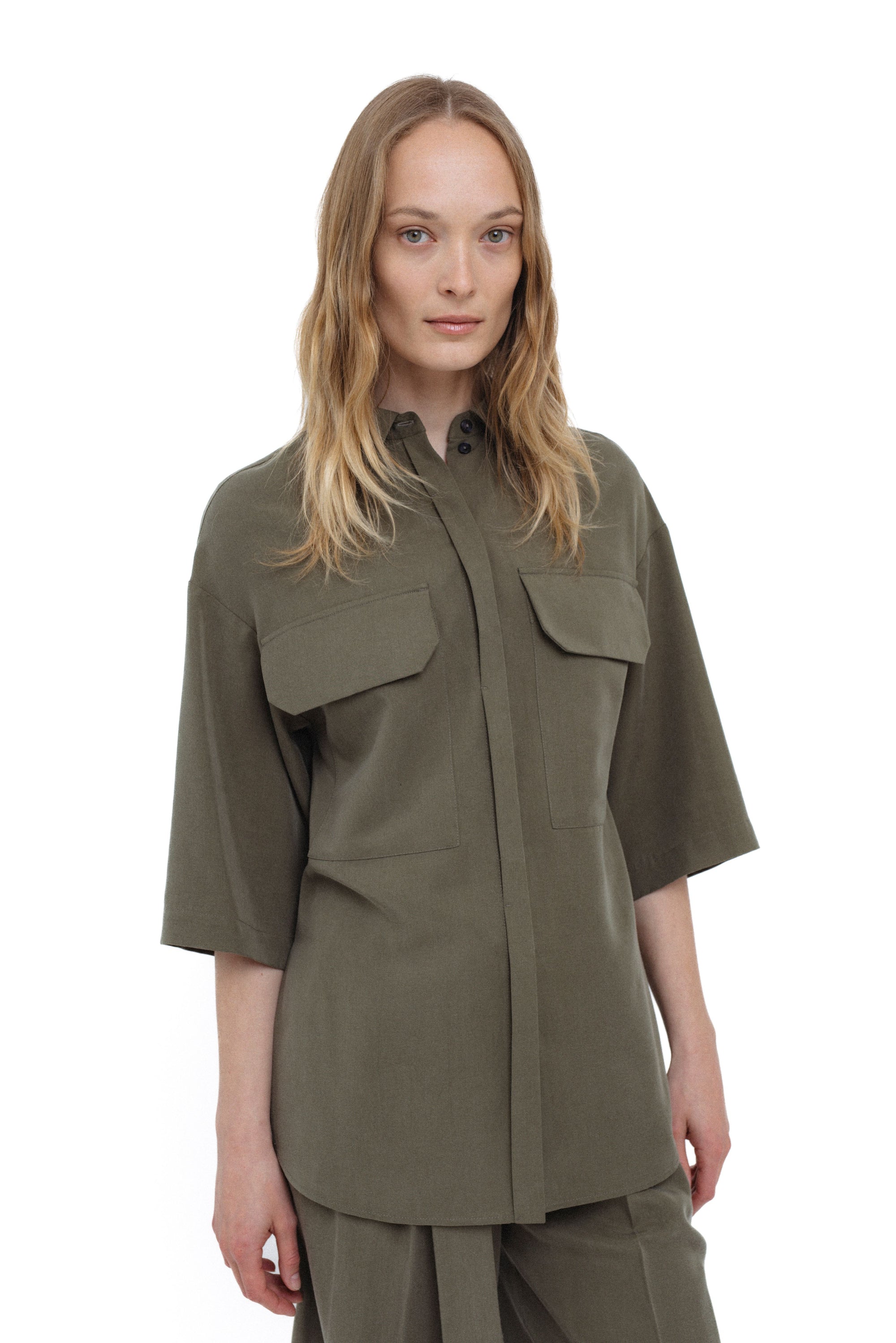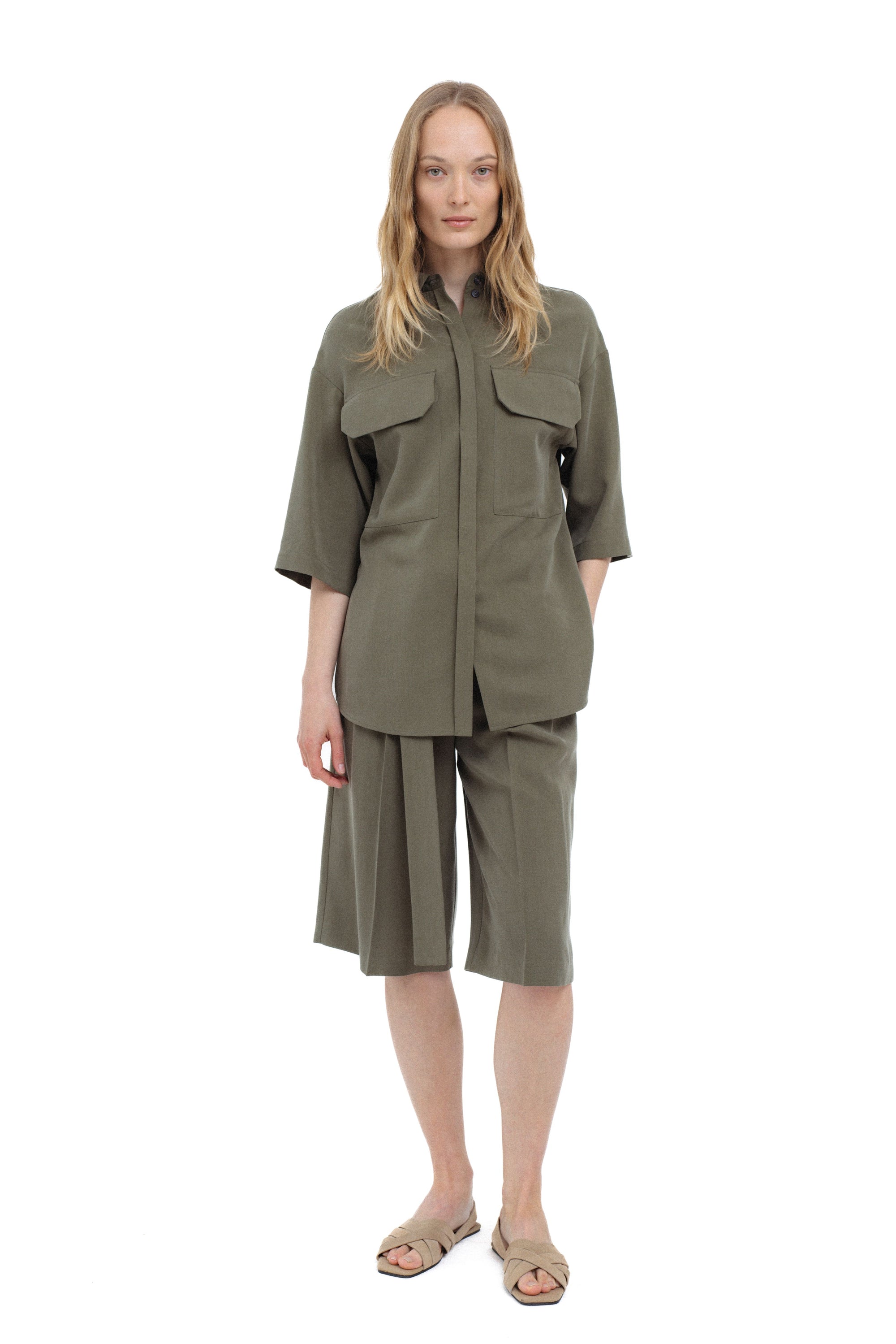 KHAKI OVERSIZED SHIRT WITH PATCH POCKETS
