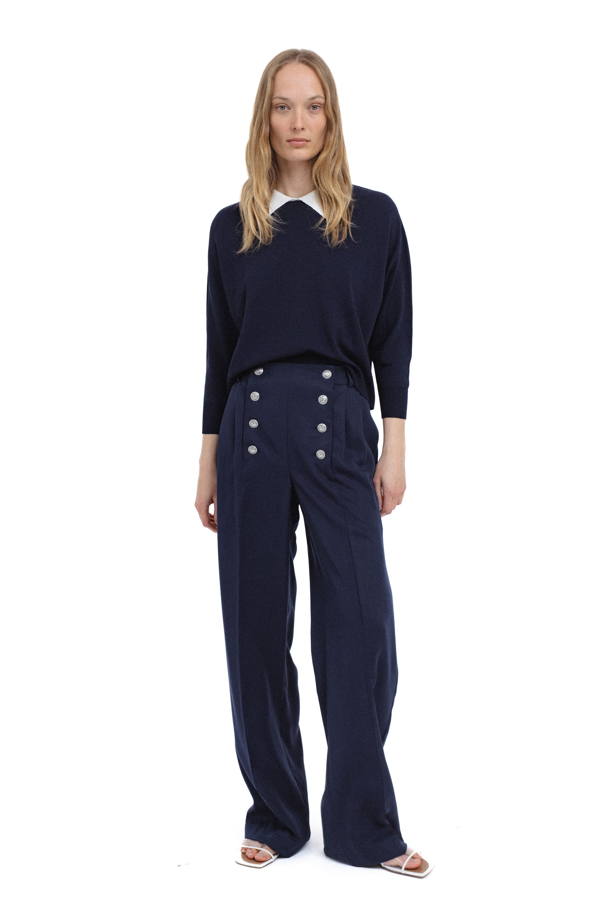 NAVY WIDE-LEG TROUSERS WITH BUTTON DETAIL