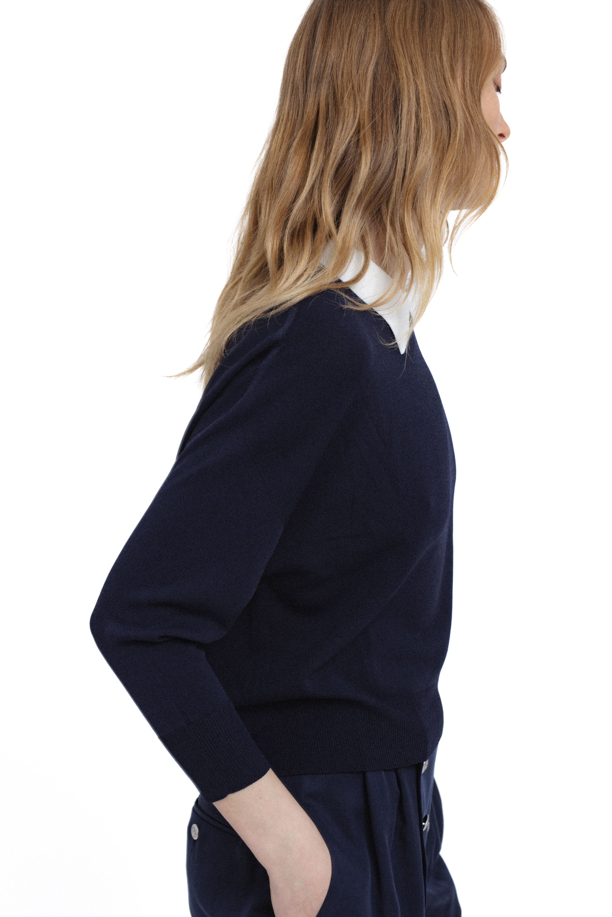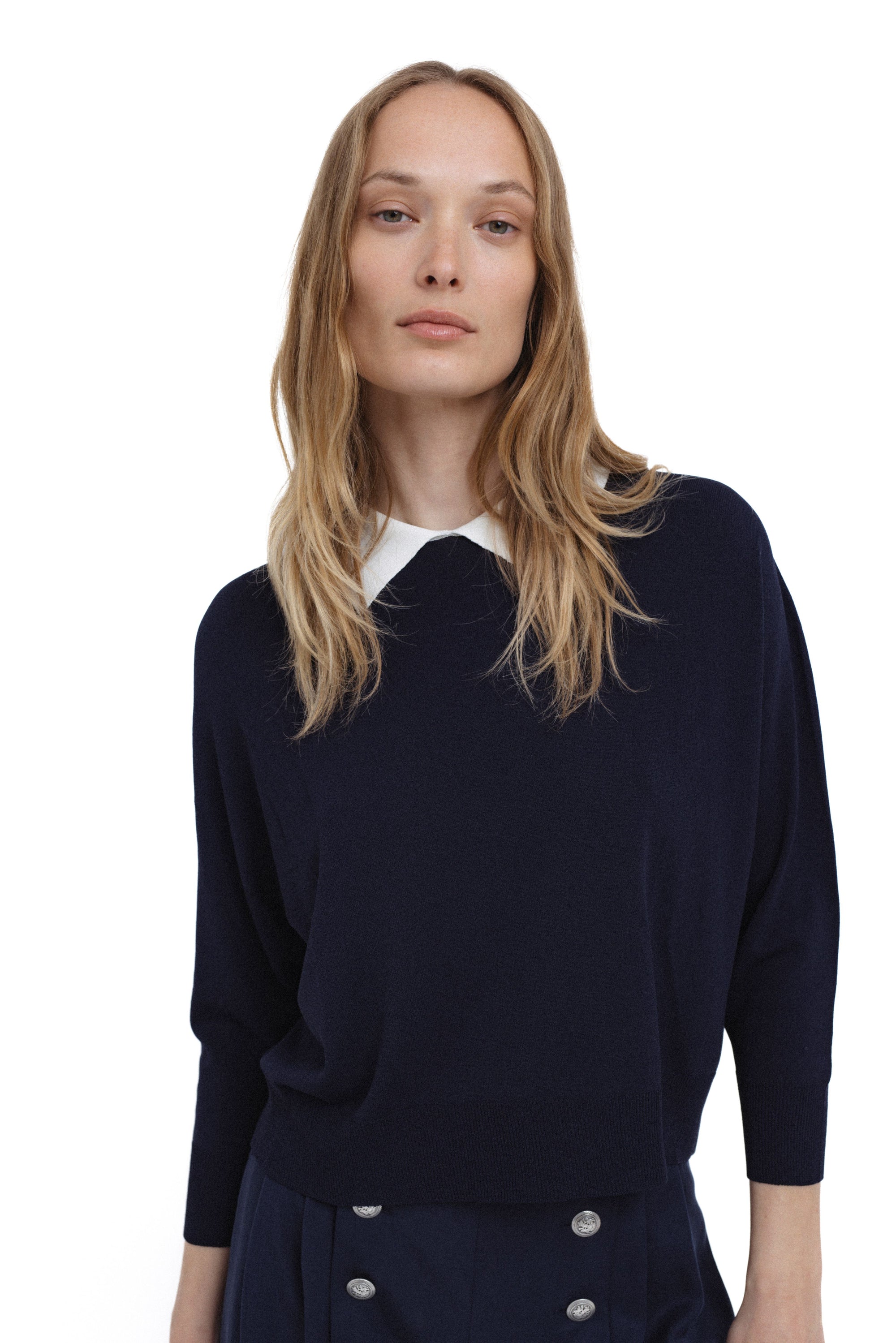 NAVY RIBBED SHORT-SLEEVE KNIT TOP