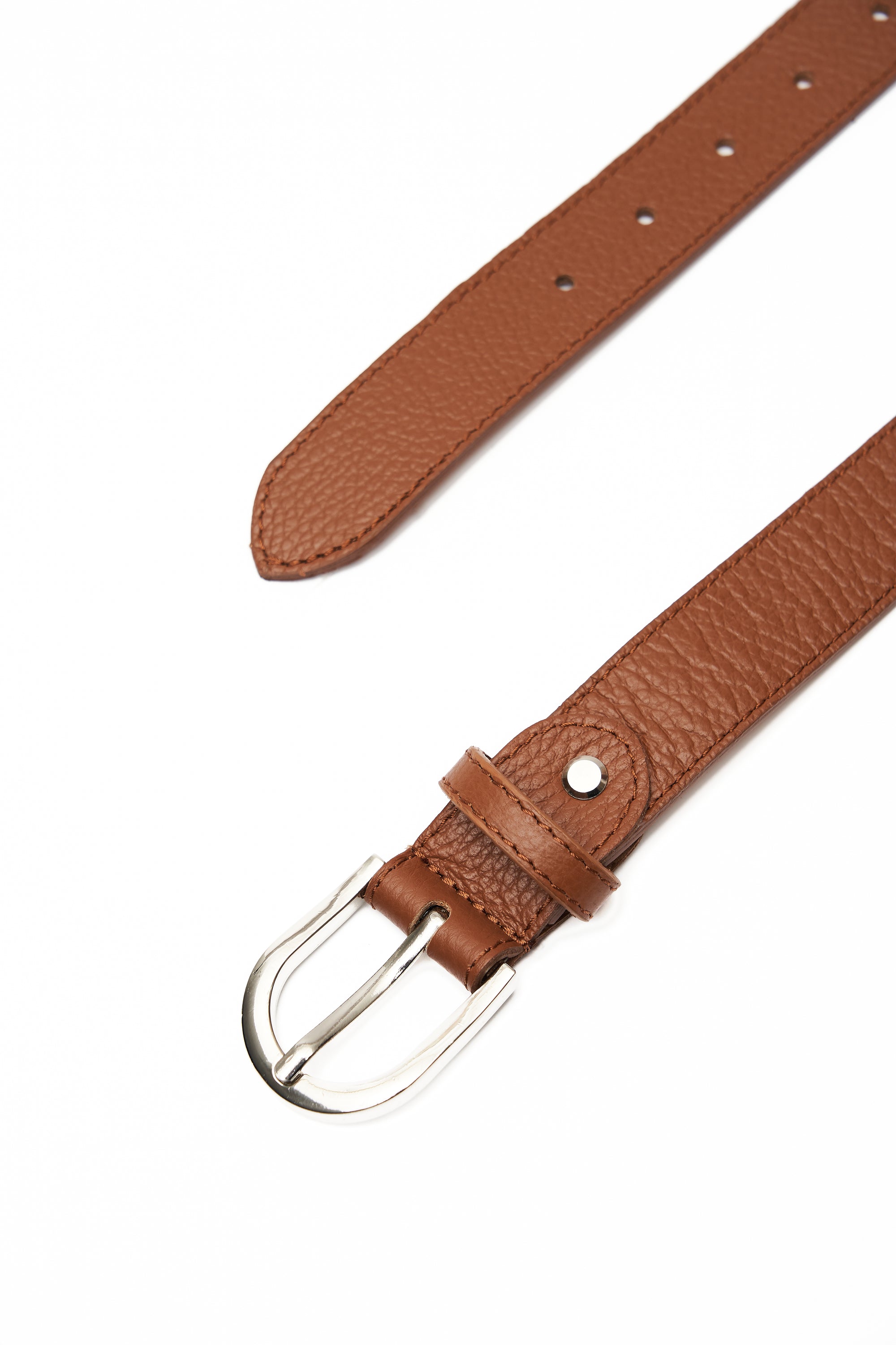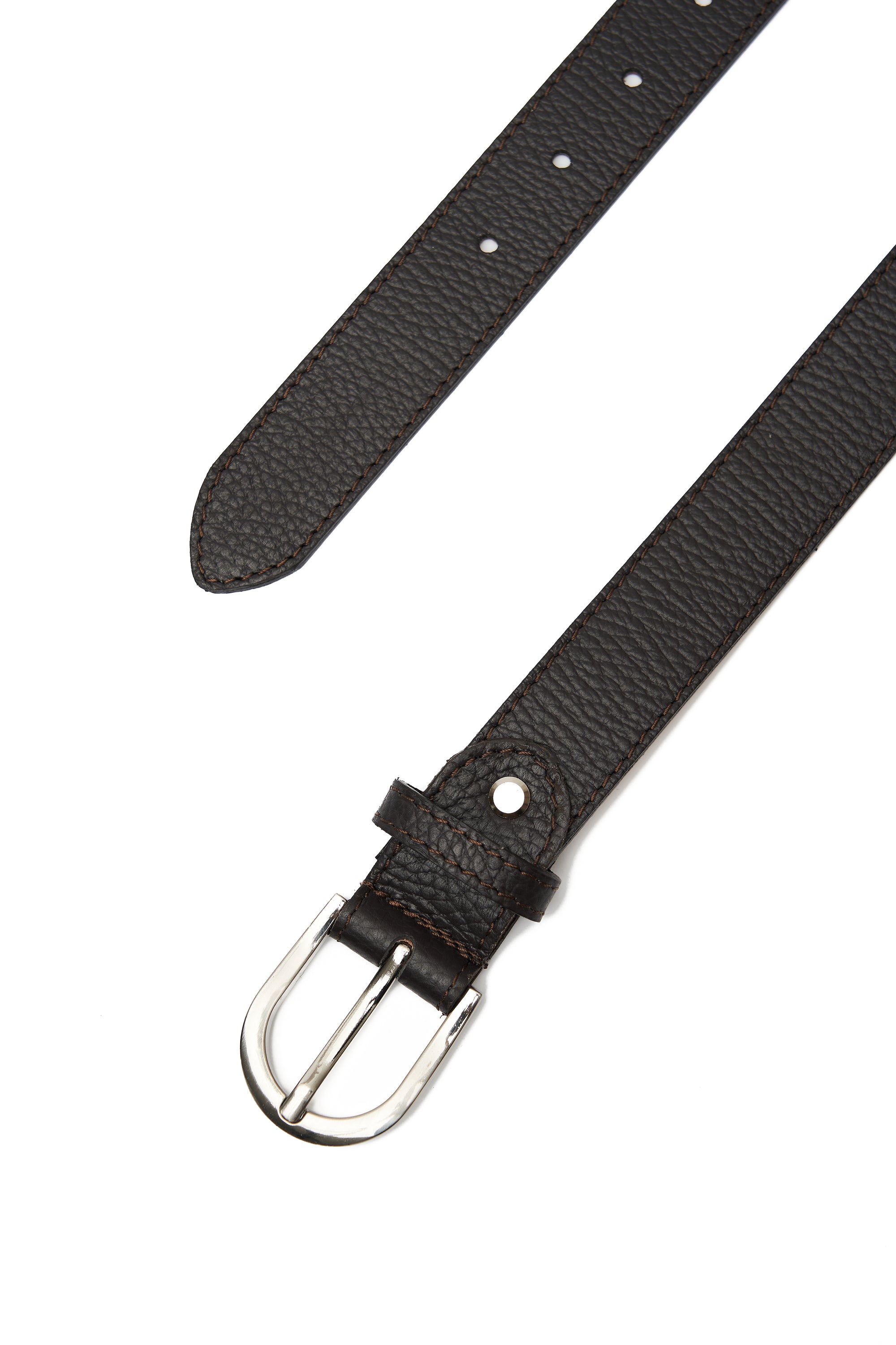 LEATHER BROWN BELT WITH SILVER DETAILS