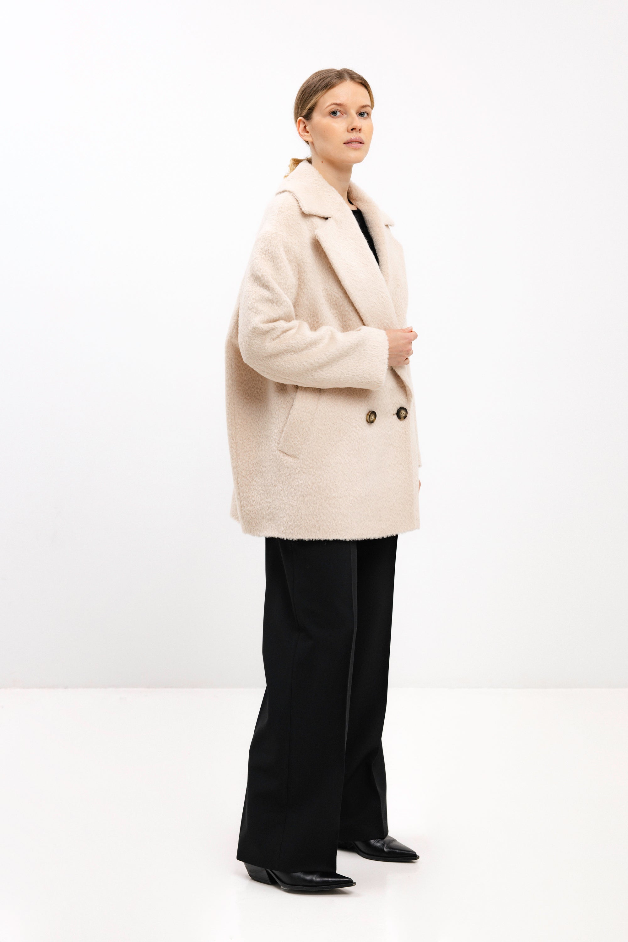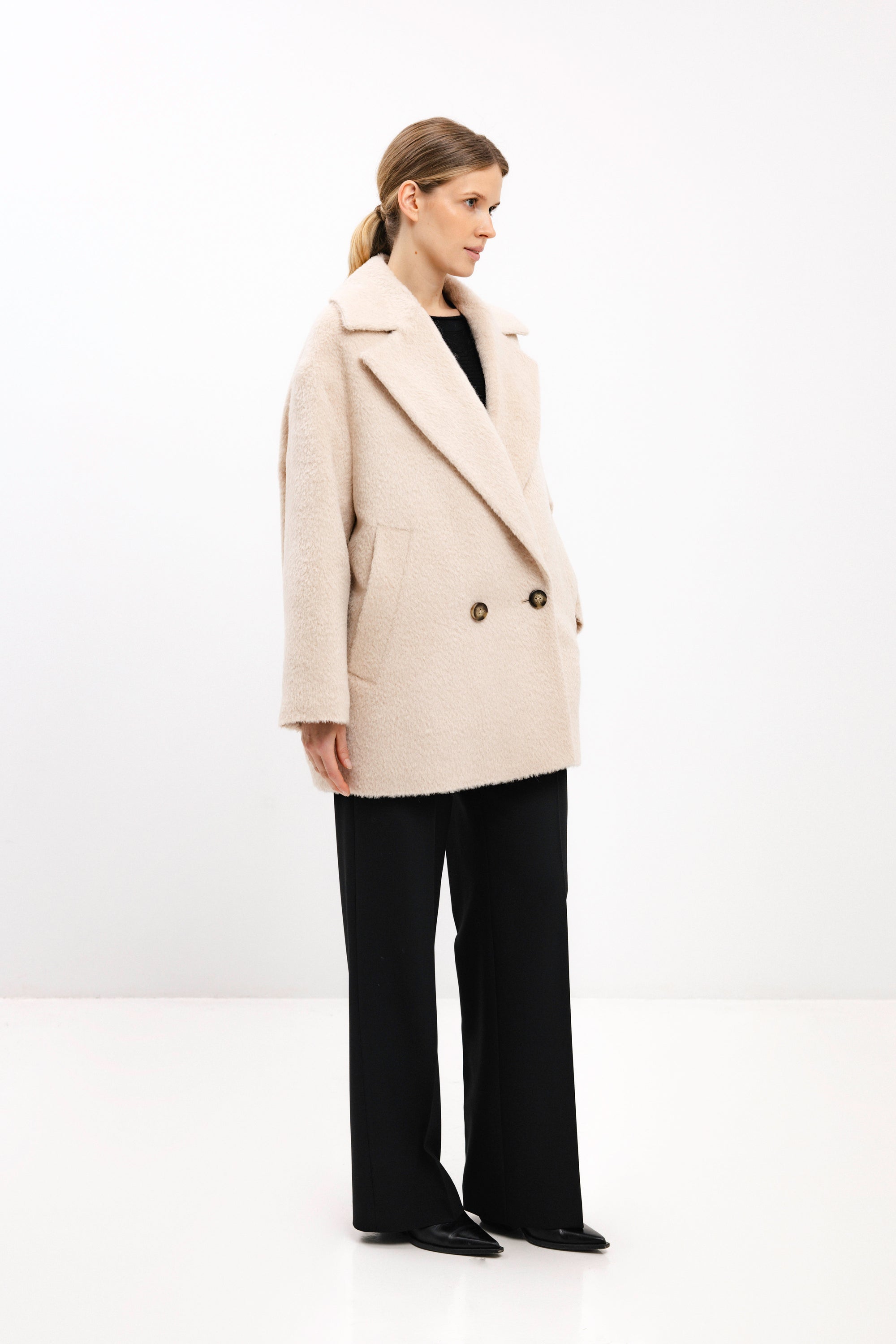 BEIGE DOUBLE-FACED WOOL SHORT COAT