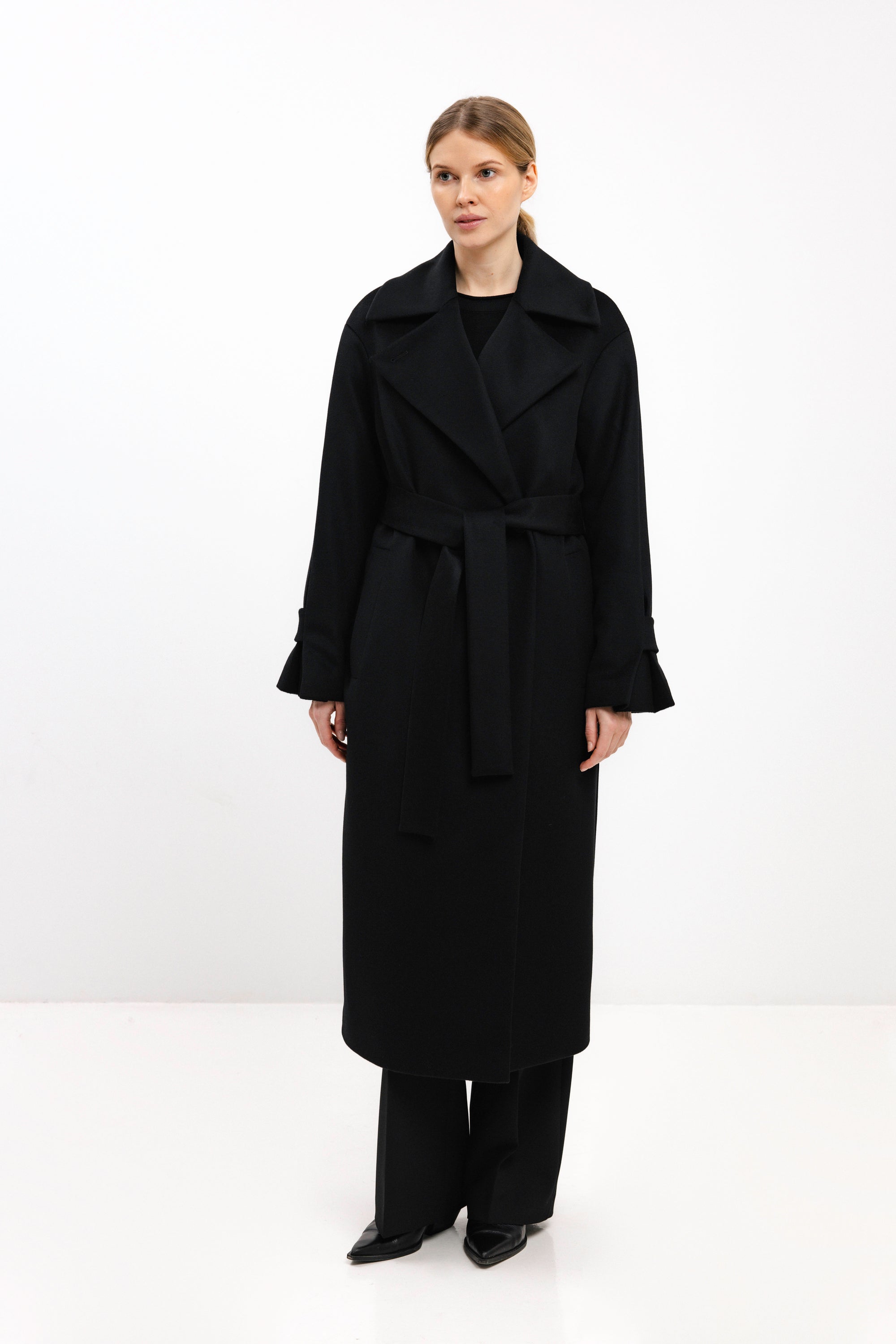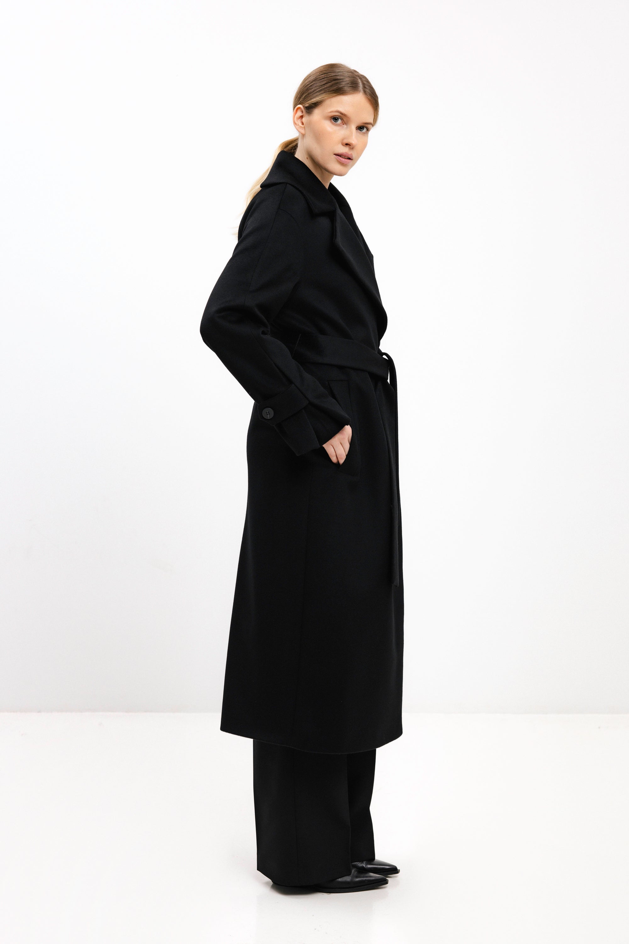 BLACK DOUBLE-FACE WOOL COAT WITH CASHMERE