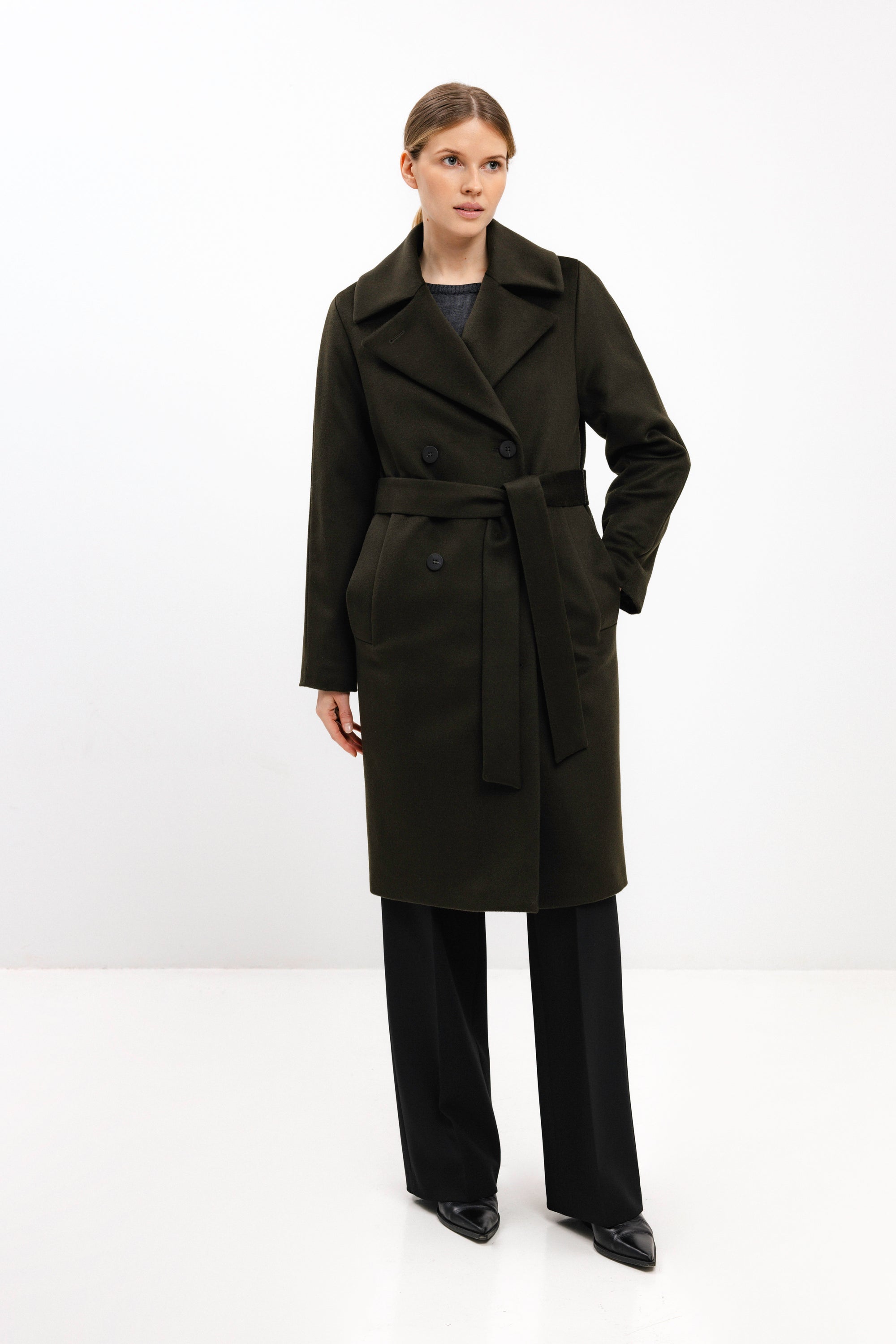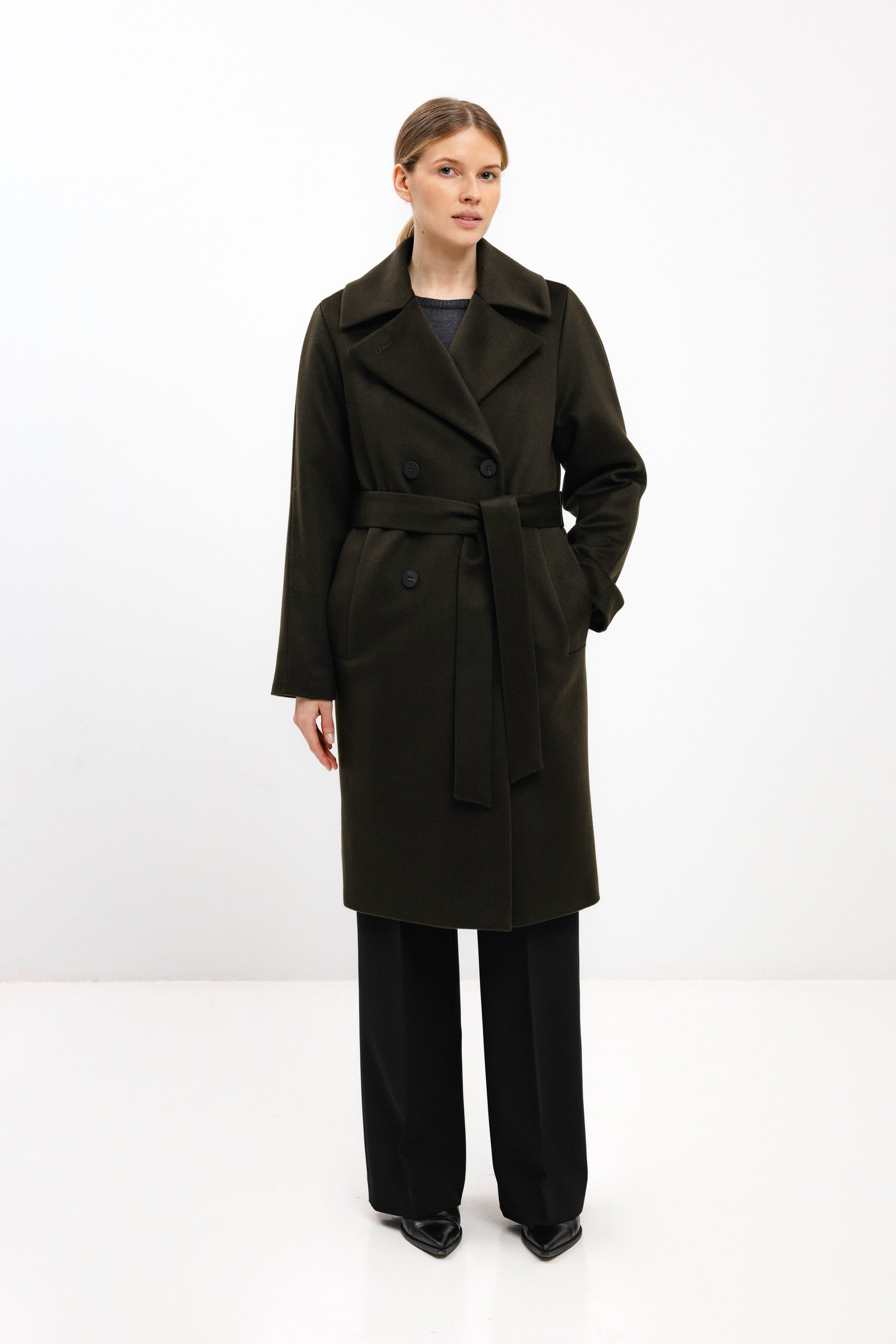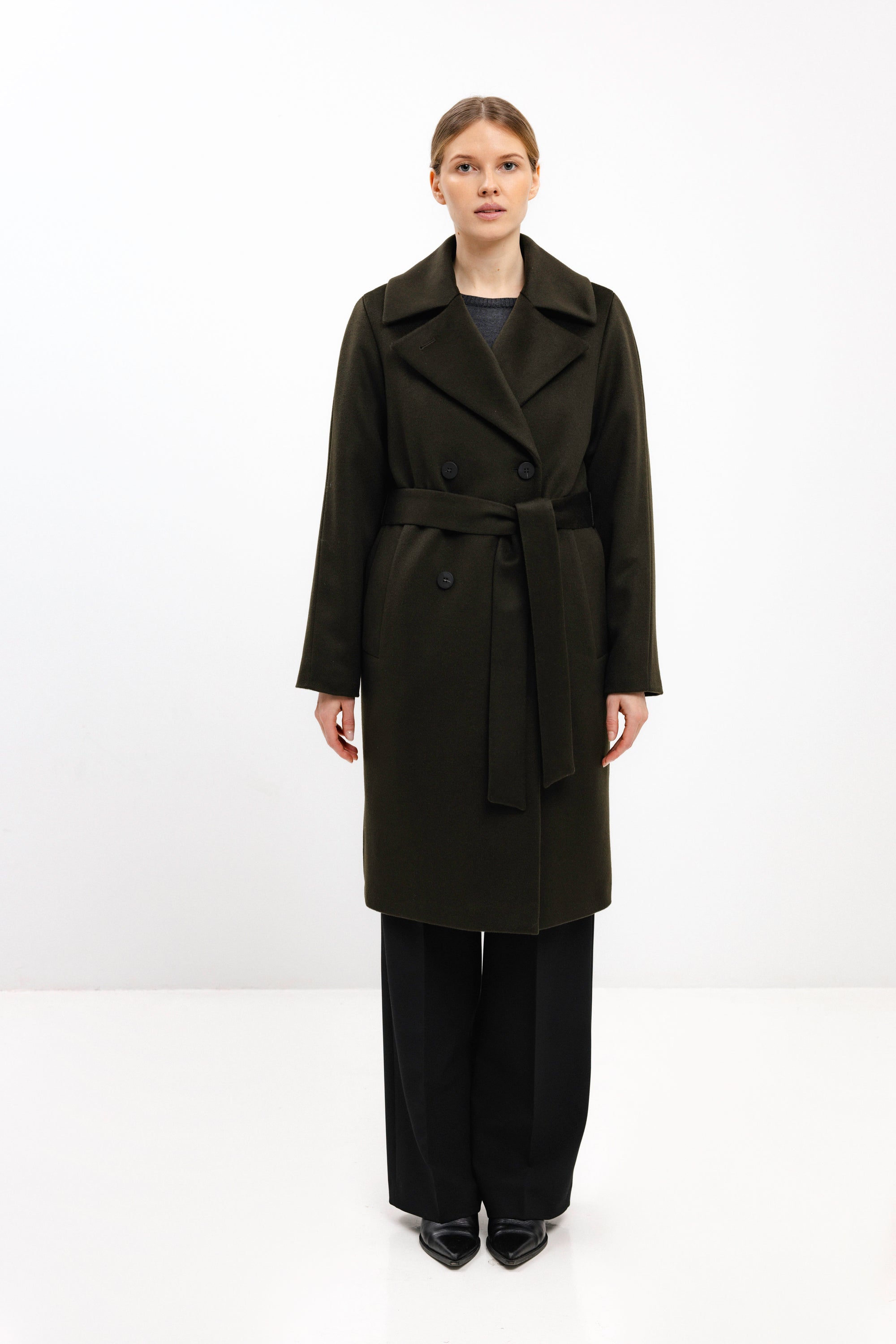 DOUBLE-BREASTED SHORT WOOL COAT IN OLIVE
