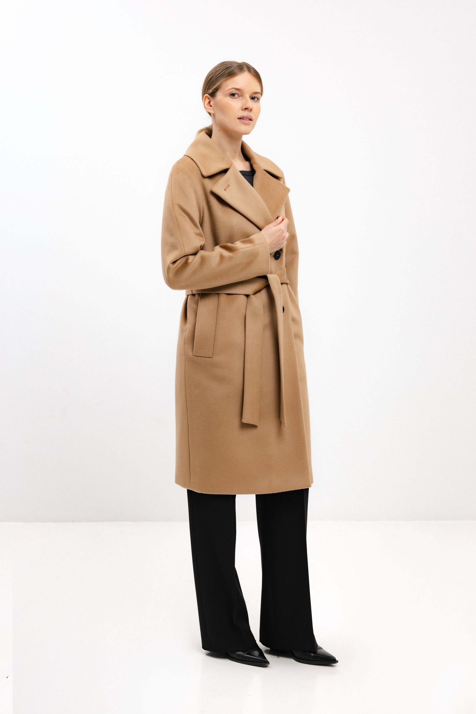 DOUBLE-BREASTED SHORT WOOL COAT IN CAMEL