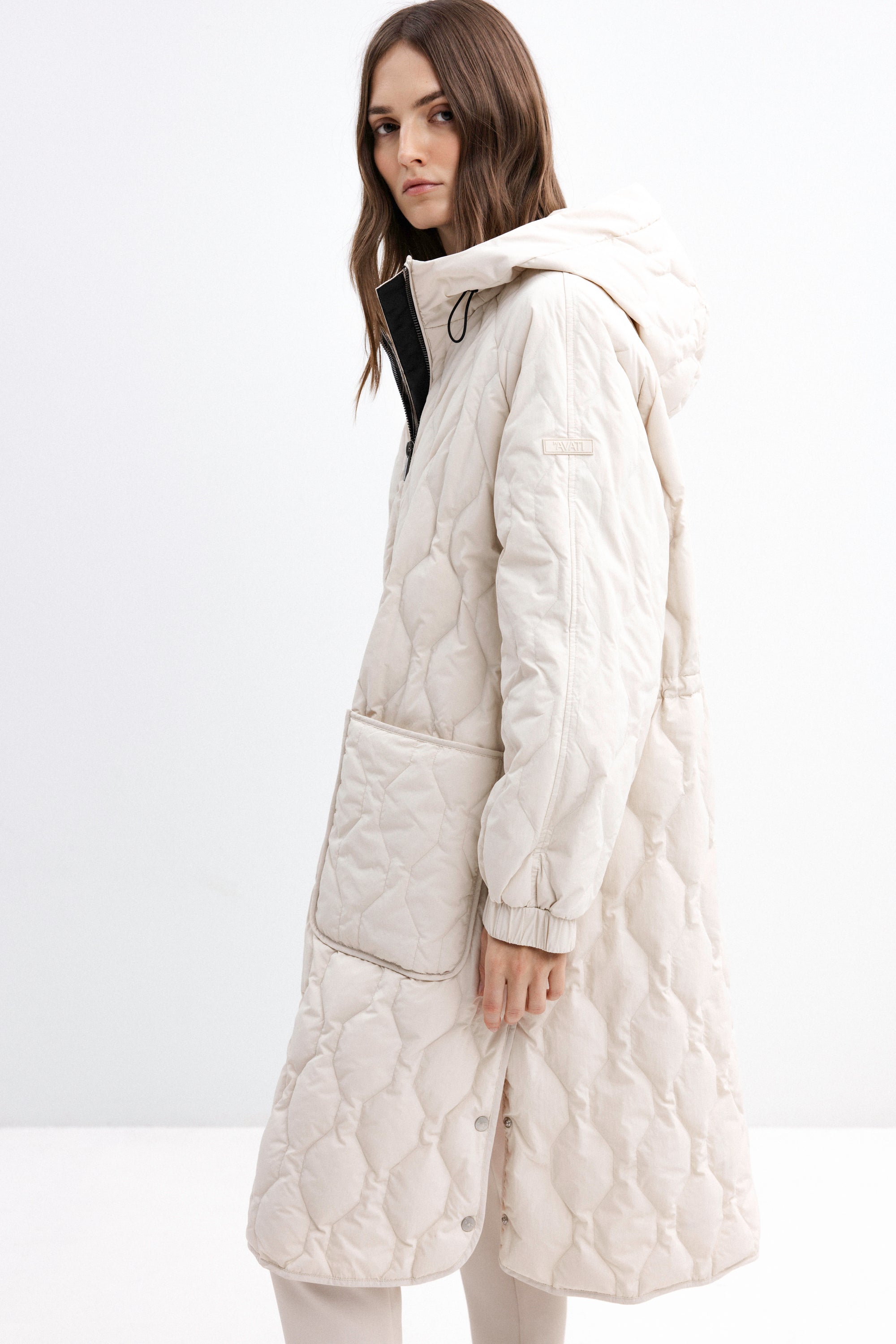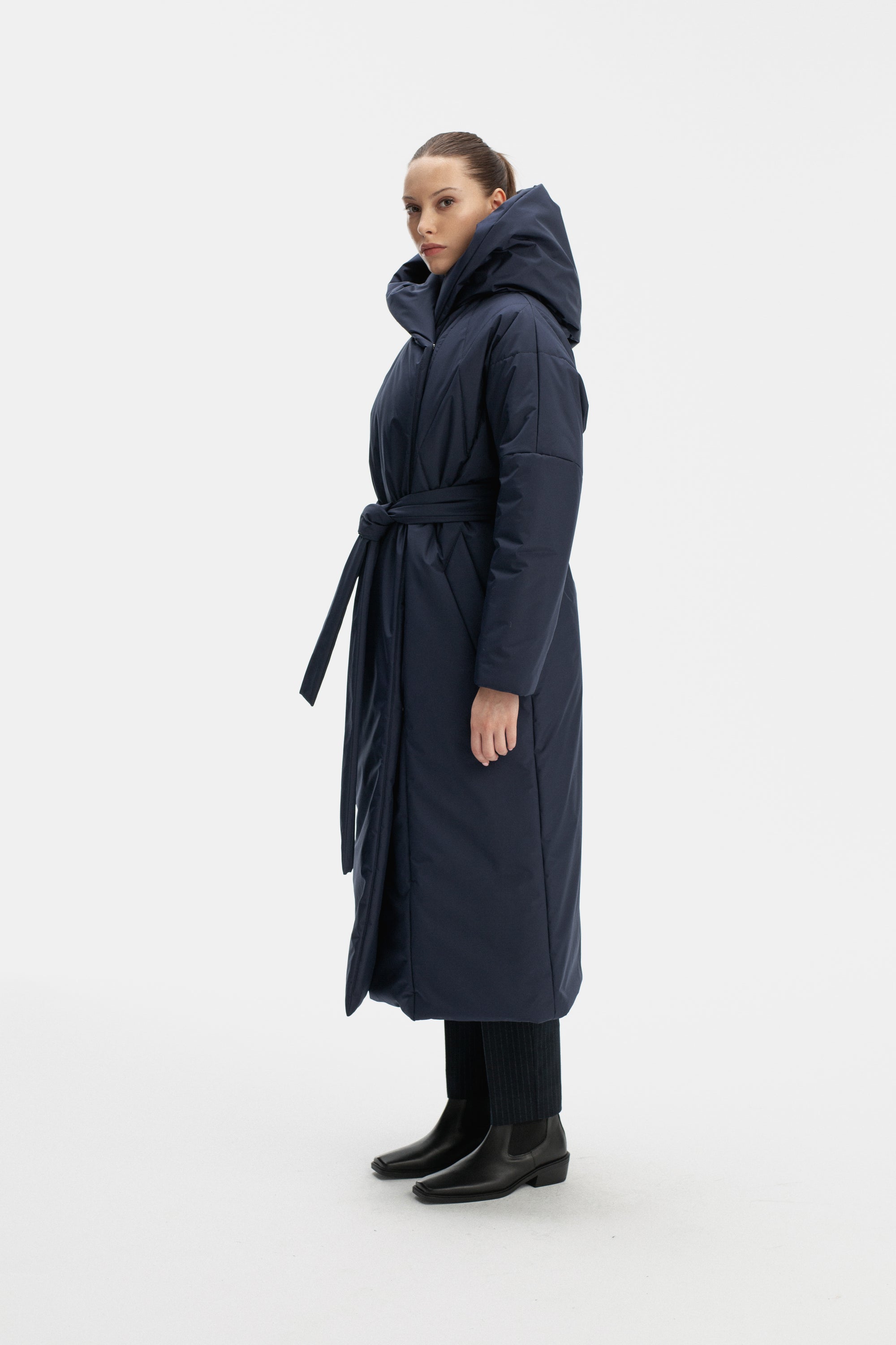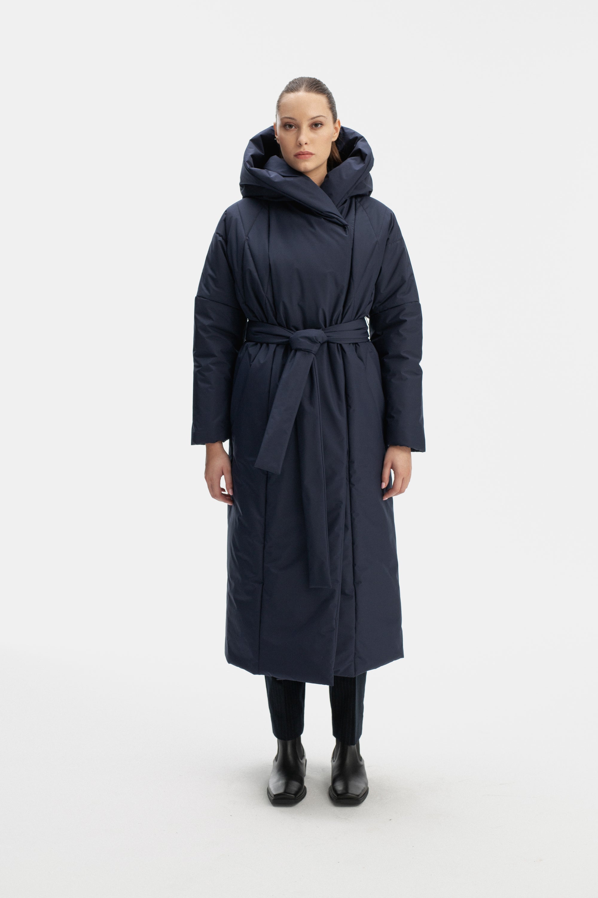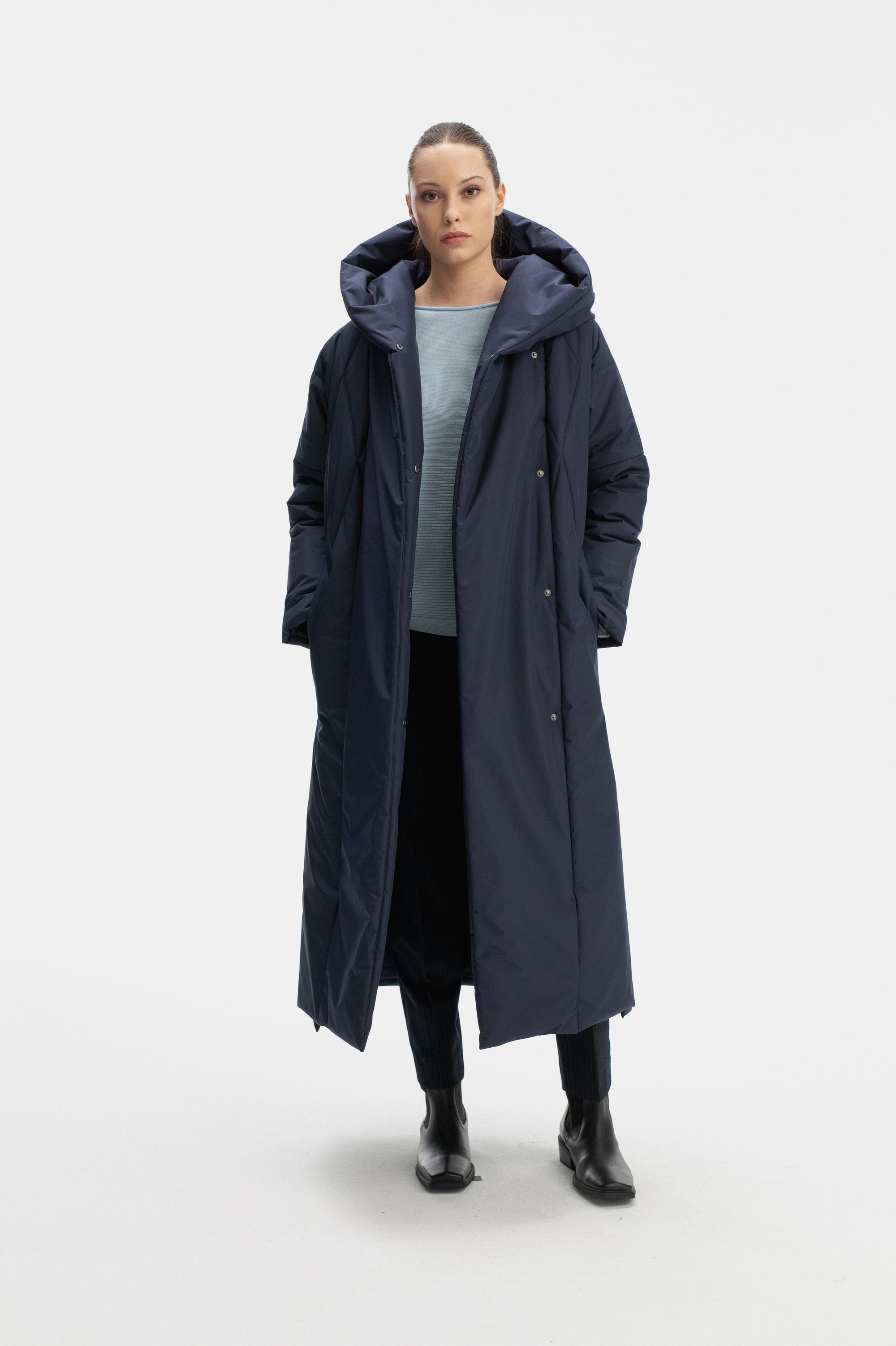 LONG PADDED JACKET WITH HOOD IN BLUEBERRY