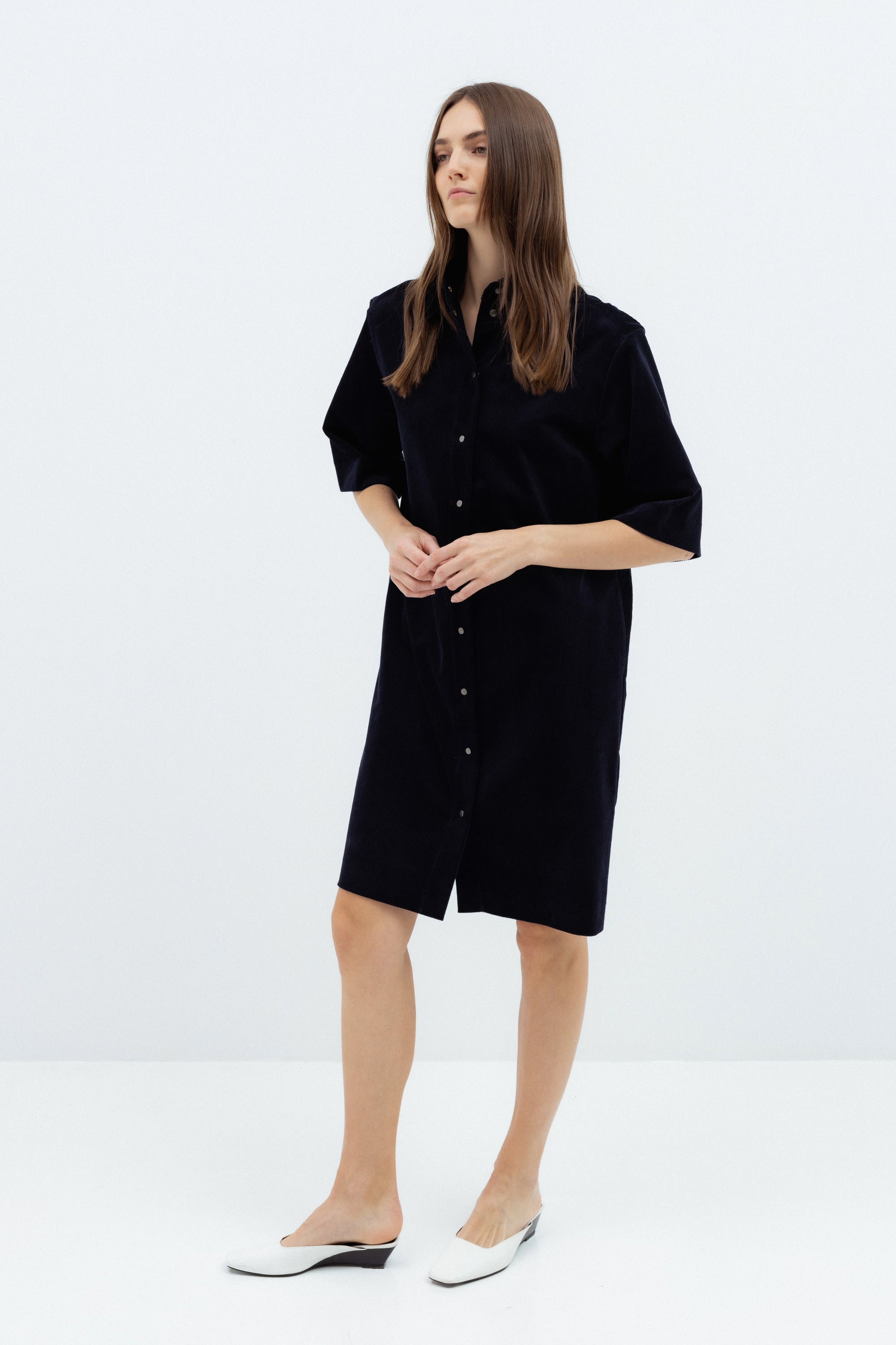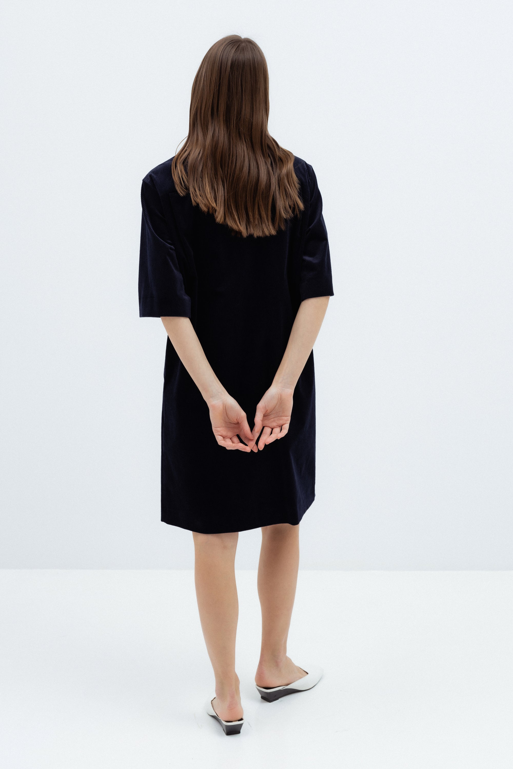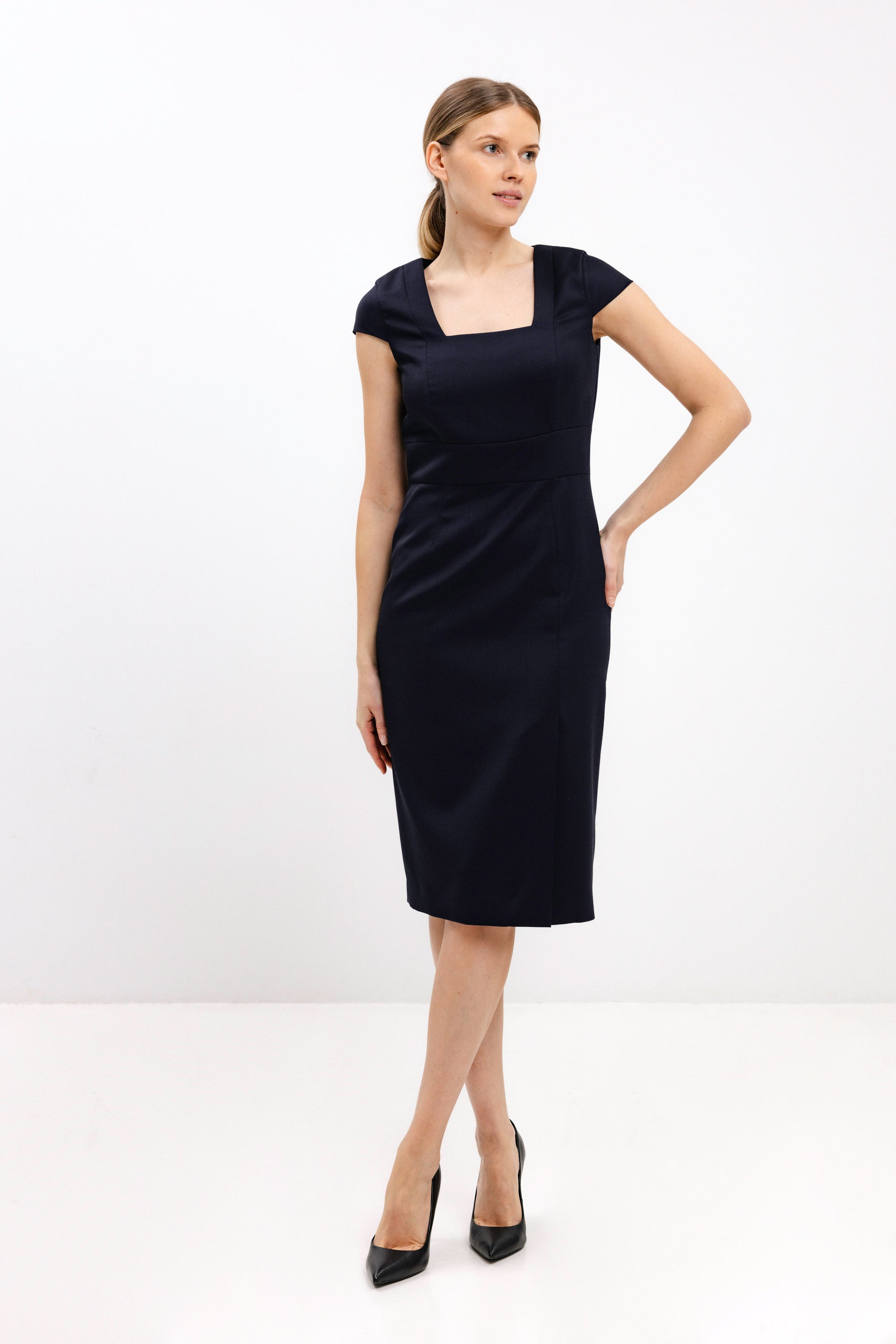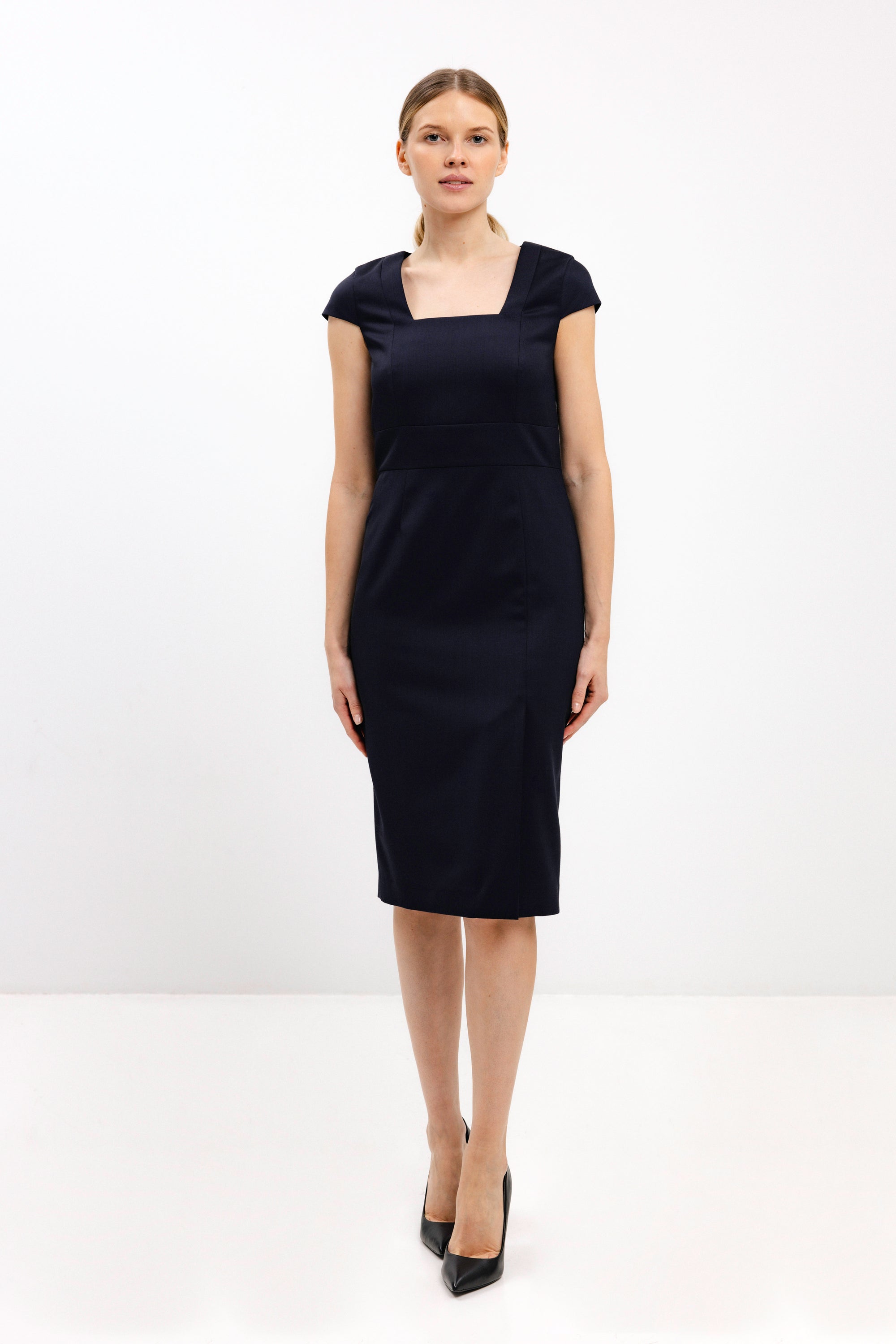 NAVY FITTED DRESS WITH SQUARE NECKLINE