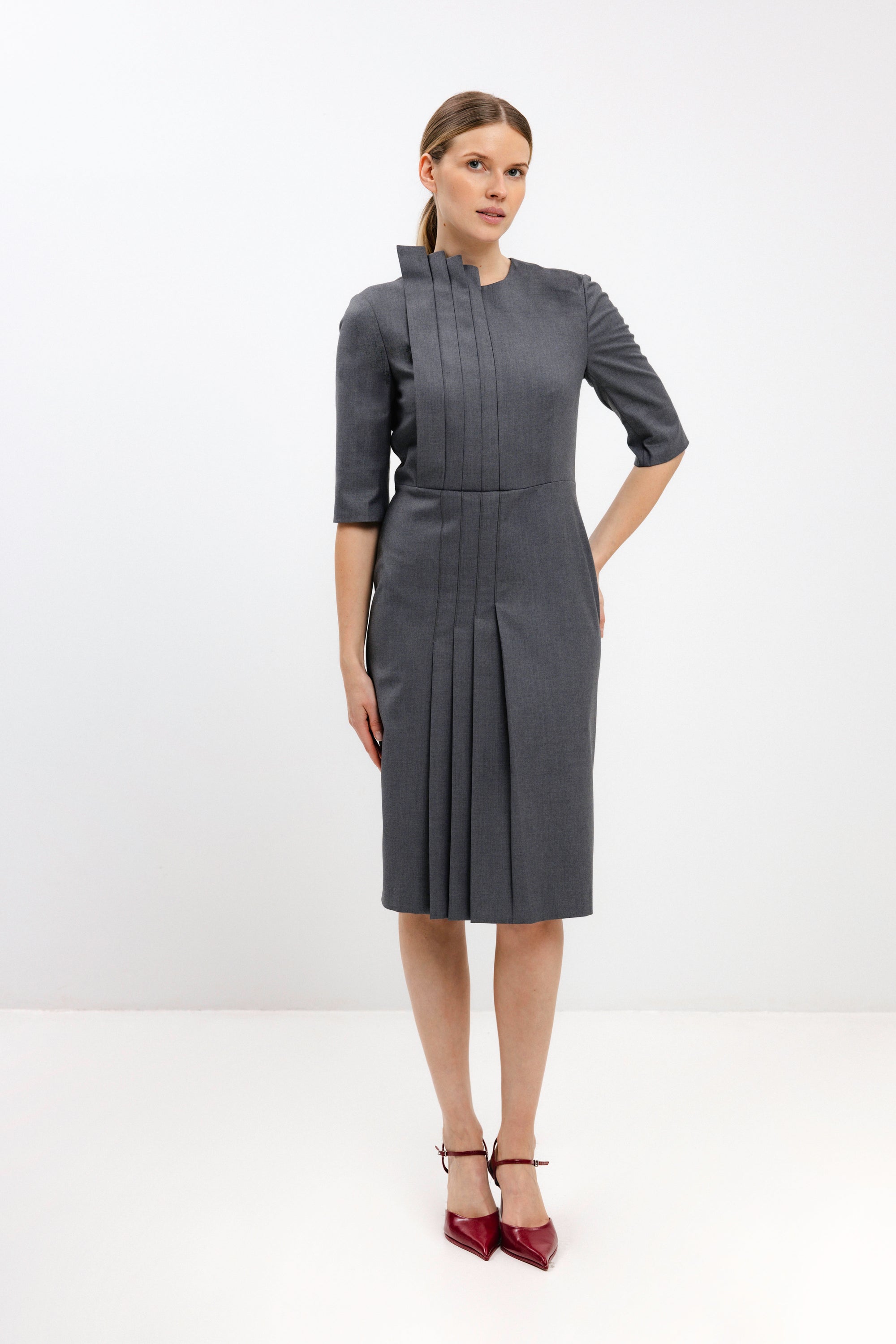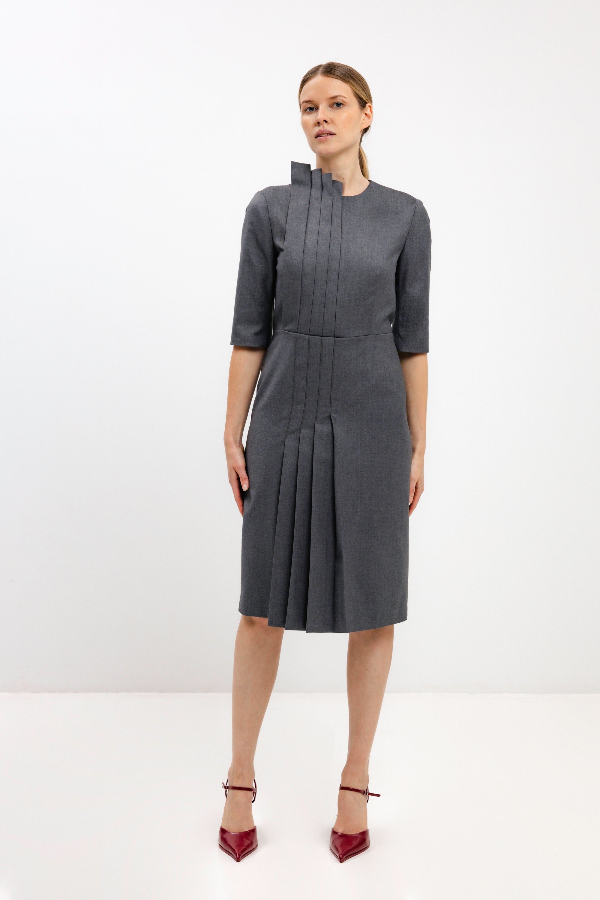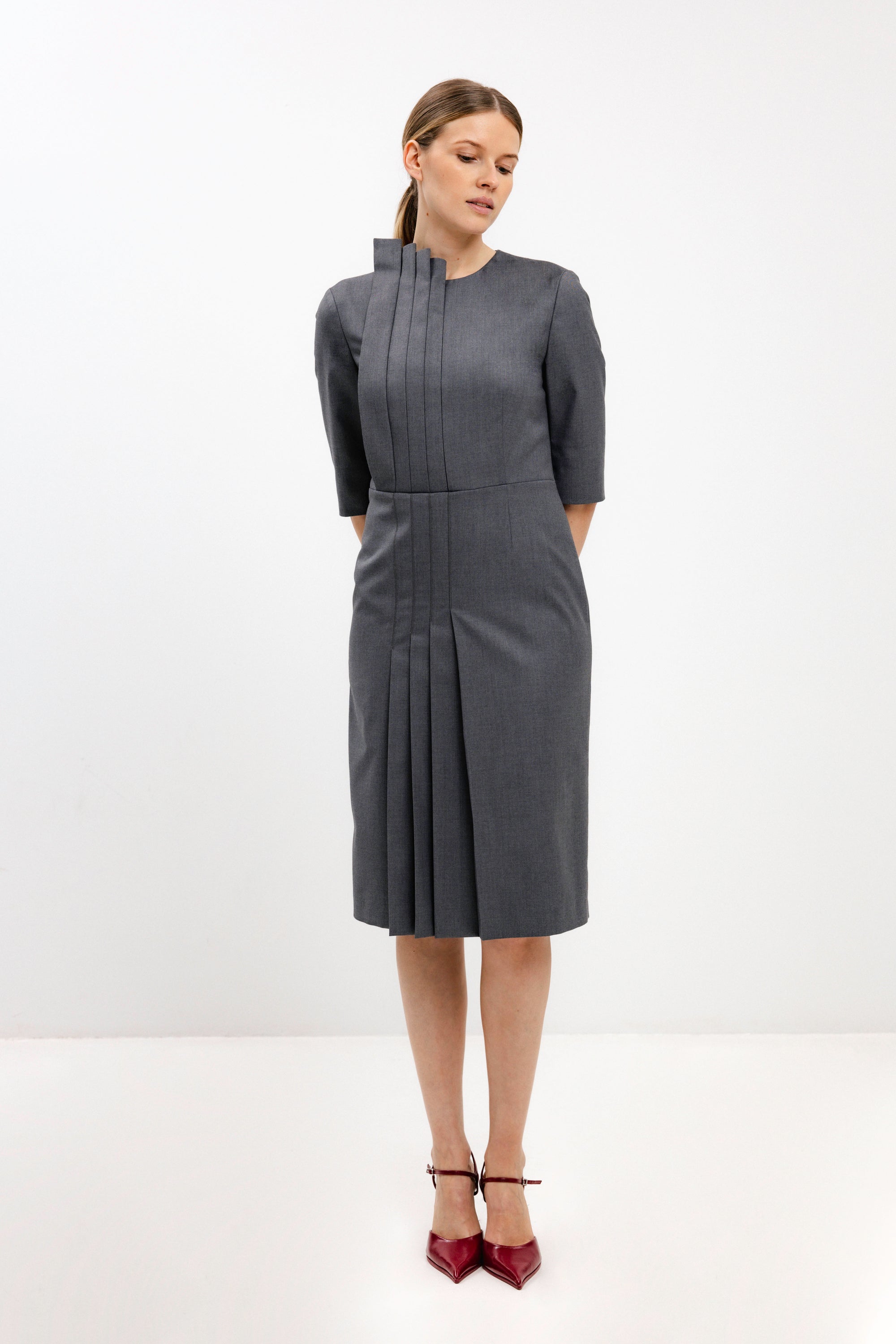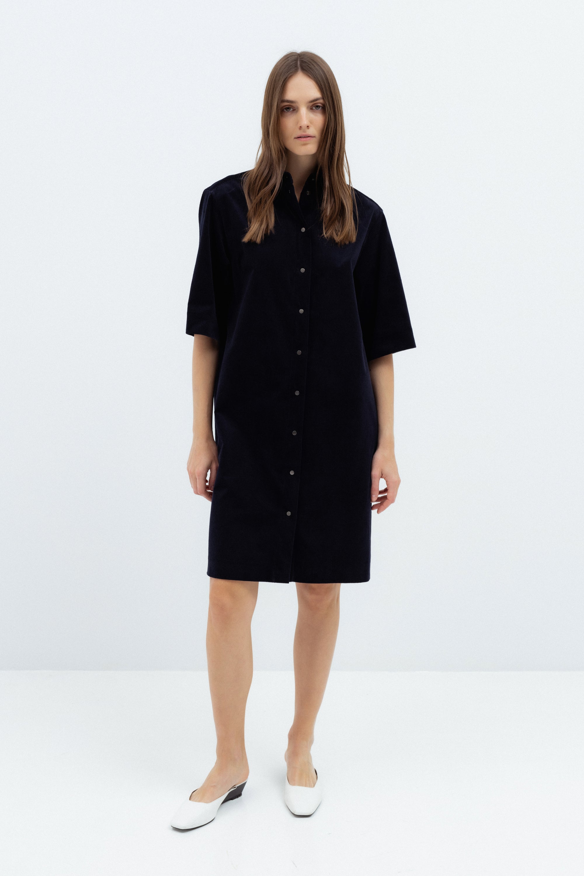 NAVY FITTED DRESS WITH SQUARE NECKLINE