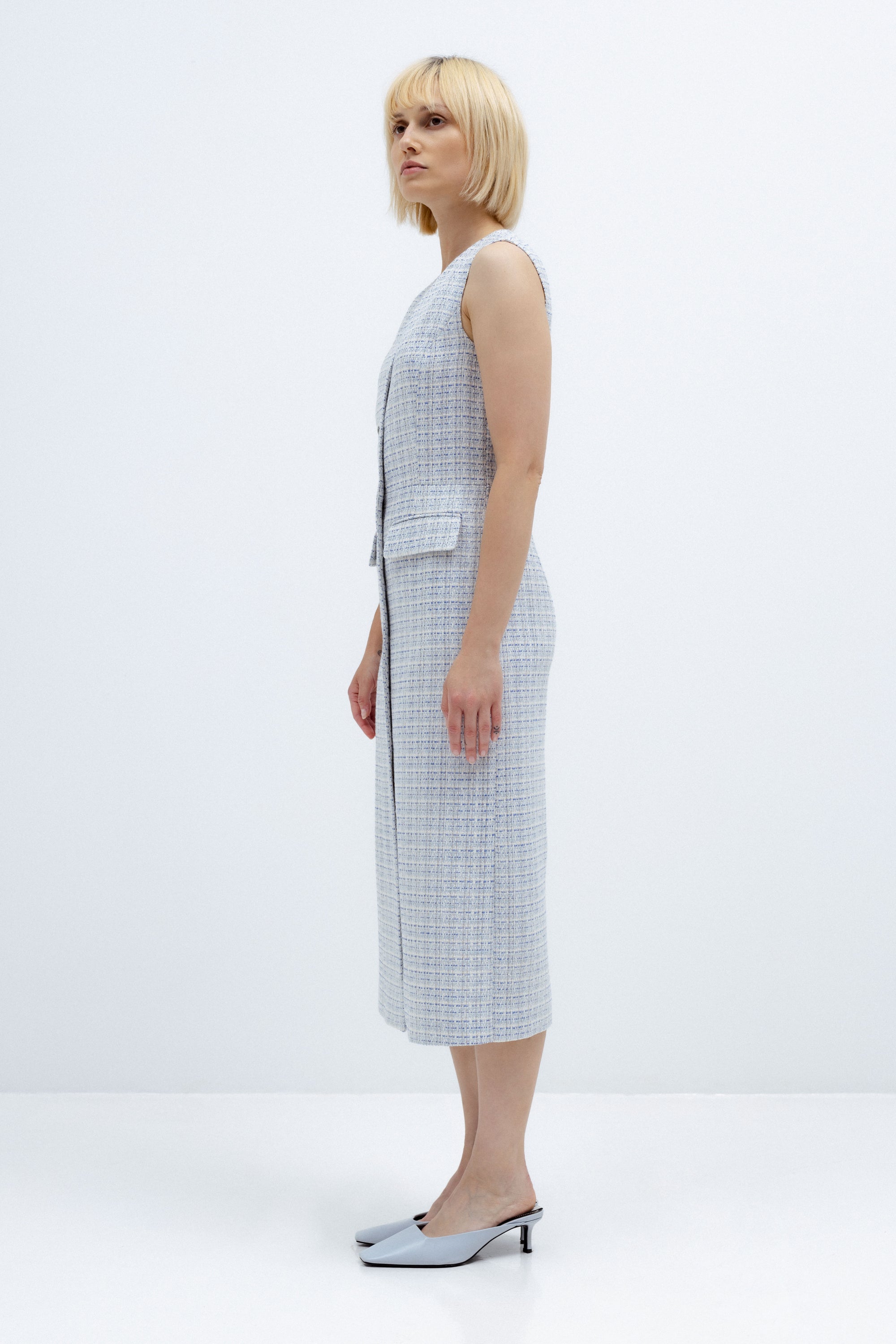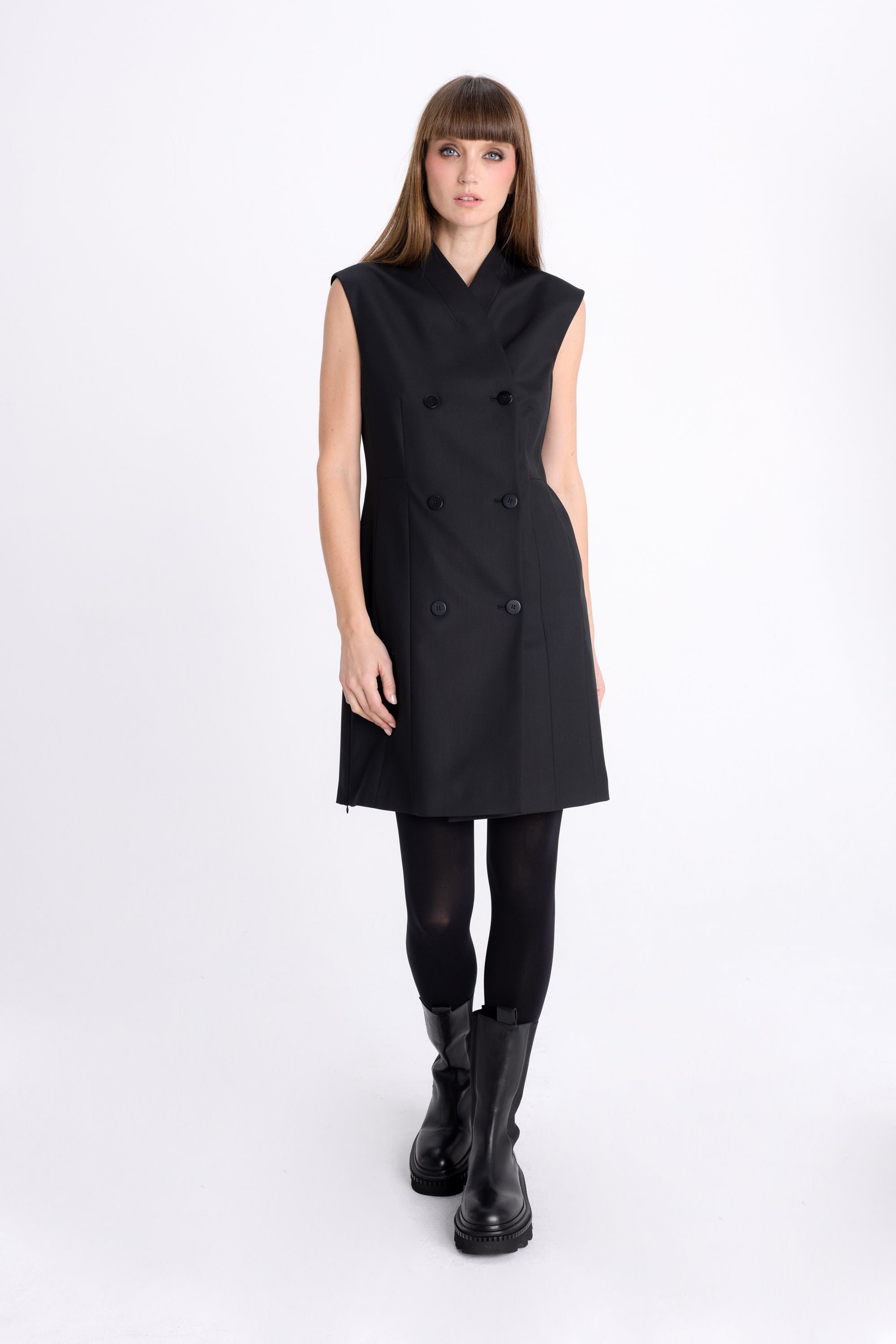 DOUBLE-BREASTED BLACK SLEEVELESS DRESS