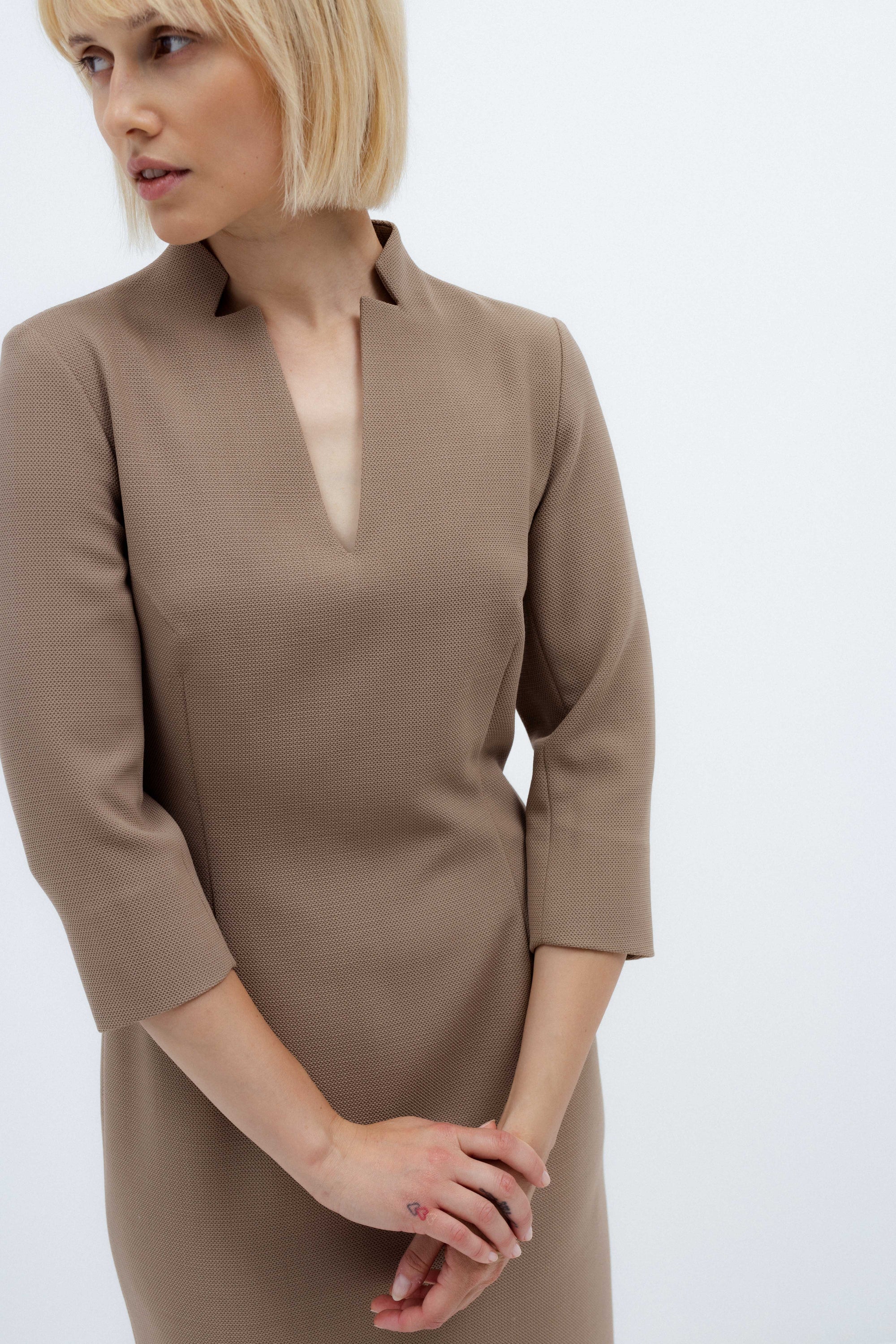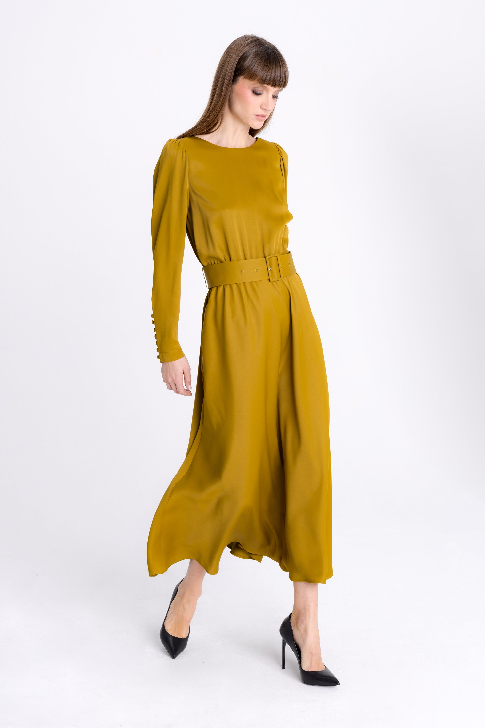DARK MUSTARD MIDI DRESS WITH DECORATIVE CUFFS