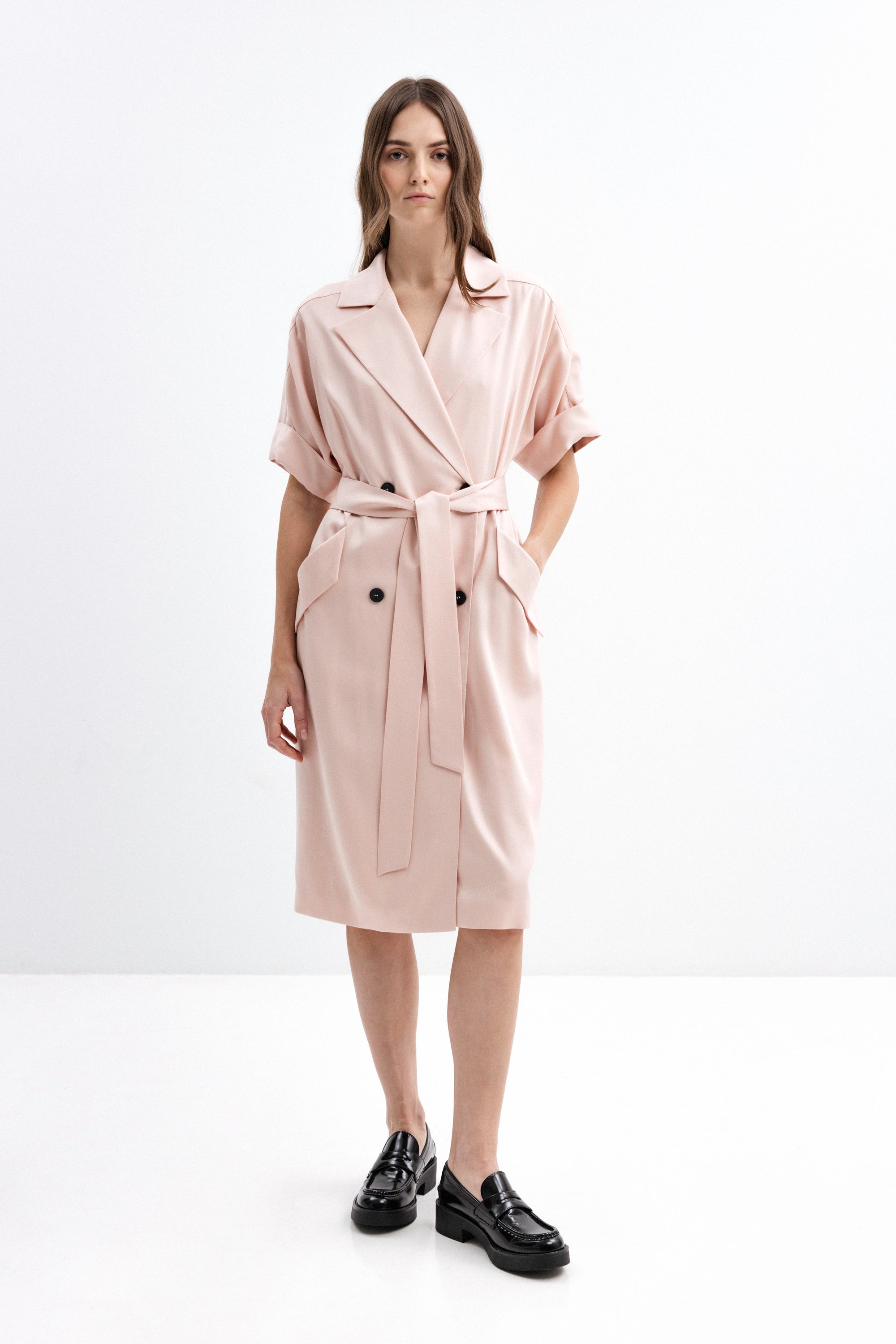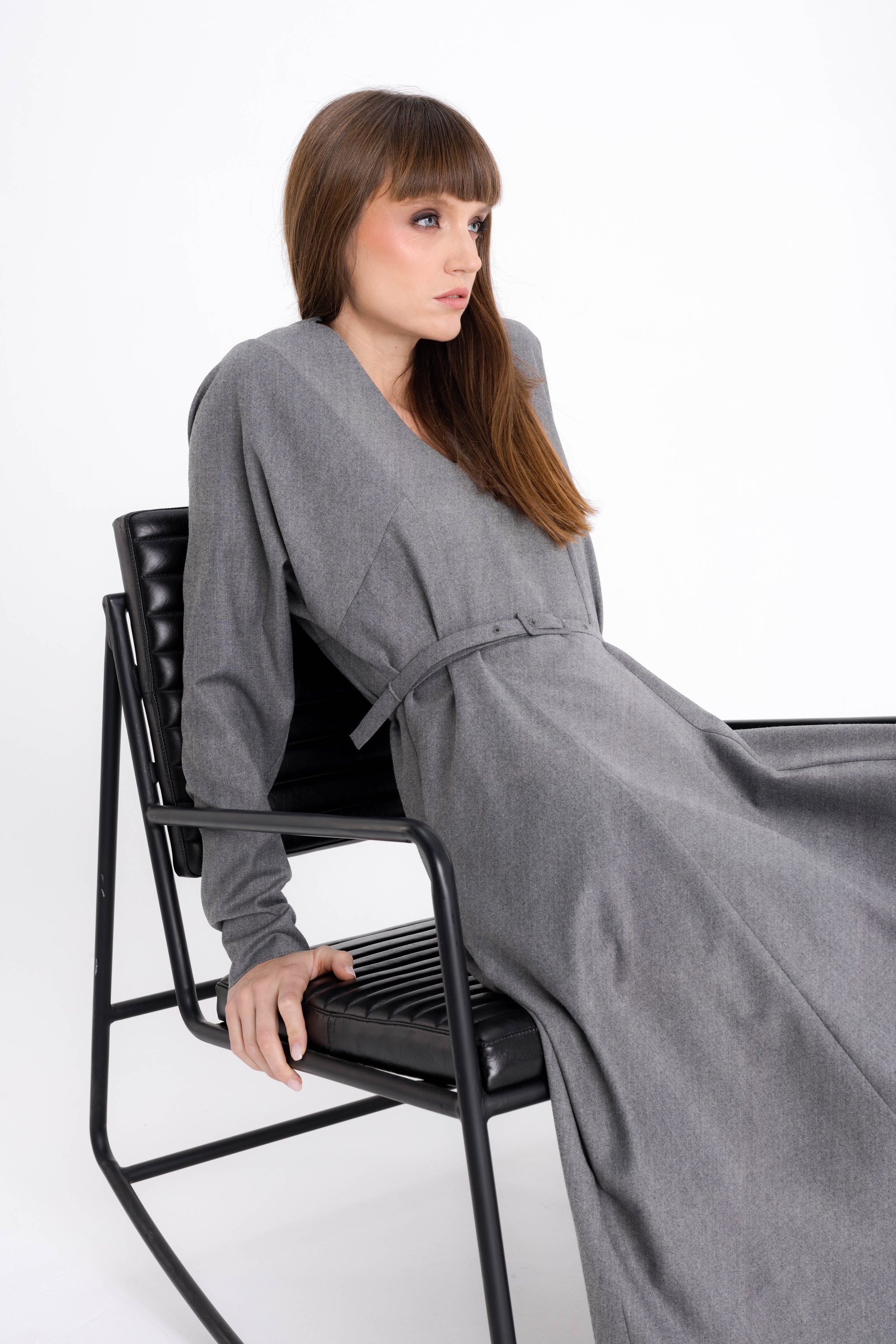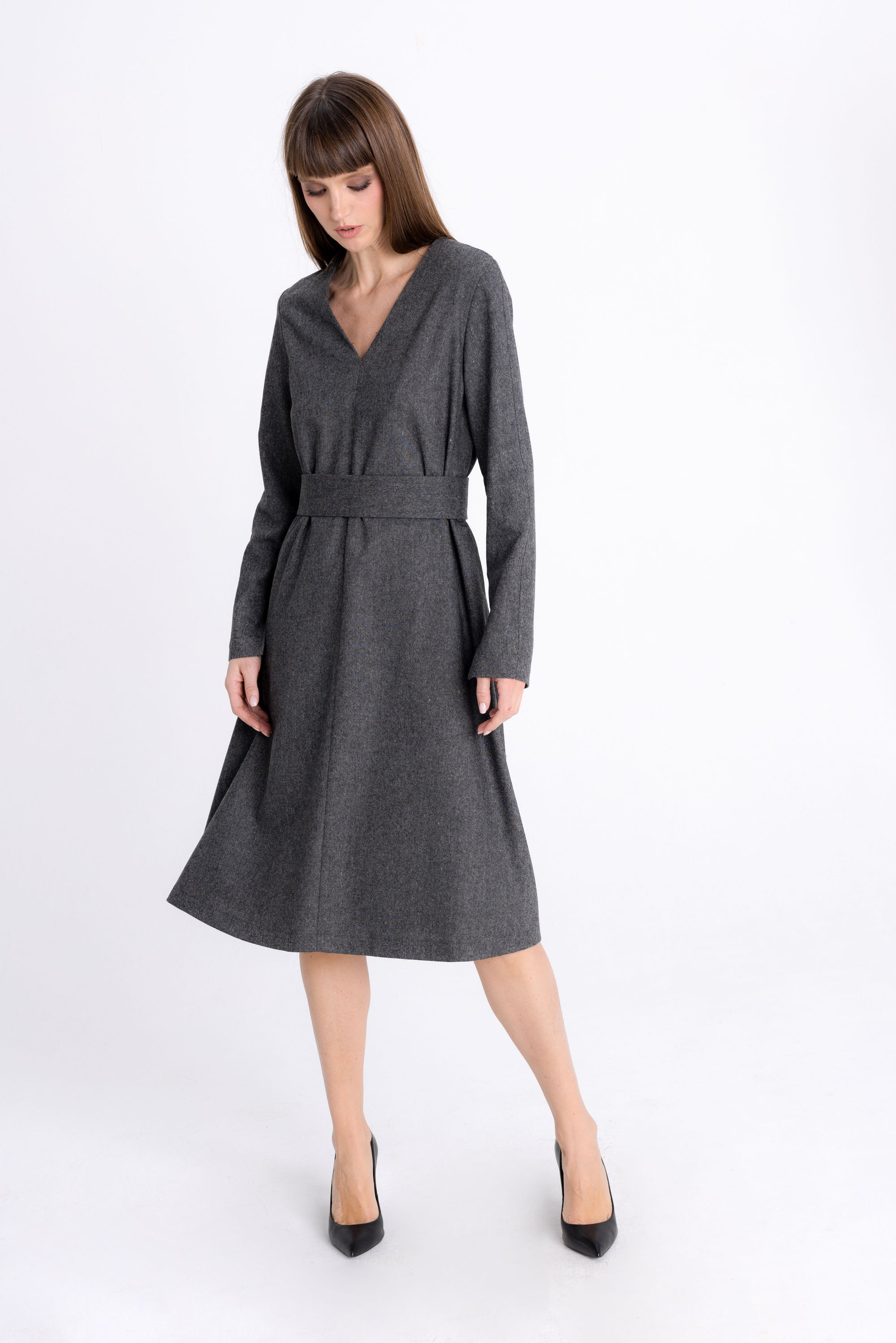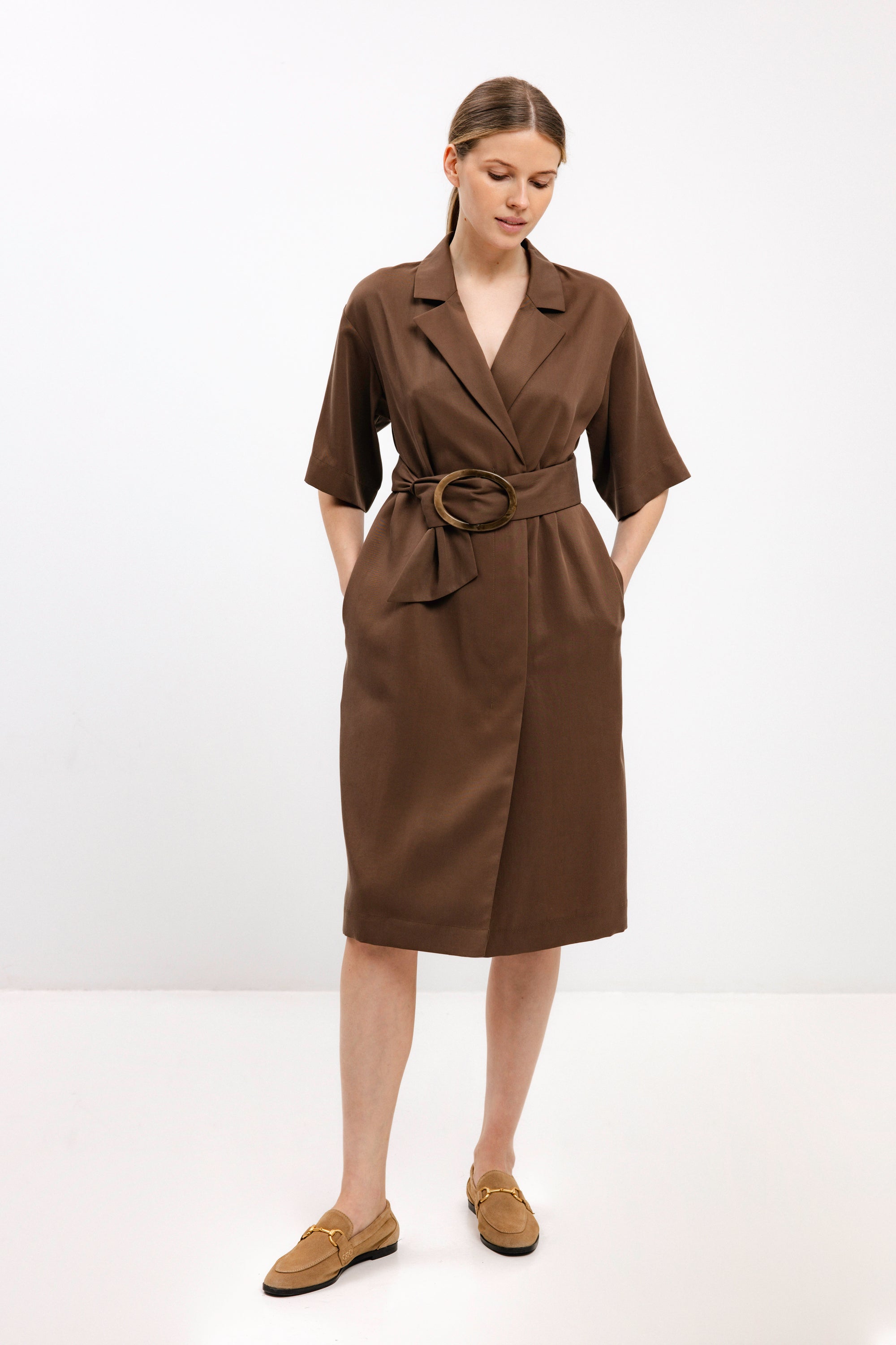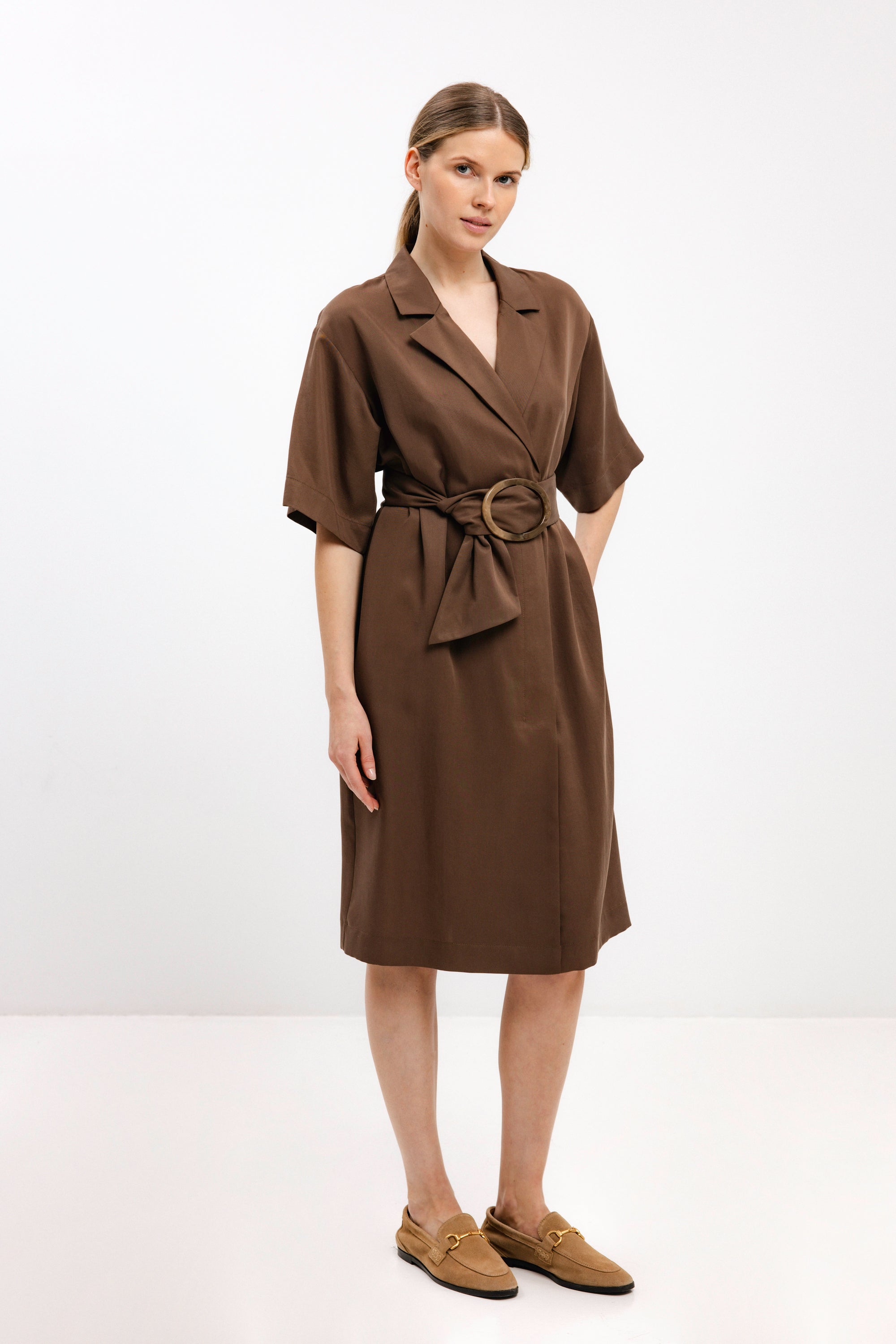 BELTED NUT BROWN WRAP DRESS WITH BELT