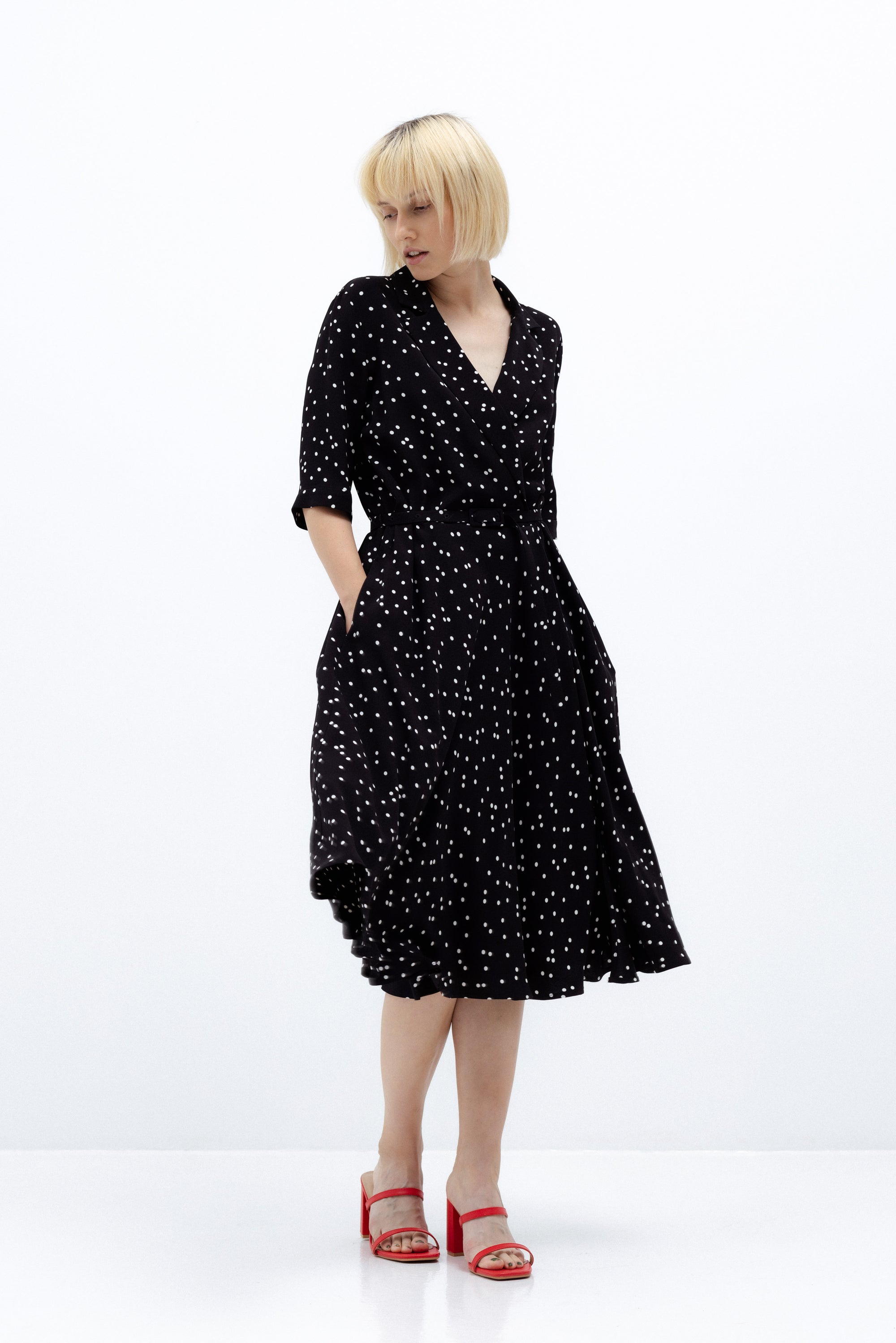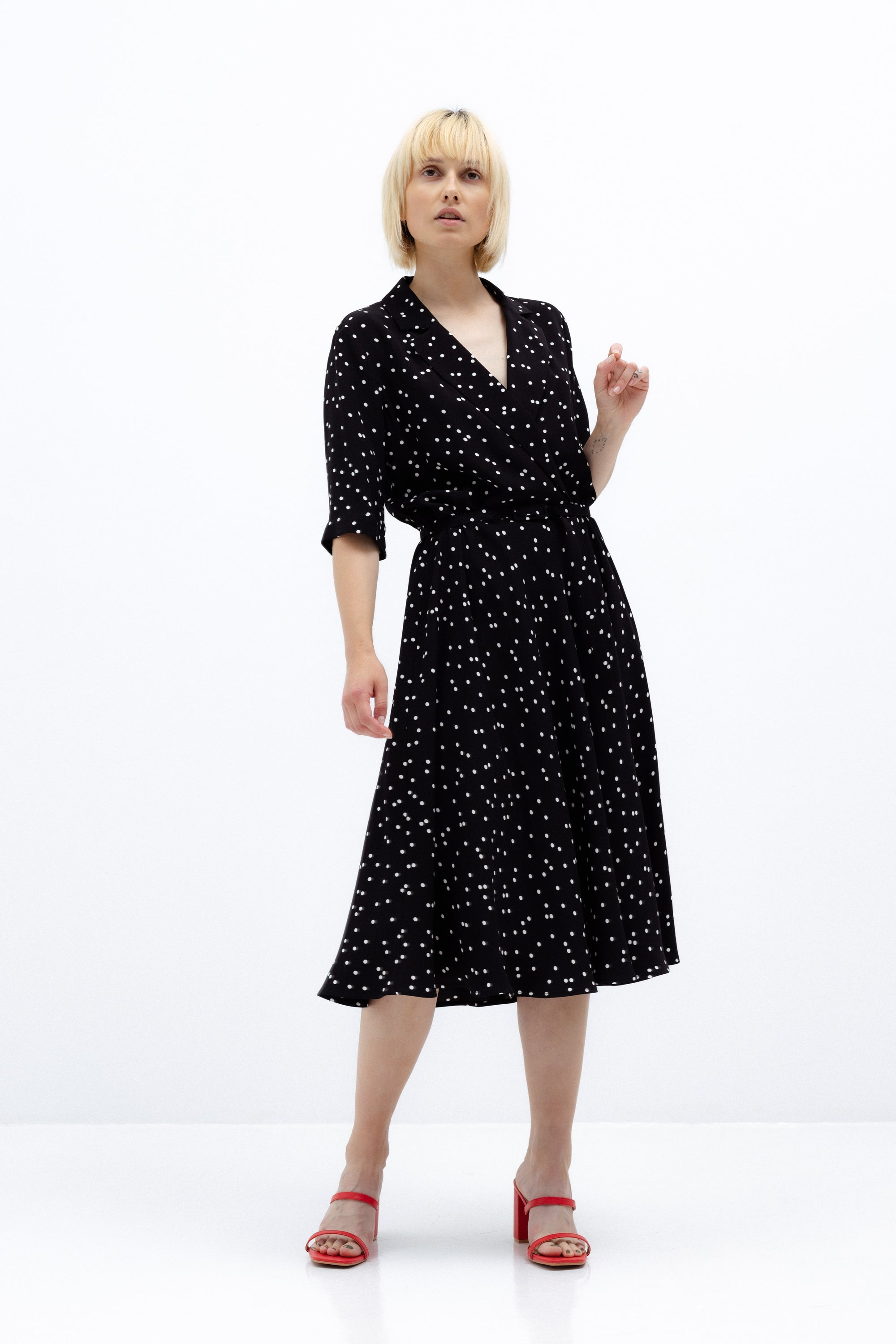 BLACK MIDI POLKA-DOT DRESS WITH BELT