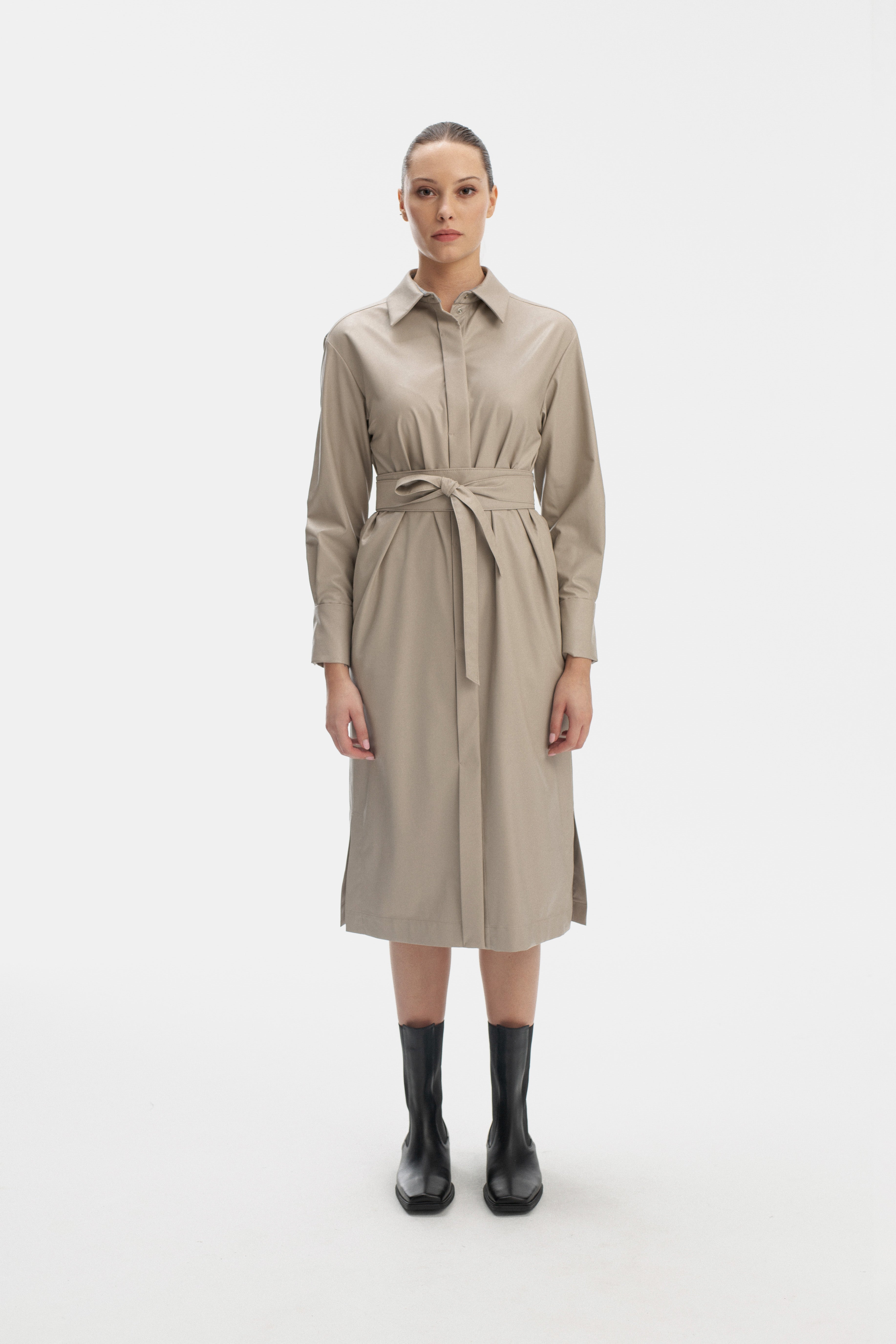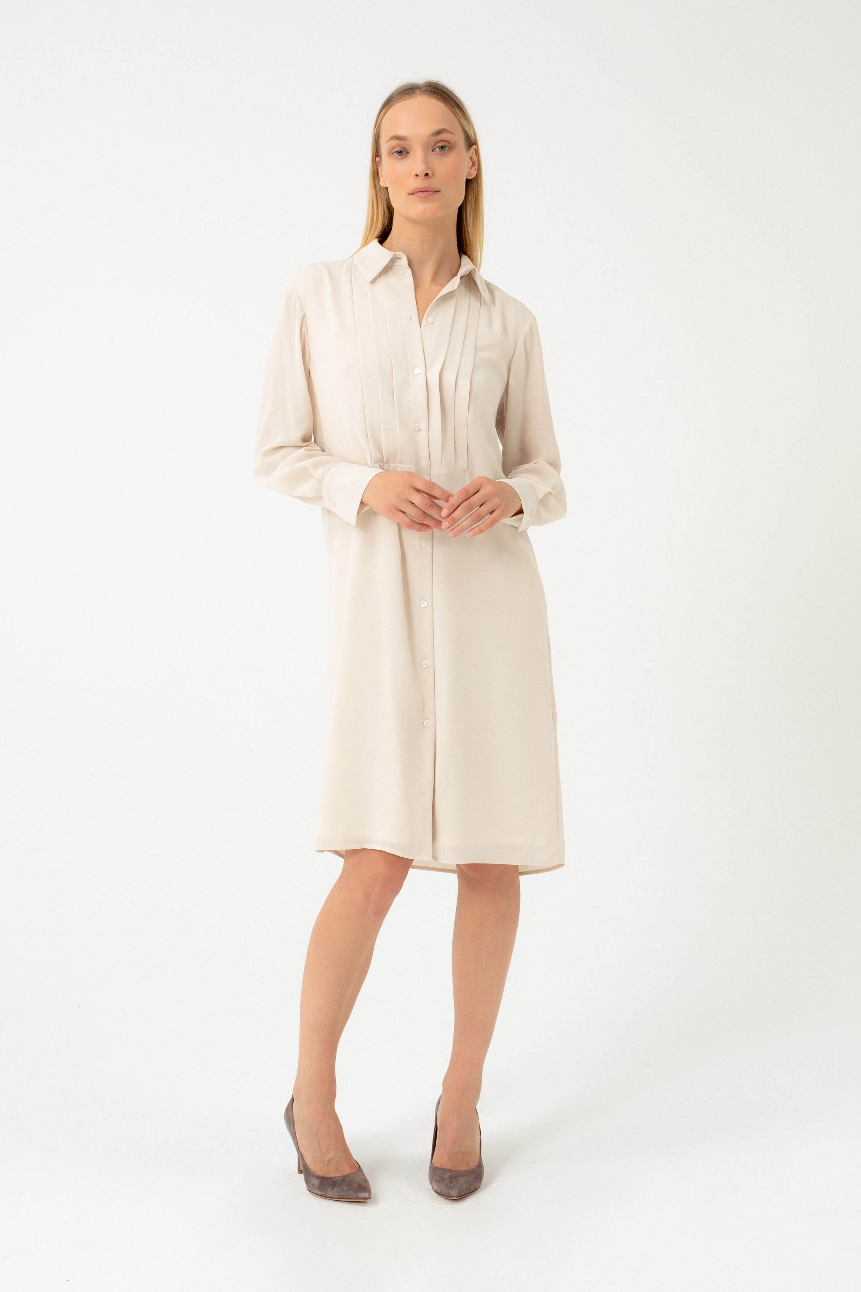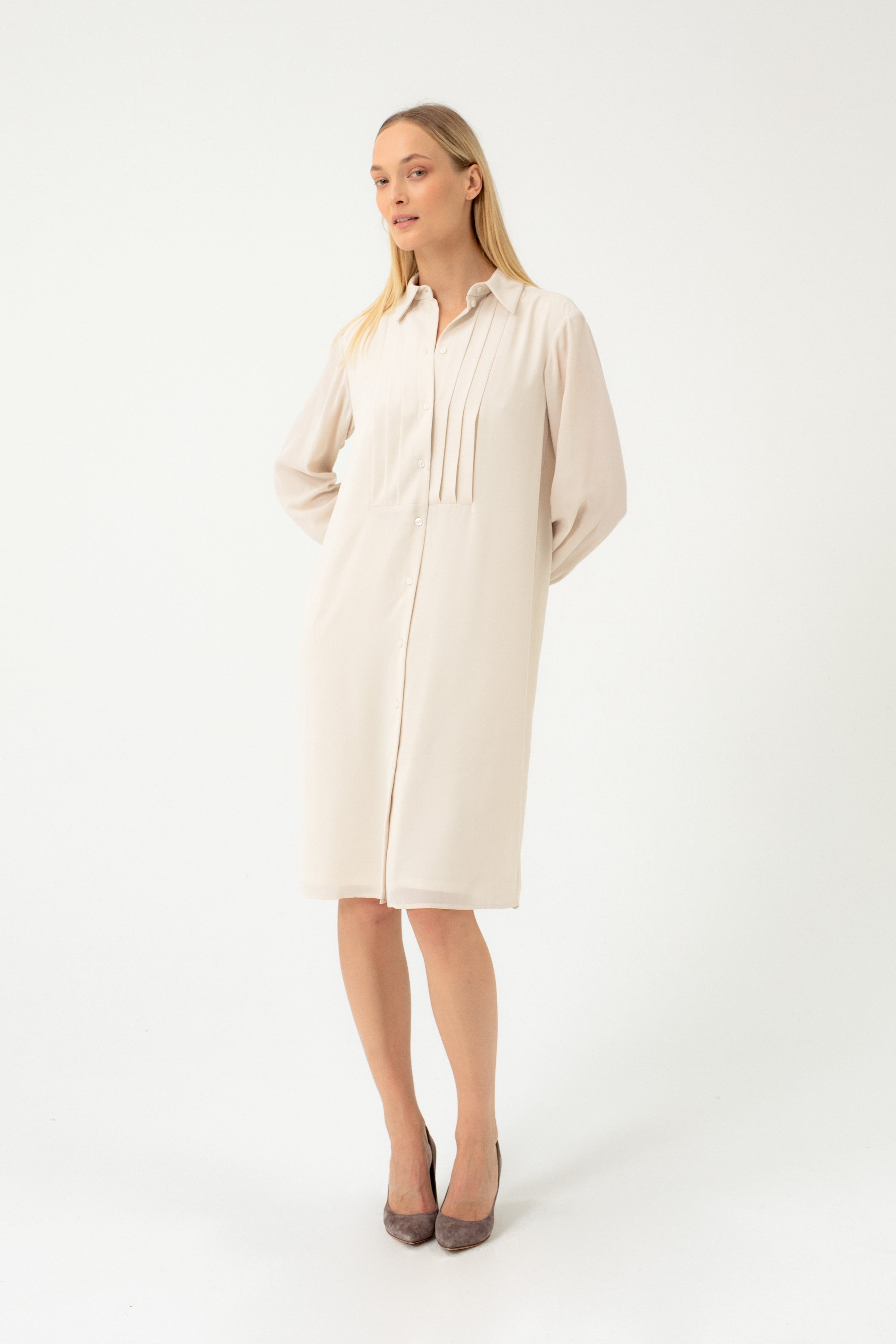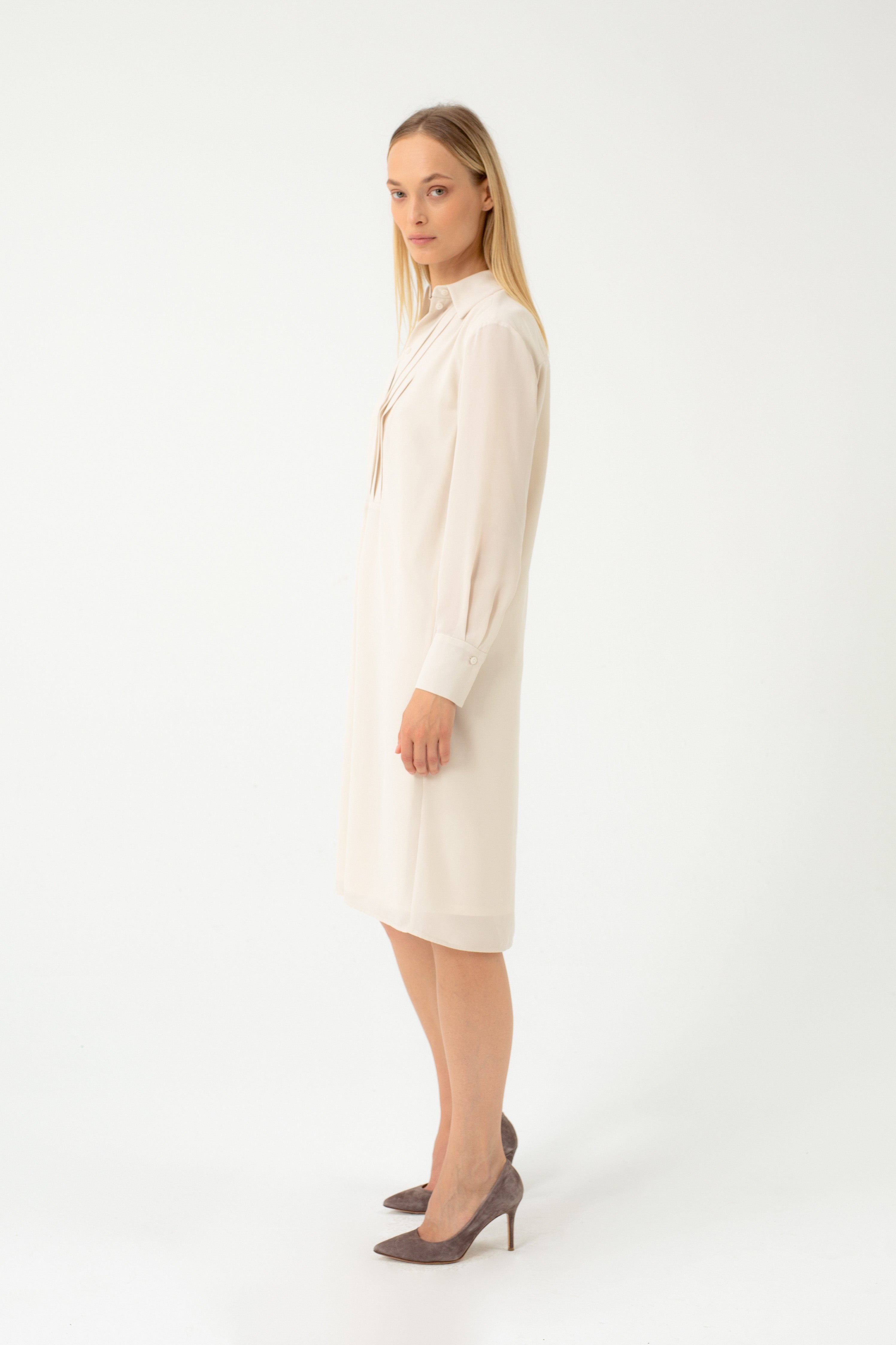SAND-COLORED DRESS WITH LONG SLEEVE