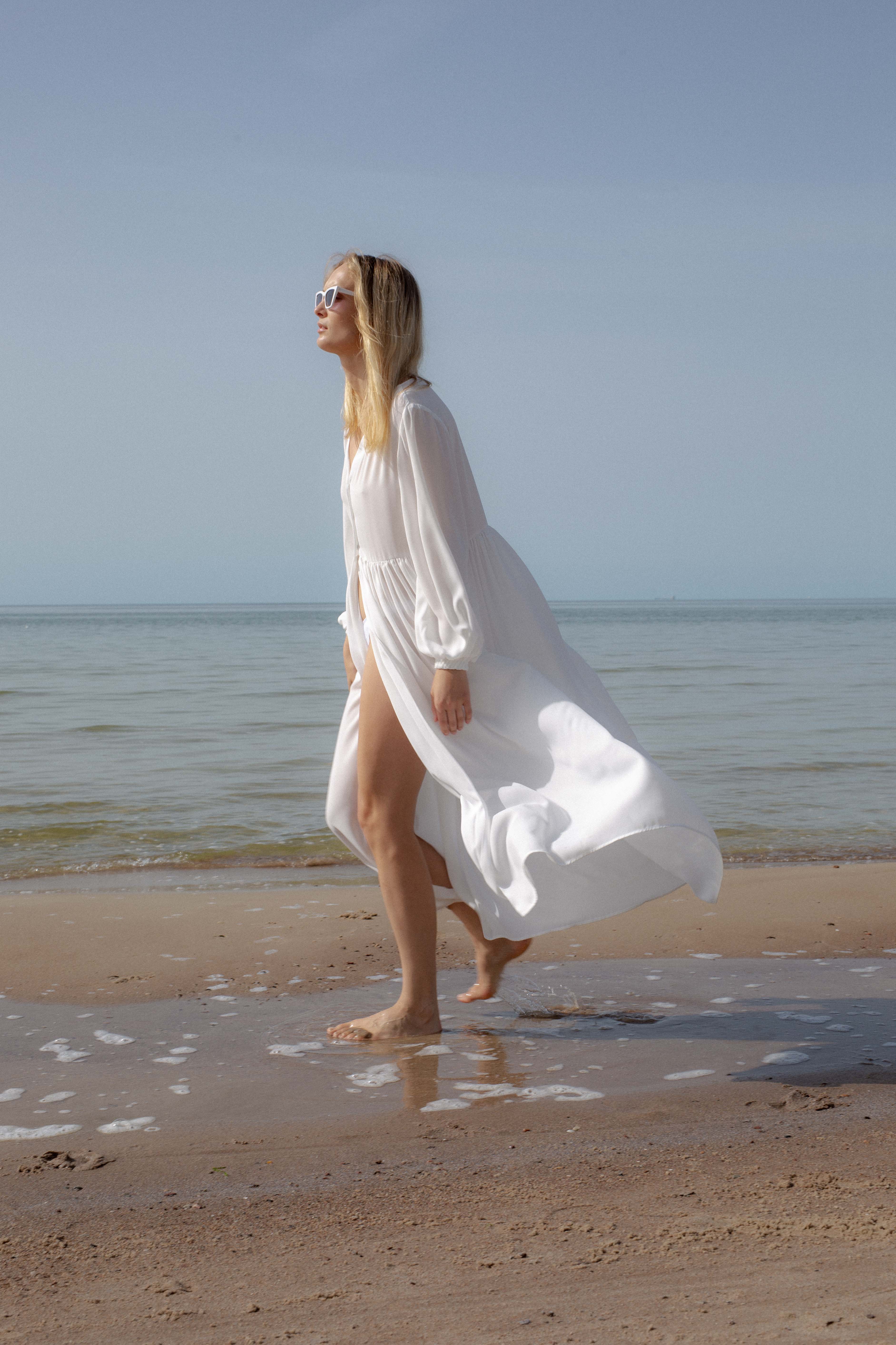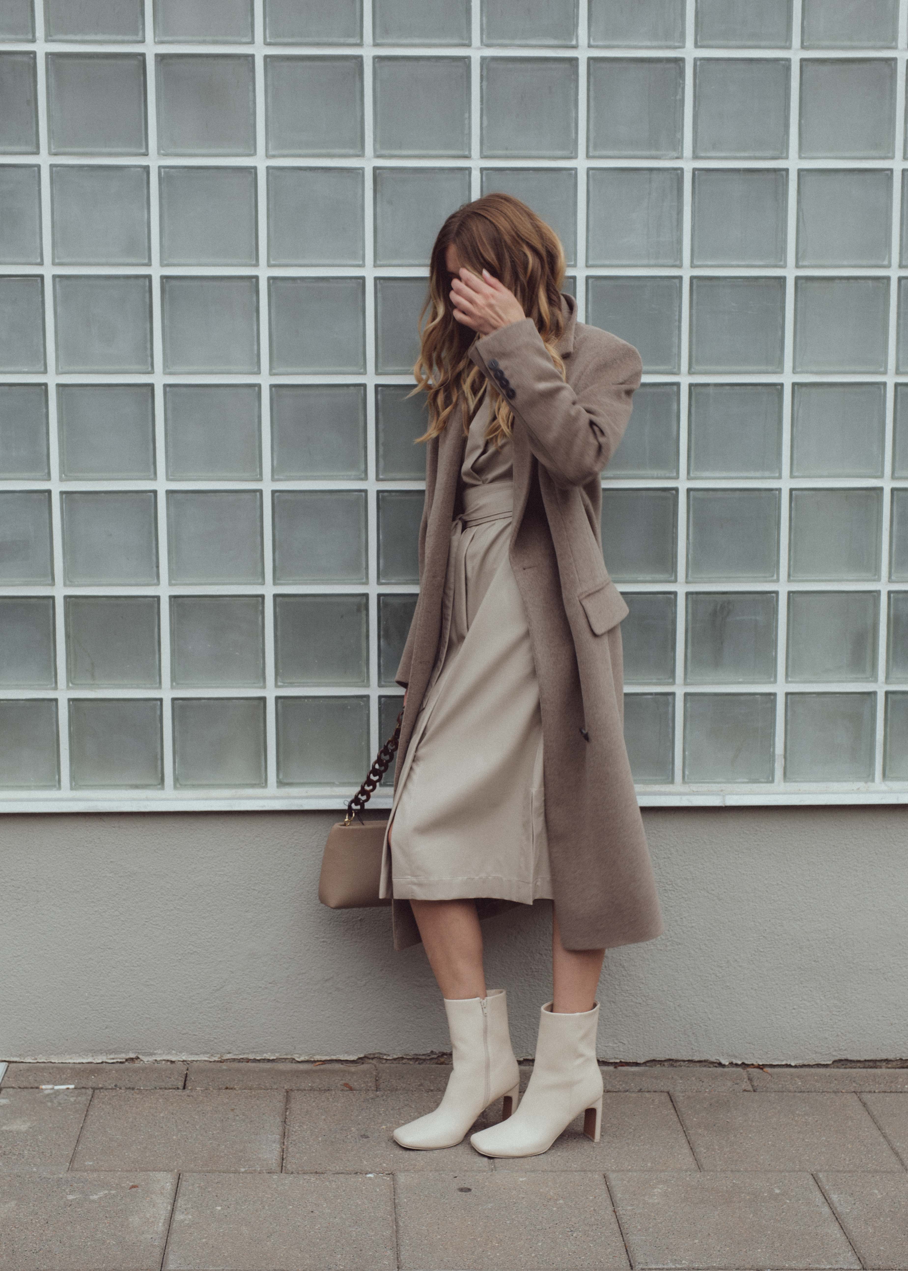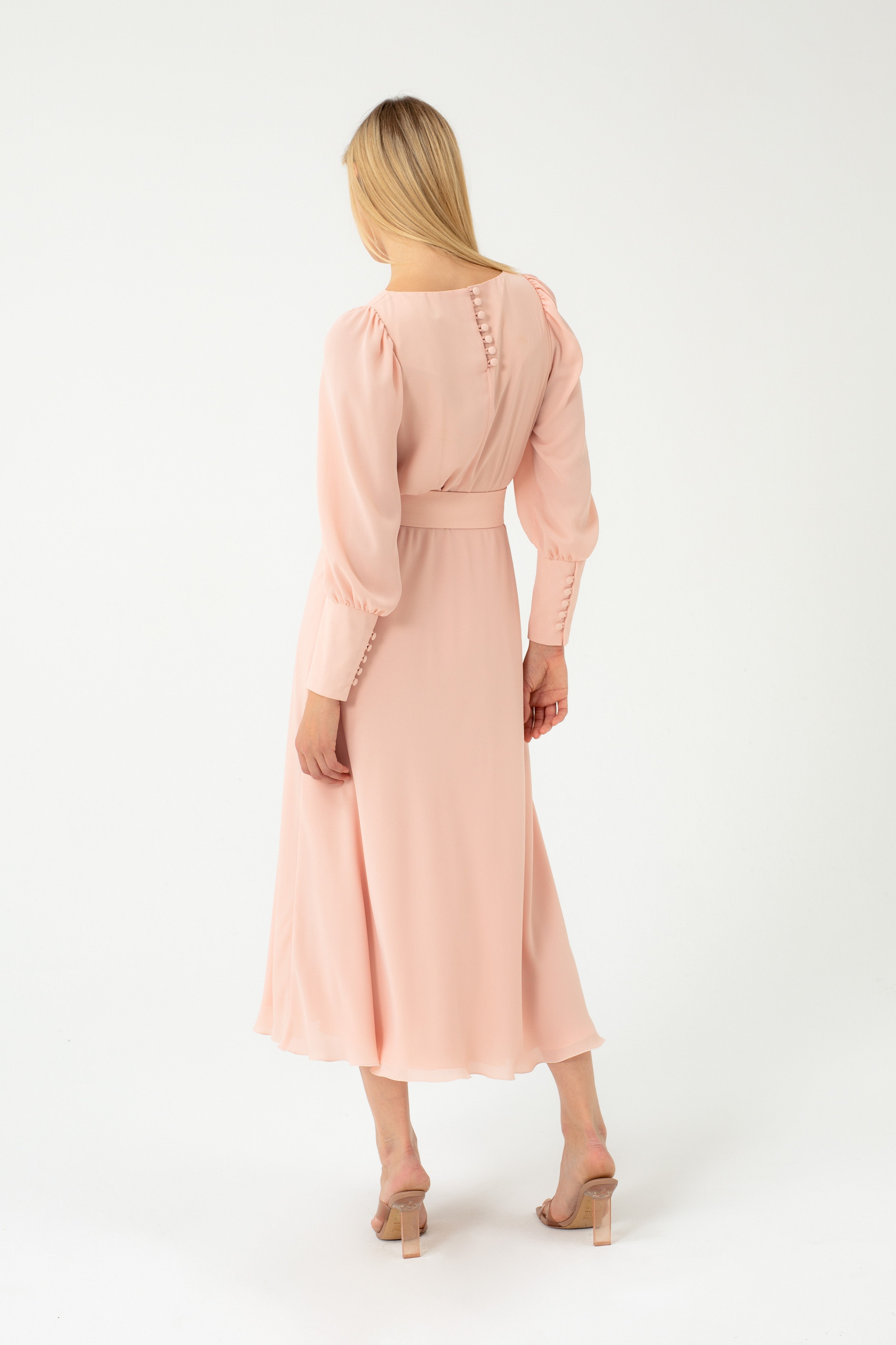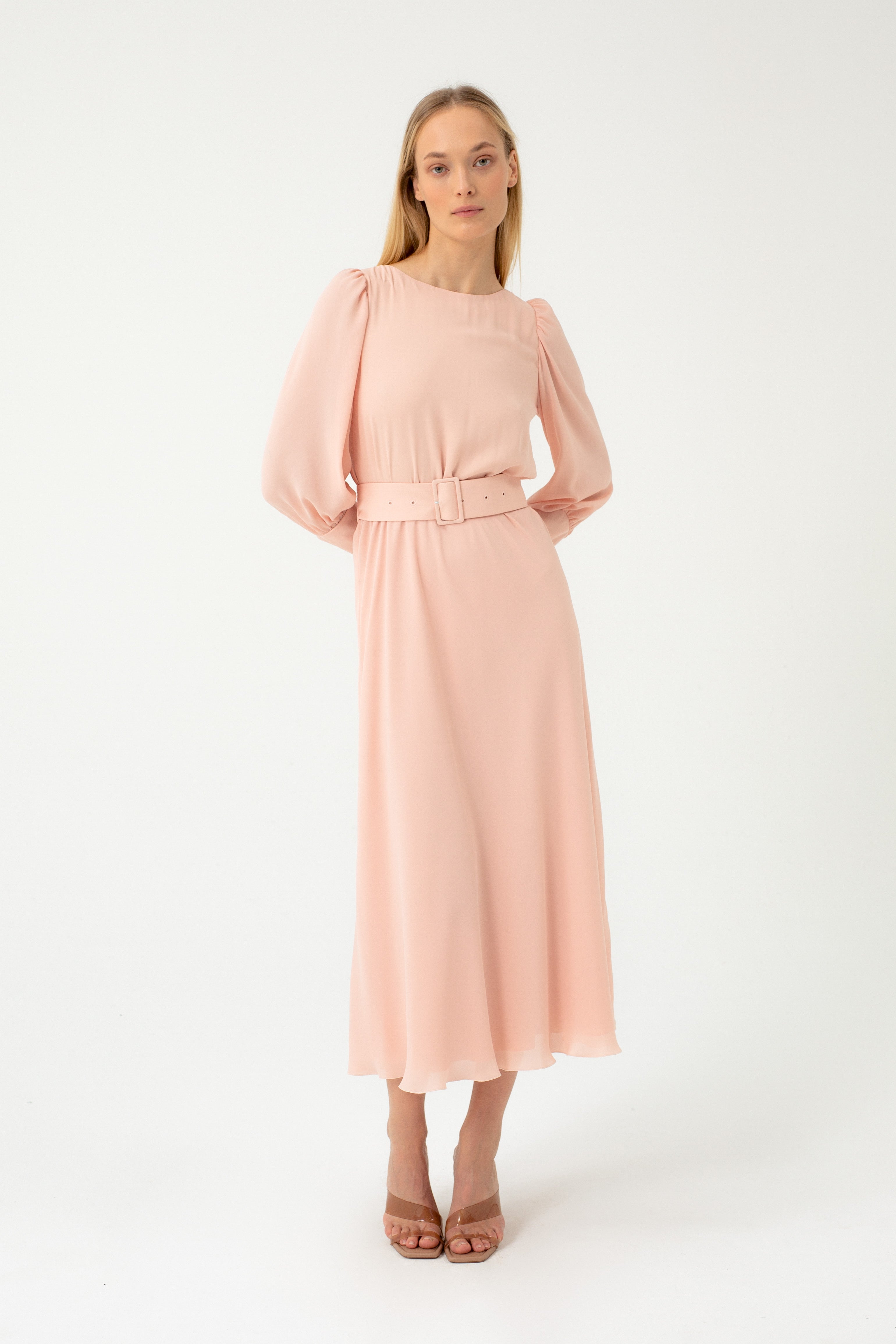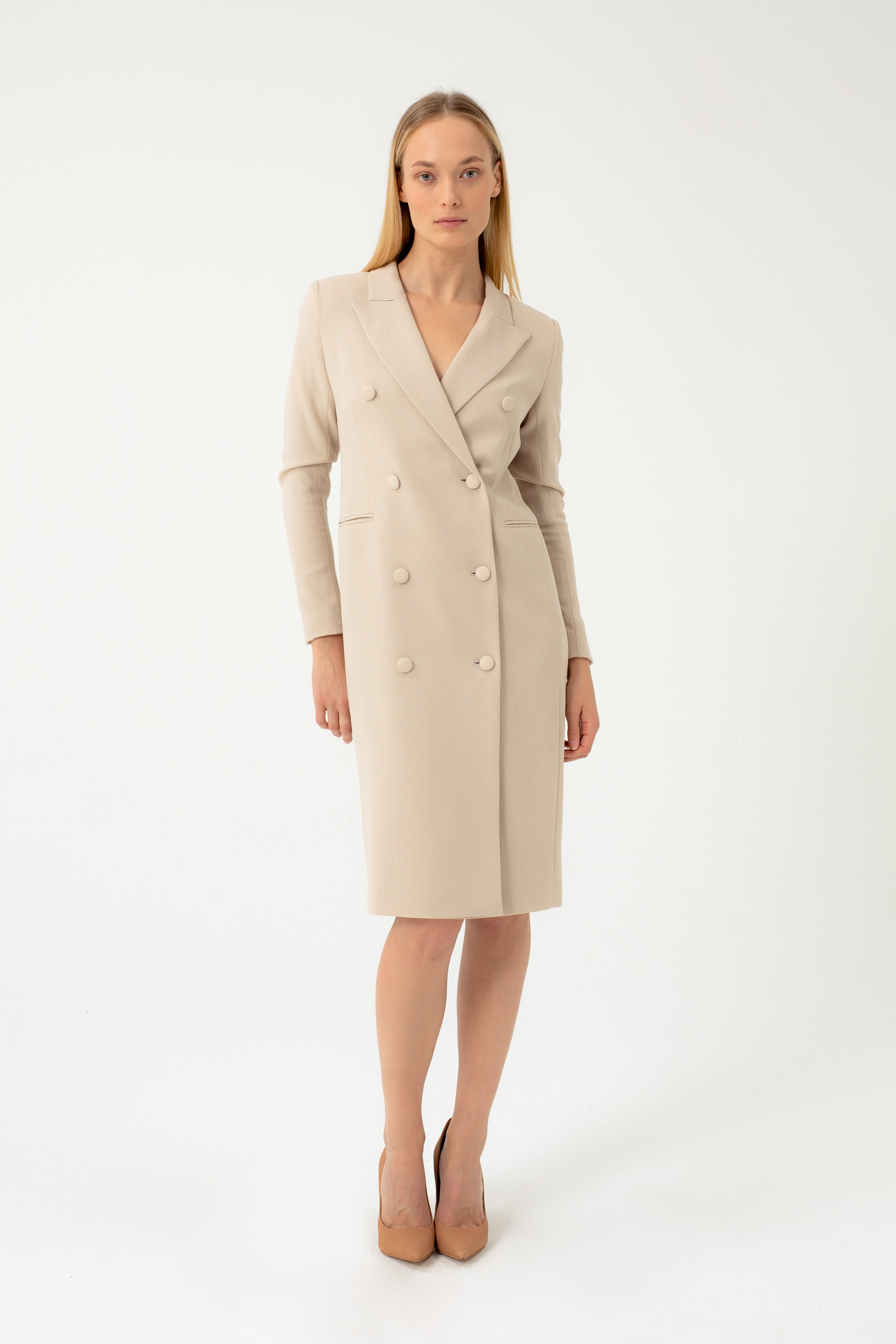 SAND-COLORED DRESS WITH LONG SLEEVE