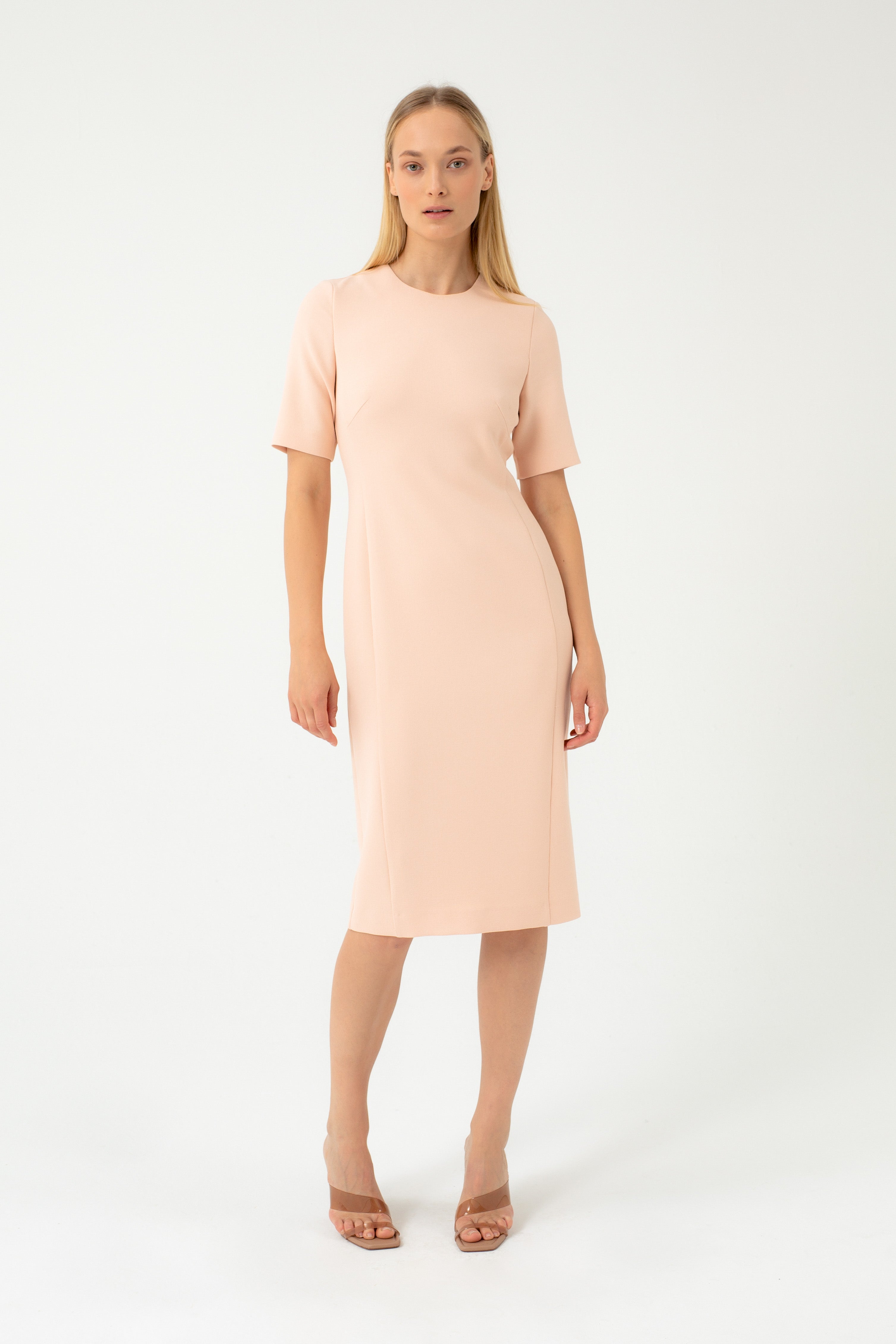 PEACH FITTED DRESS WITH SHORT SLEEVES