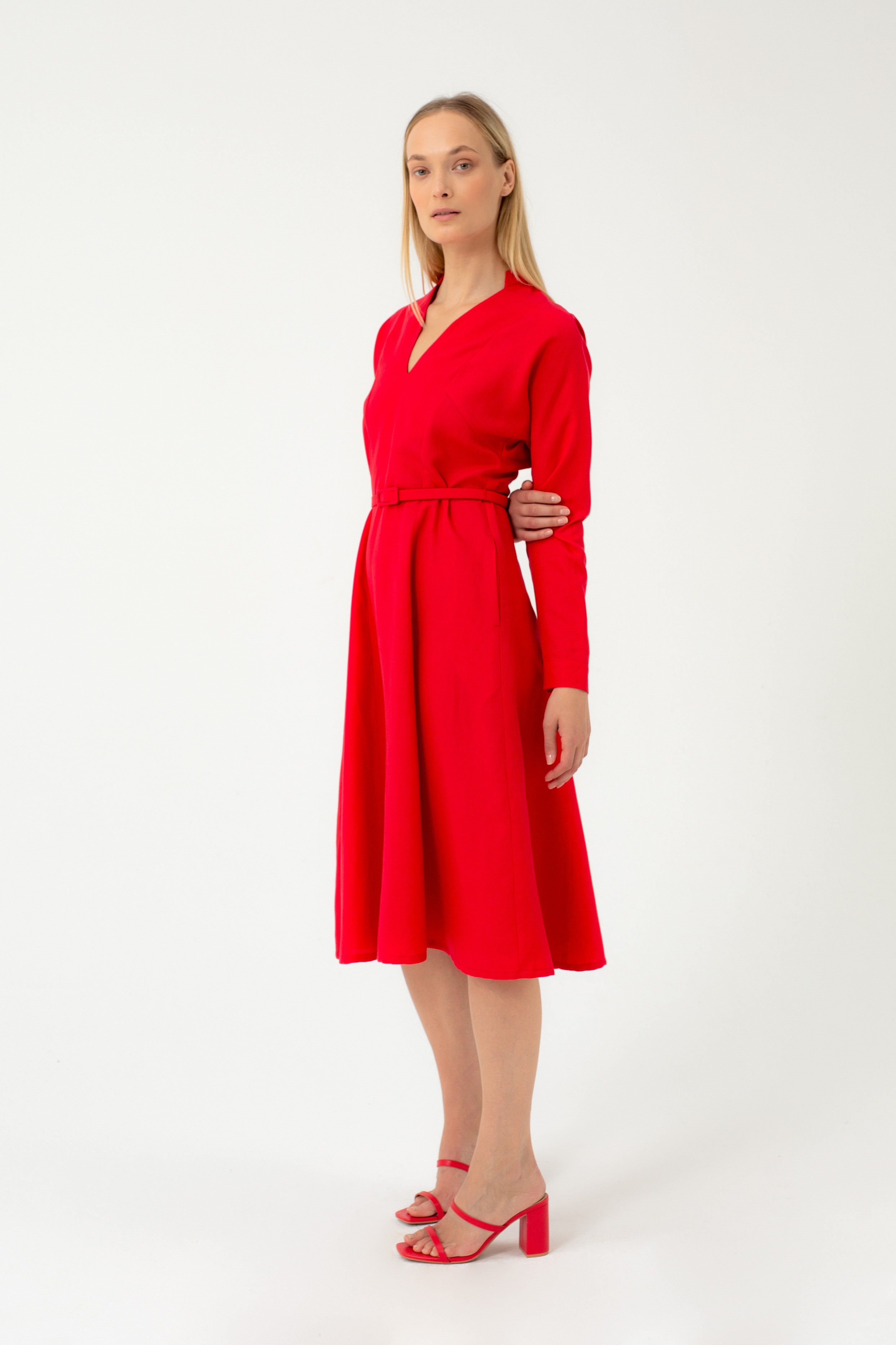 RED DRESS WITH RUFFLES ON THE SLEEVES