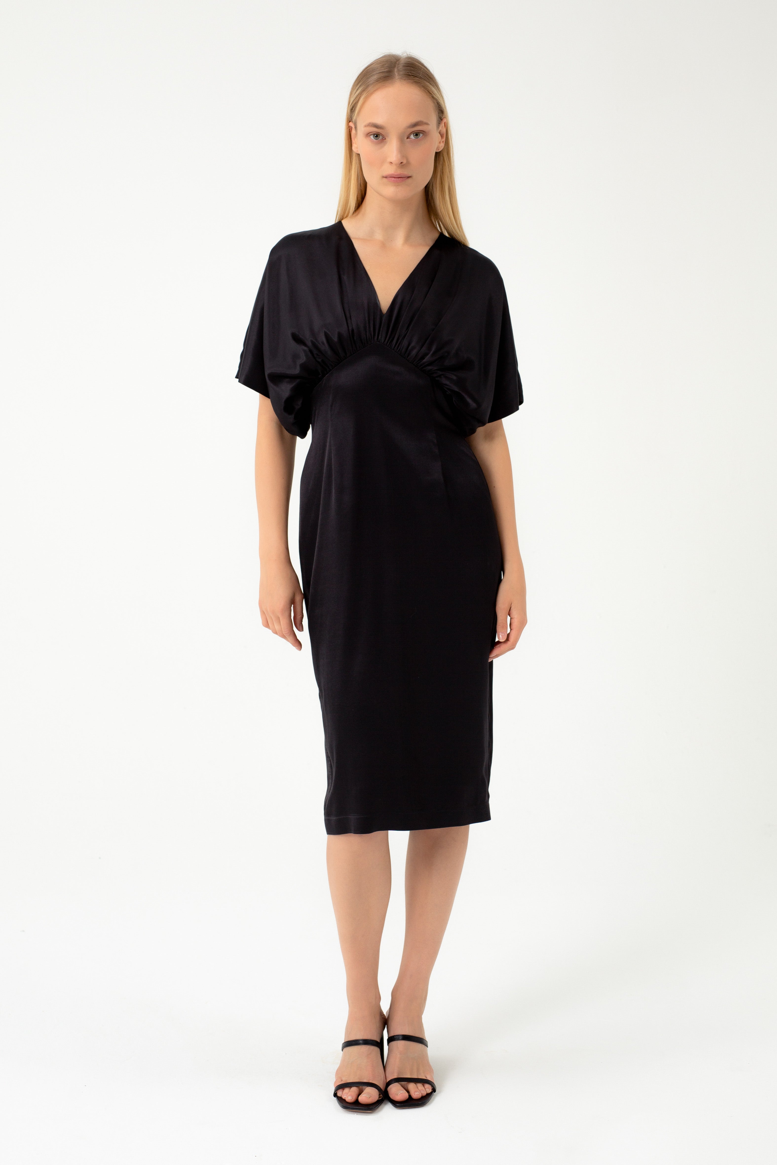 BLACK DRESS WITH SHORT KIMONO SLEEVES