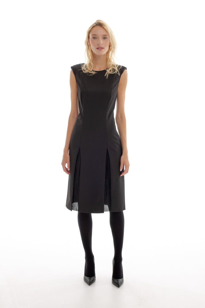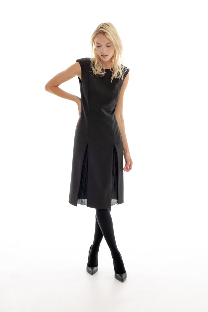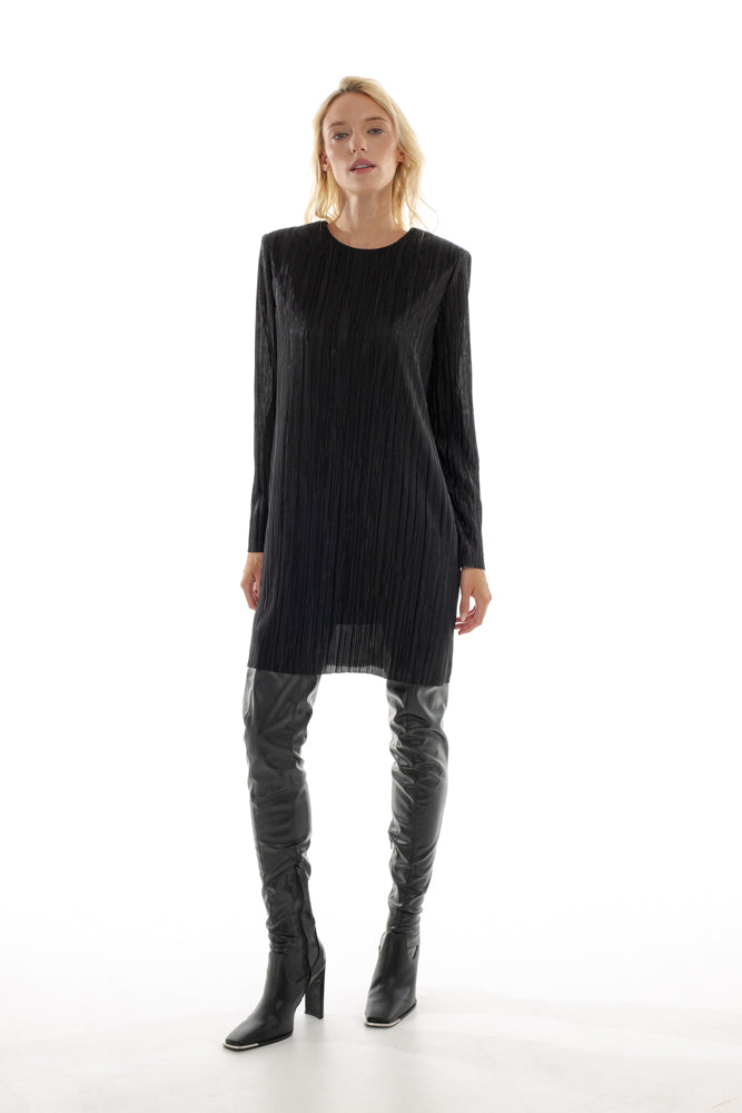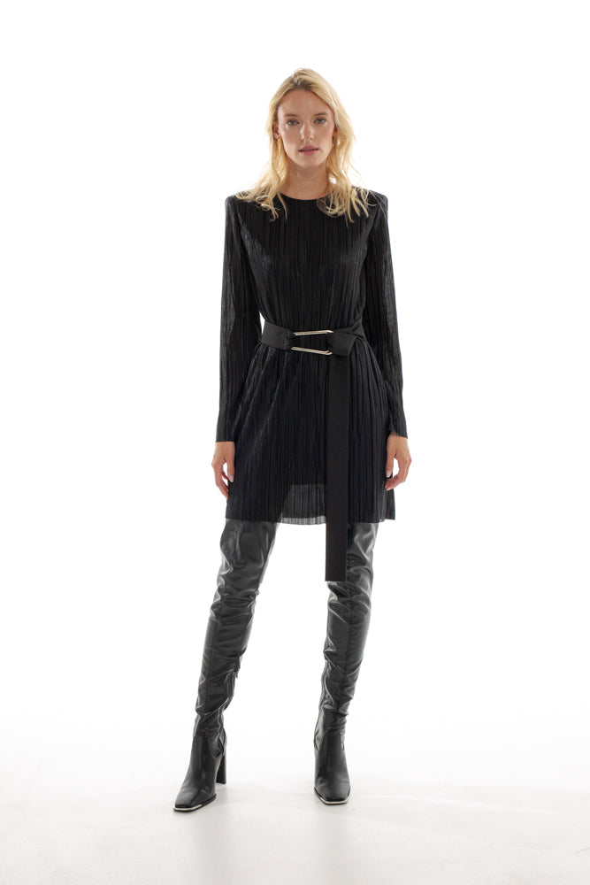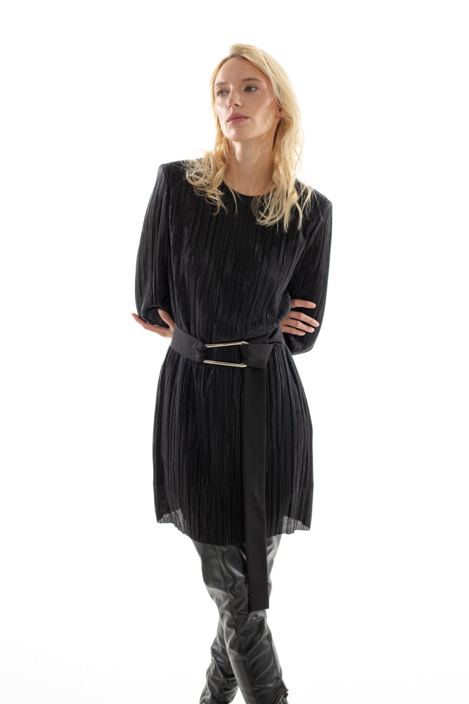 BLACK JERSEY SHORT DRESS WITH PLEATS