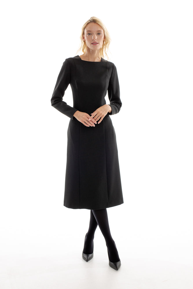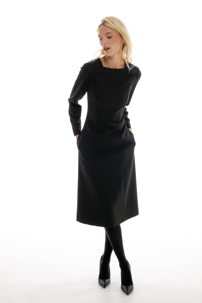 MIDI BLACK DRESS WITH LONG SLEEVES