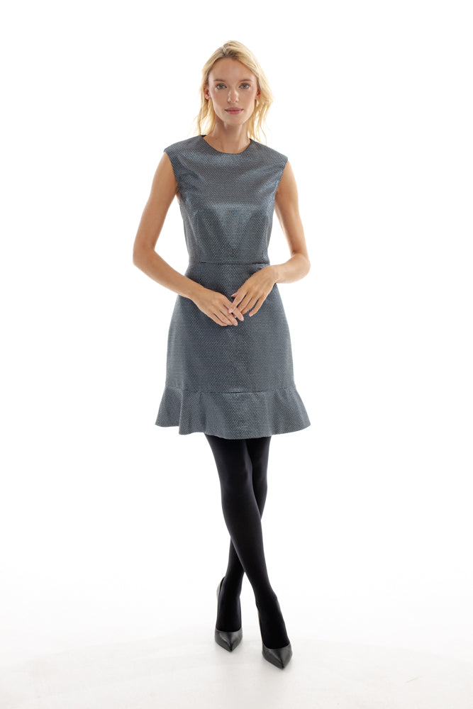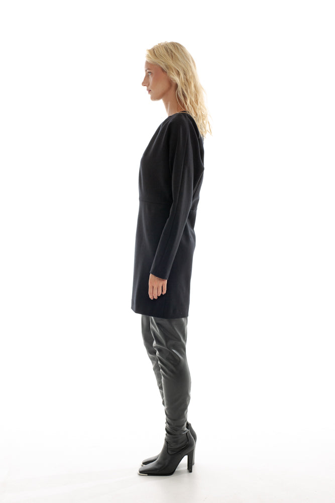 ECO LEATHER STRAIGHT DRESS WITH SHIRT STYLE SLEEVES