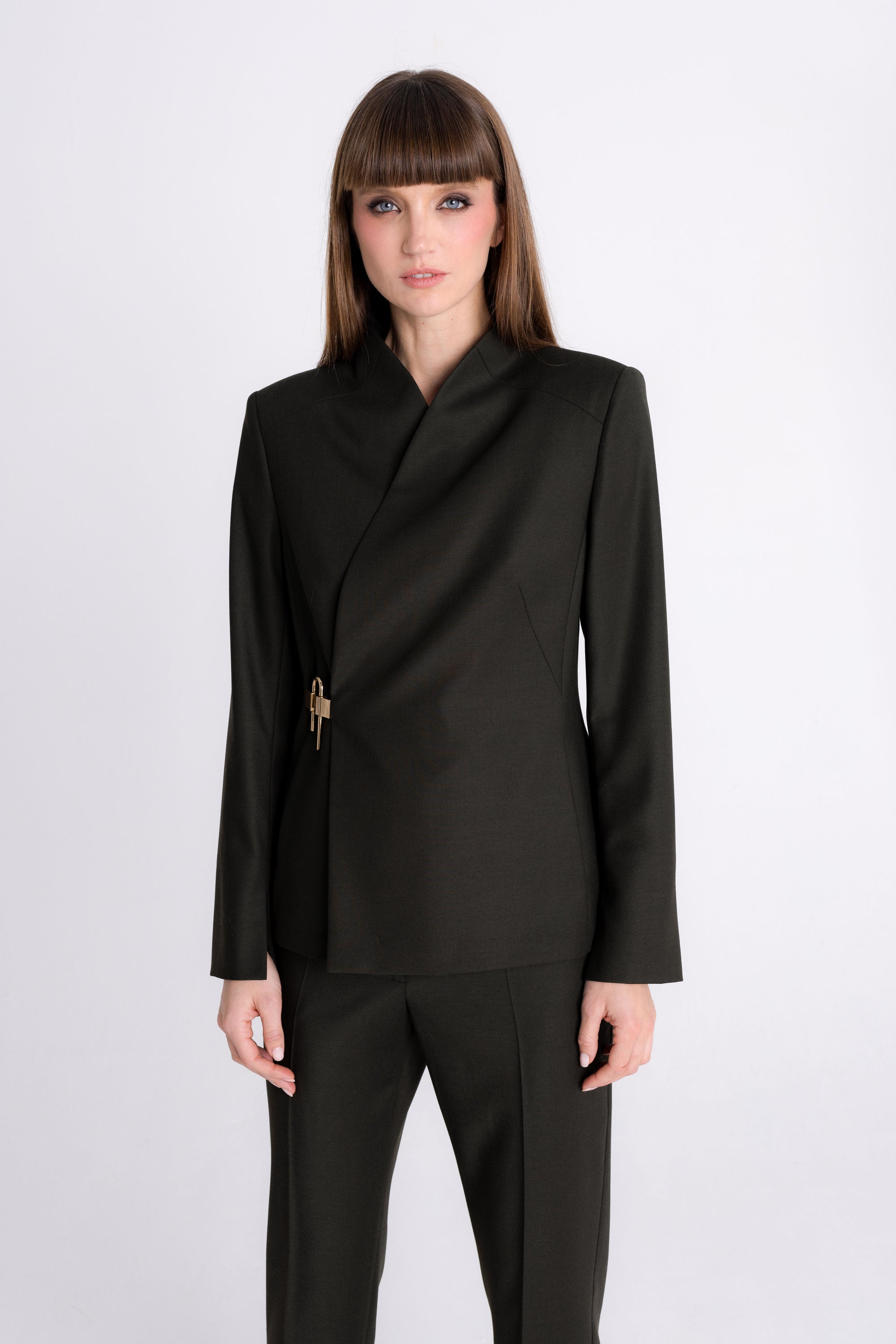 FOREST GREEN BLAZER WITH ASYMMETRIC FASTENING