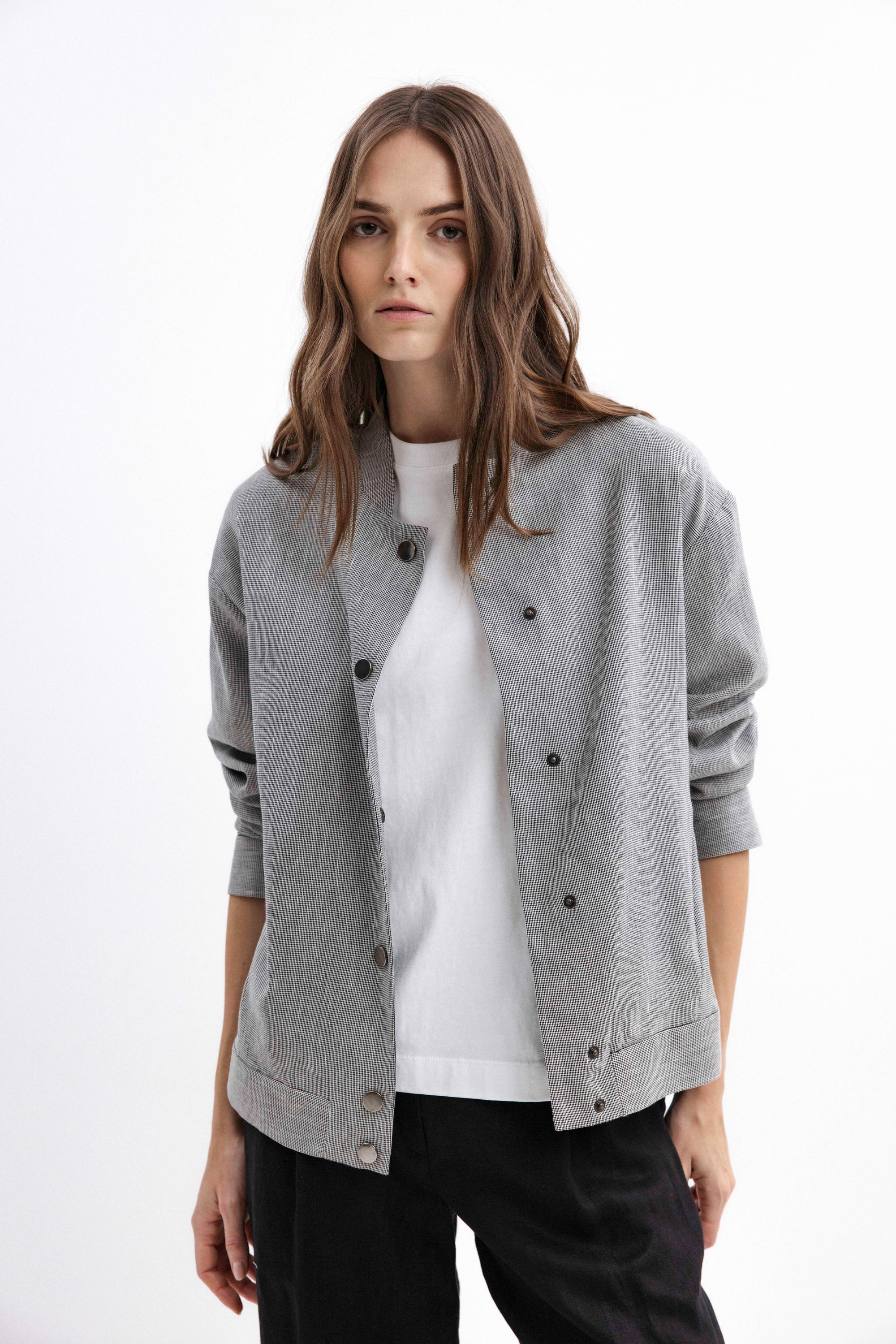 GREY STRIPED DOUBLE-BREASTED BLAZER