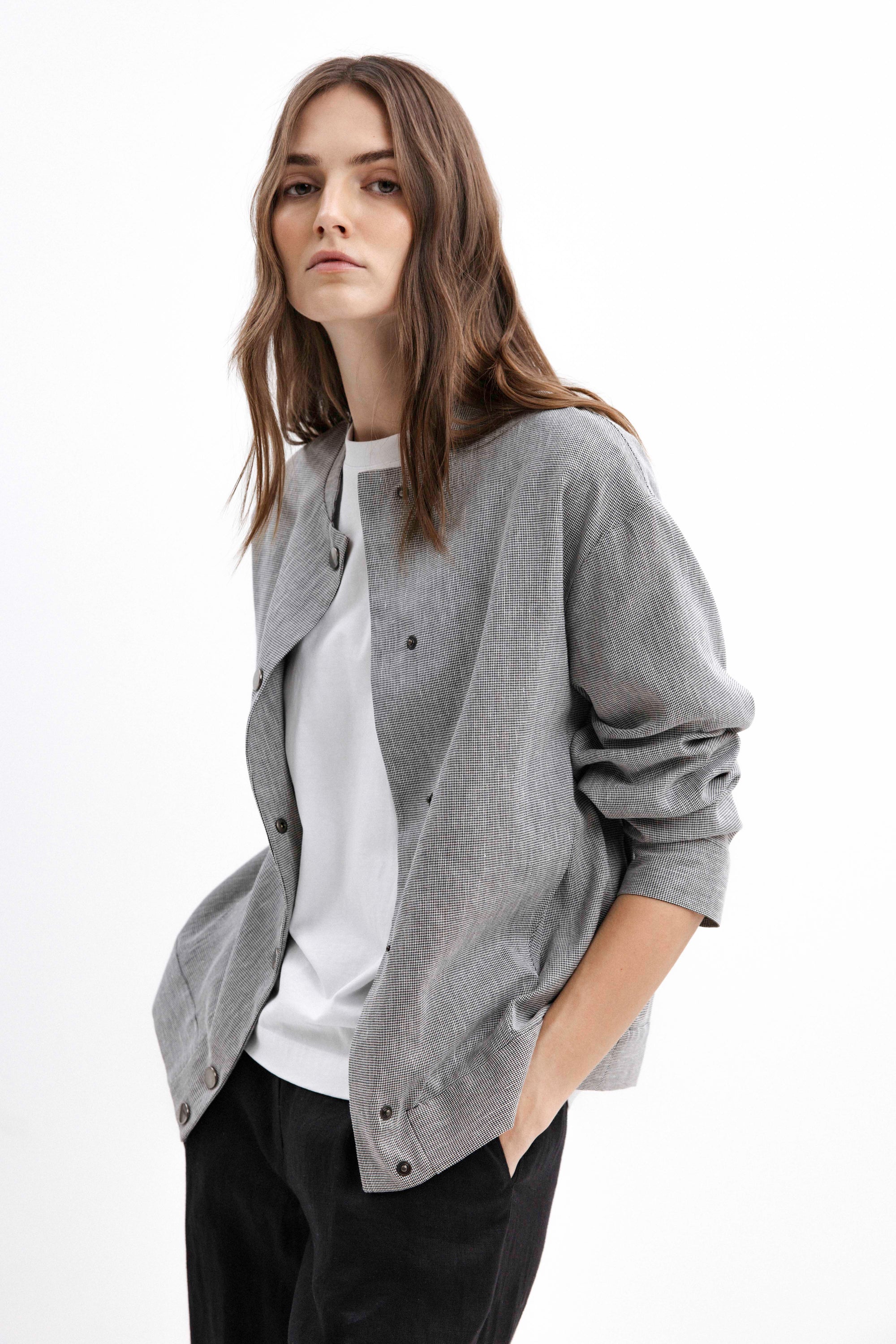 SINGLE-BREASTED OVERSIZED GREY BLAZER