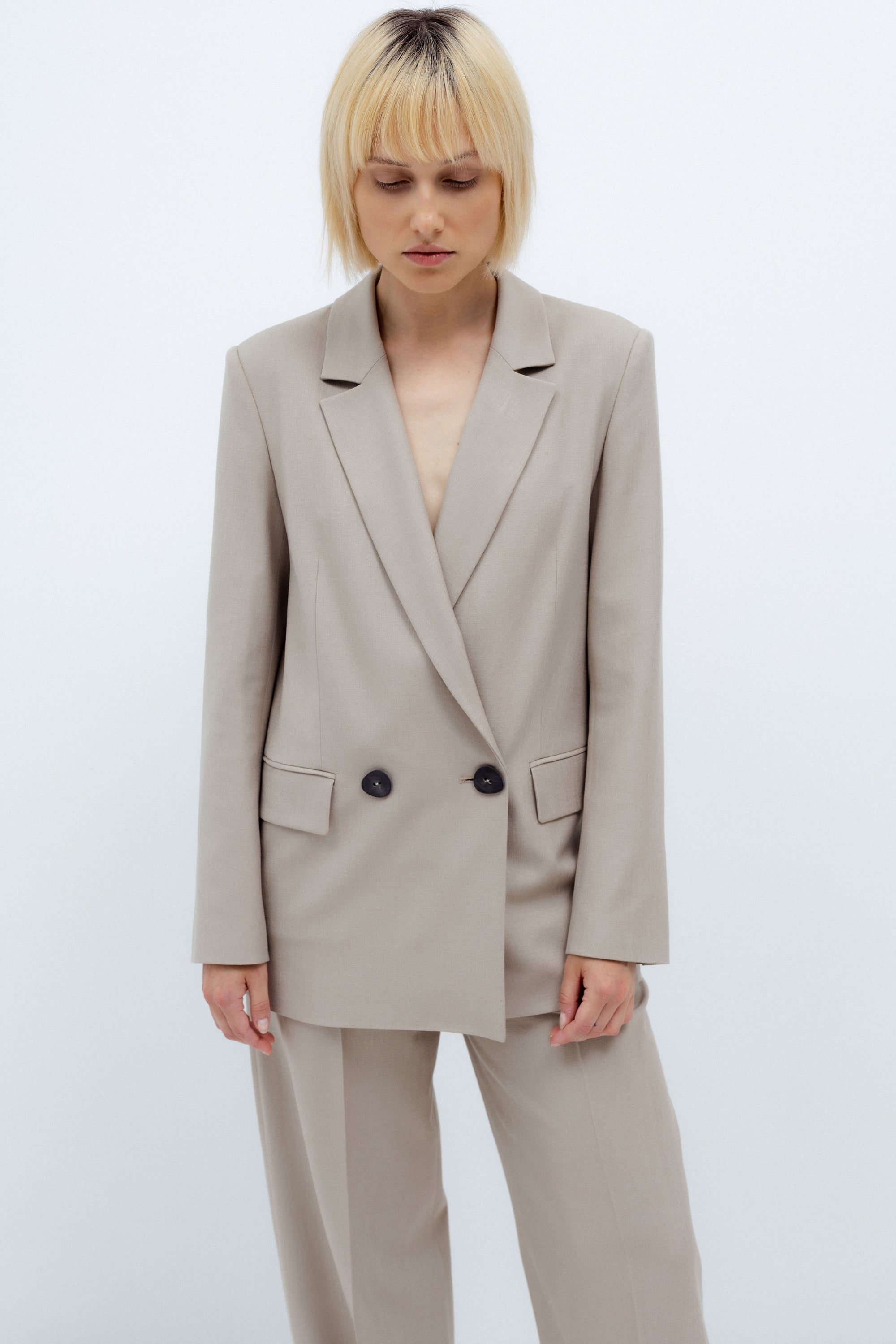 DOUBLE-BREASTED LIGHT TAUPE BLAZER