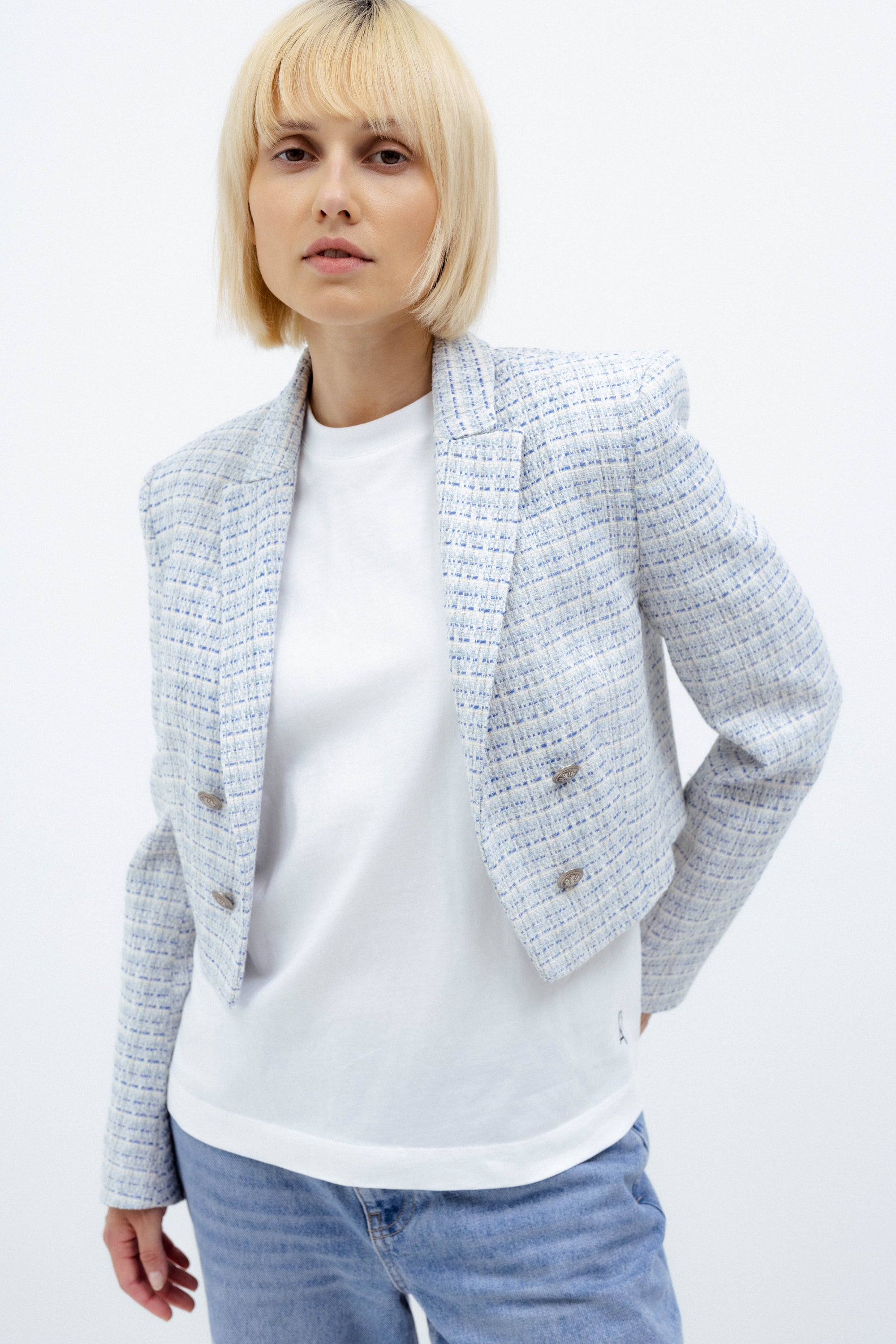 SHORT LIGHT BLUE OPEN-FRONT BLAZER