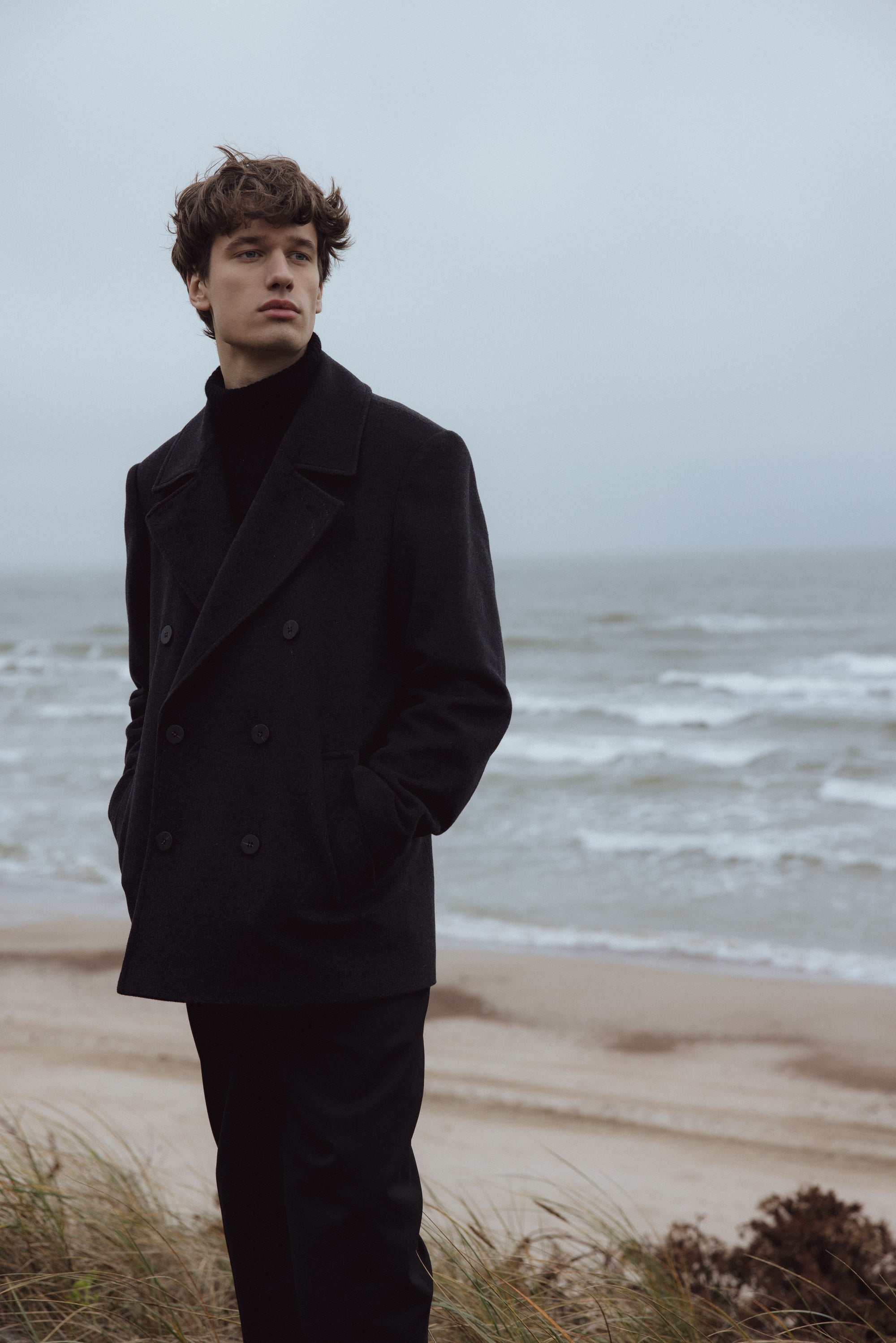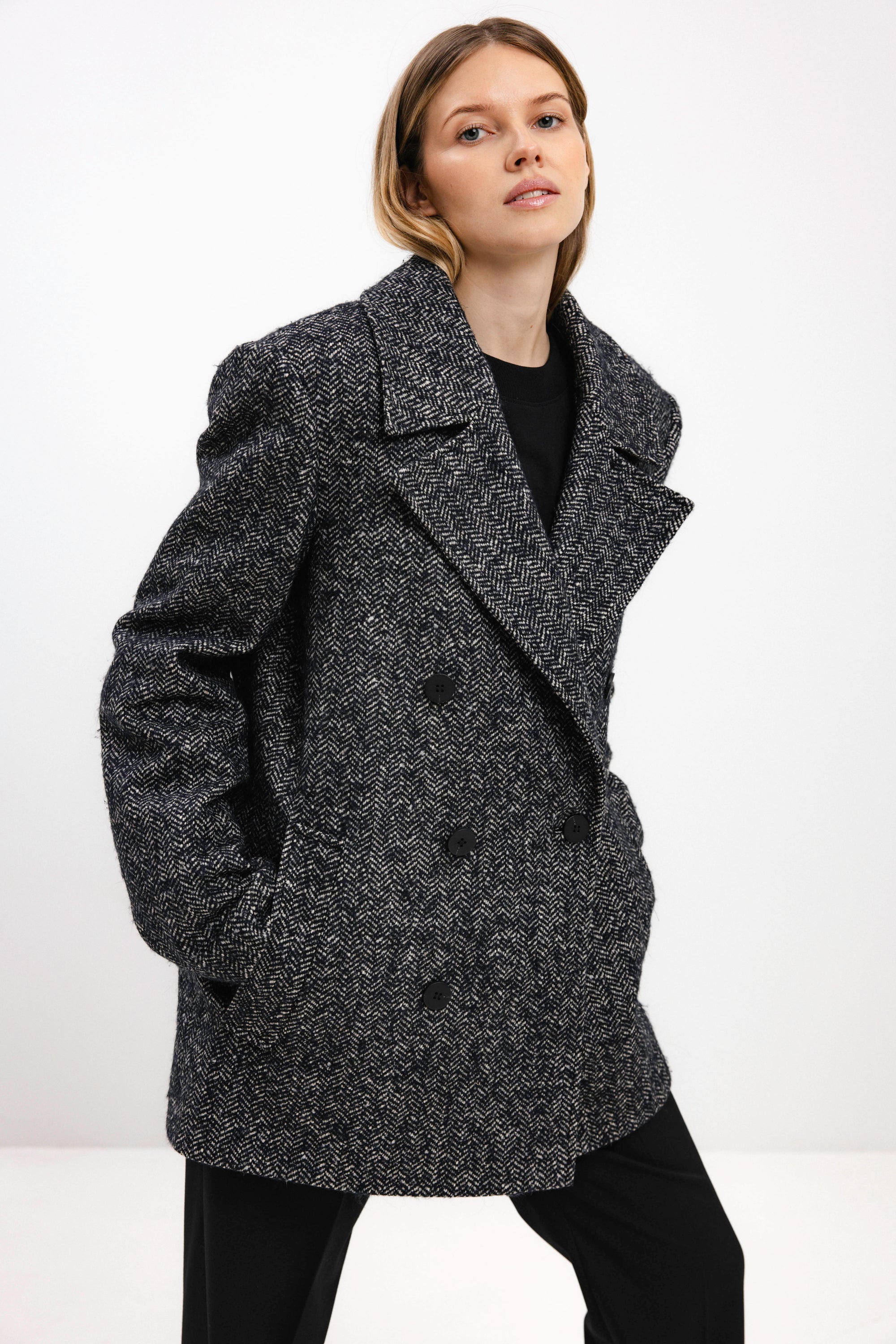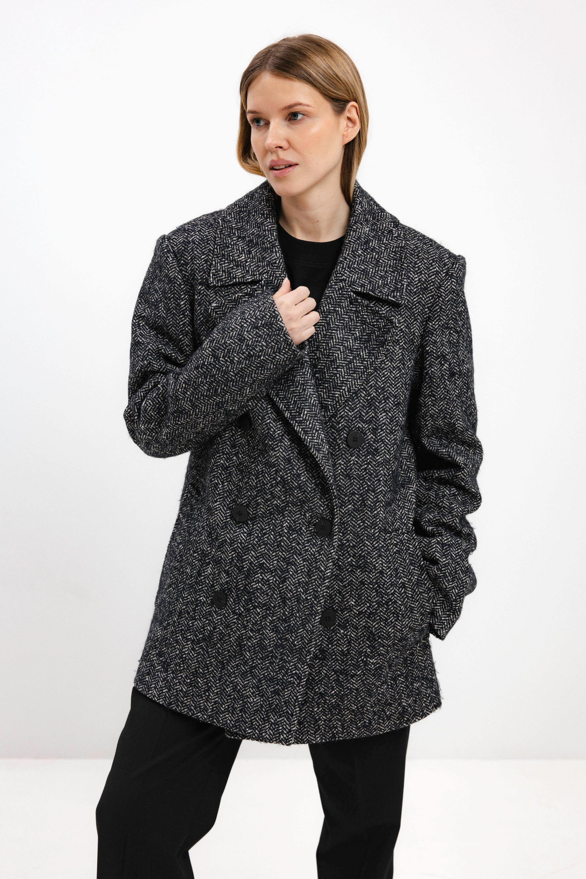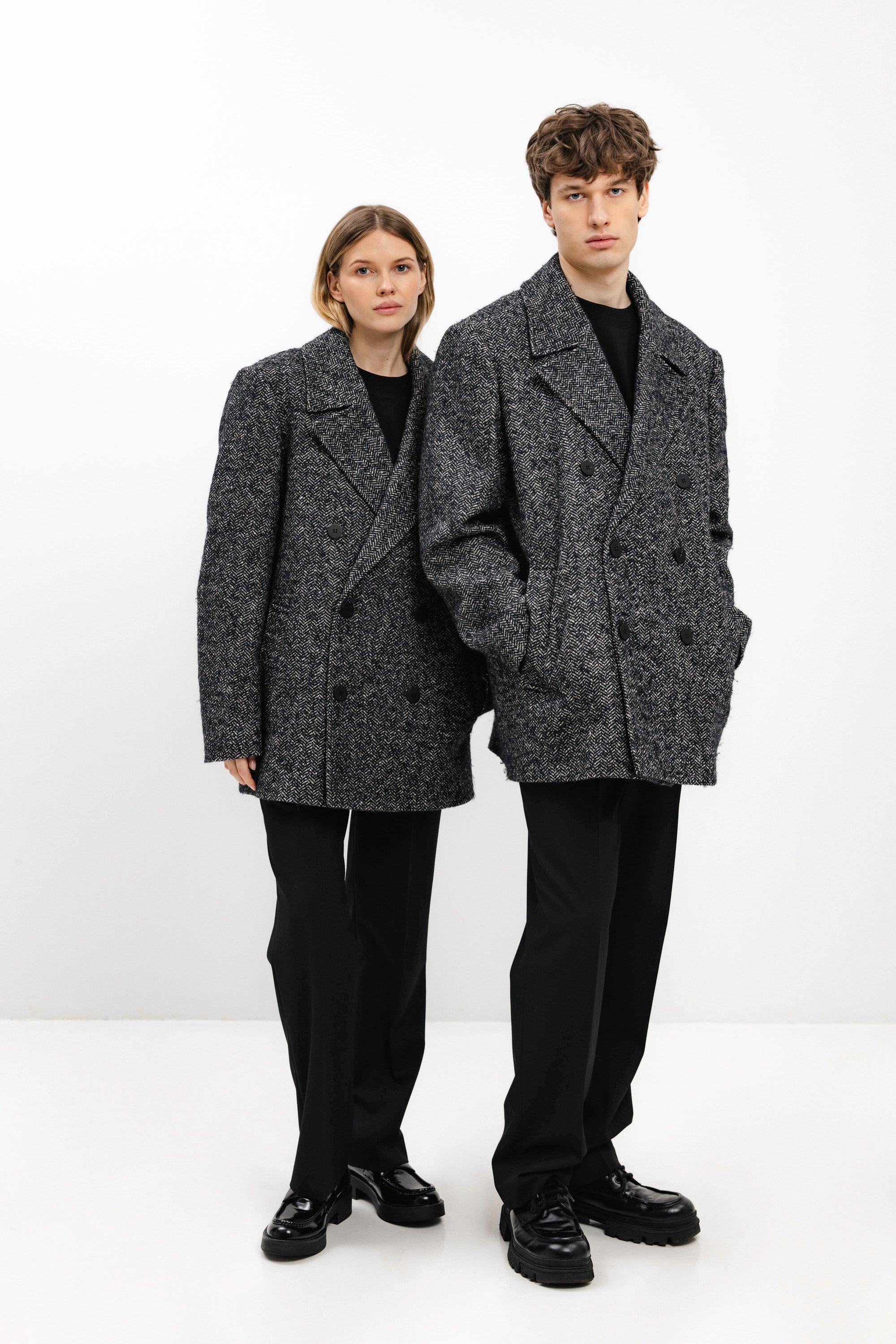 UNISEX DOUBLE-BREASTED WOOL COAT IN HERRINGBONE PATTERN