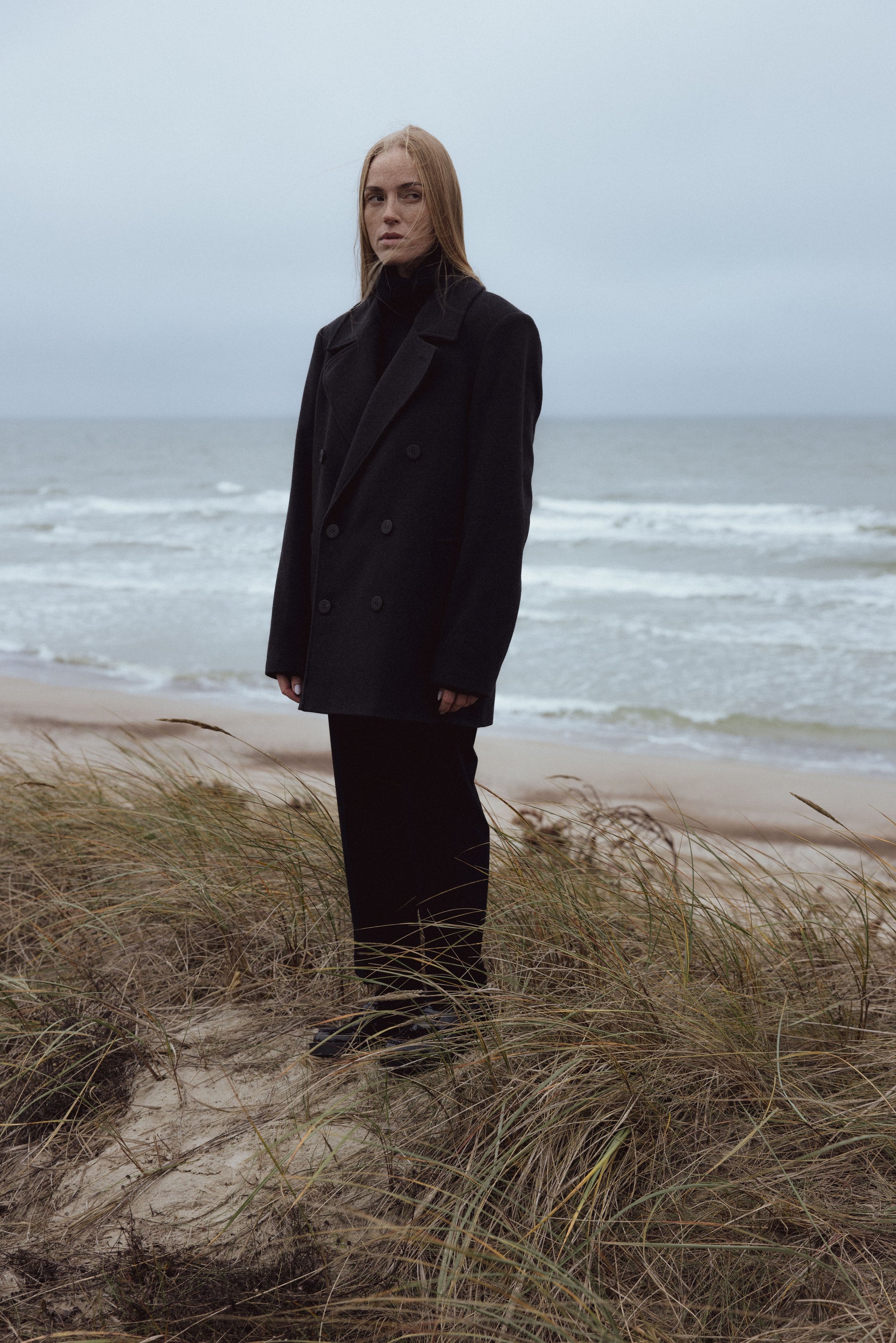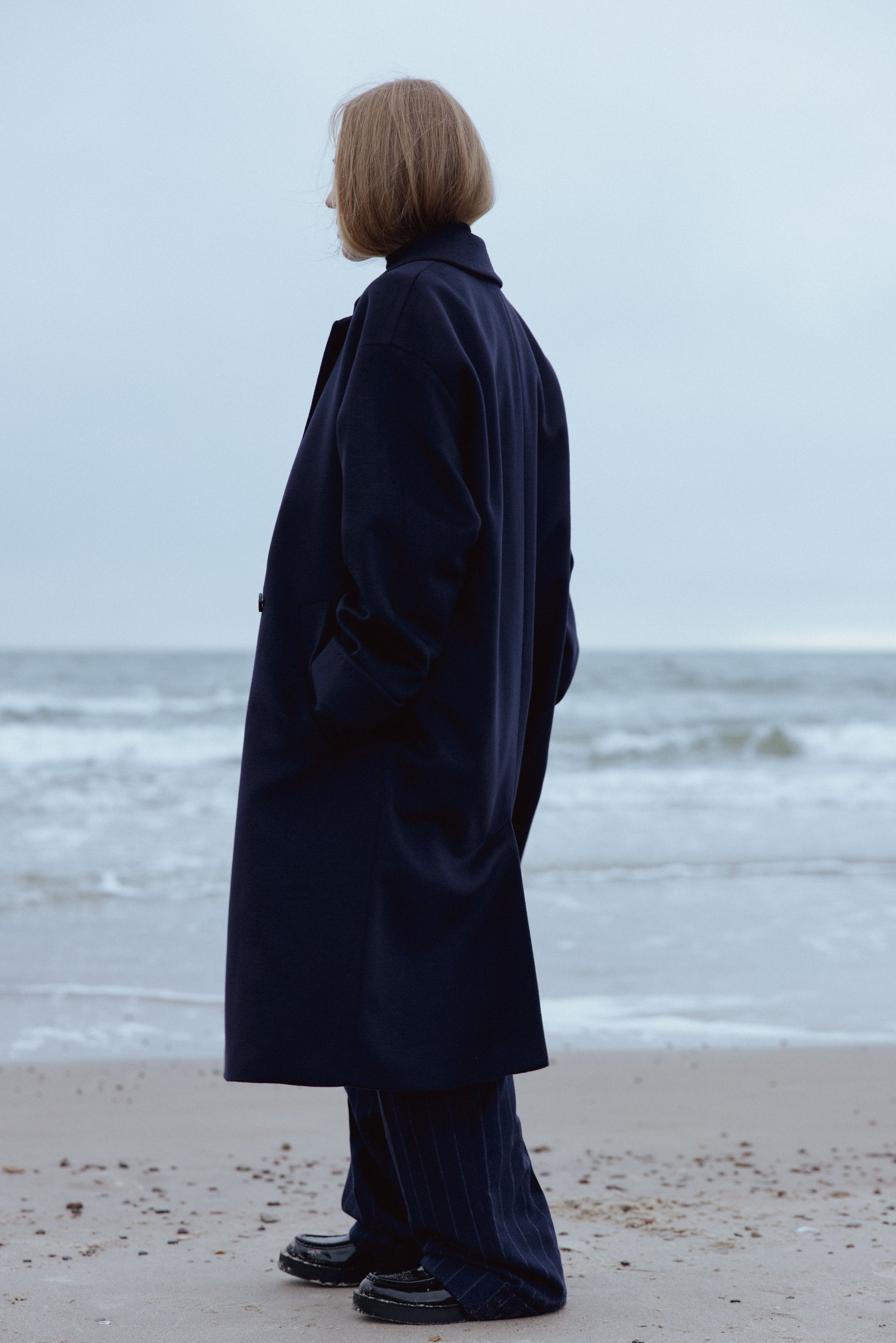 OVERSIZED DOUBLE-BREASTED WOOL COAT IN NAVY