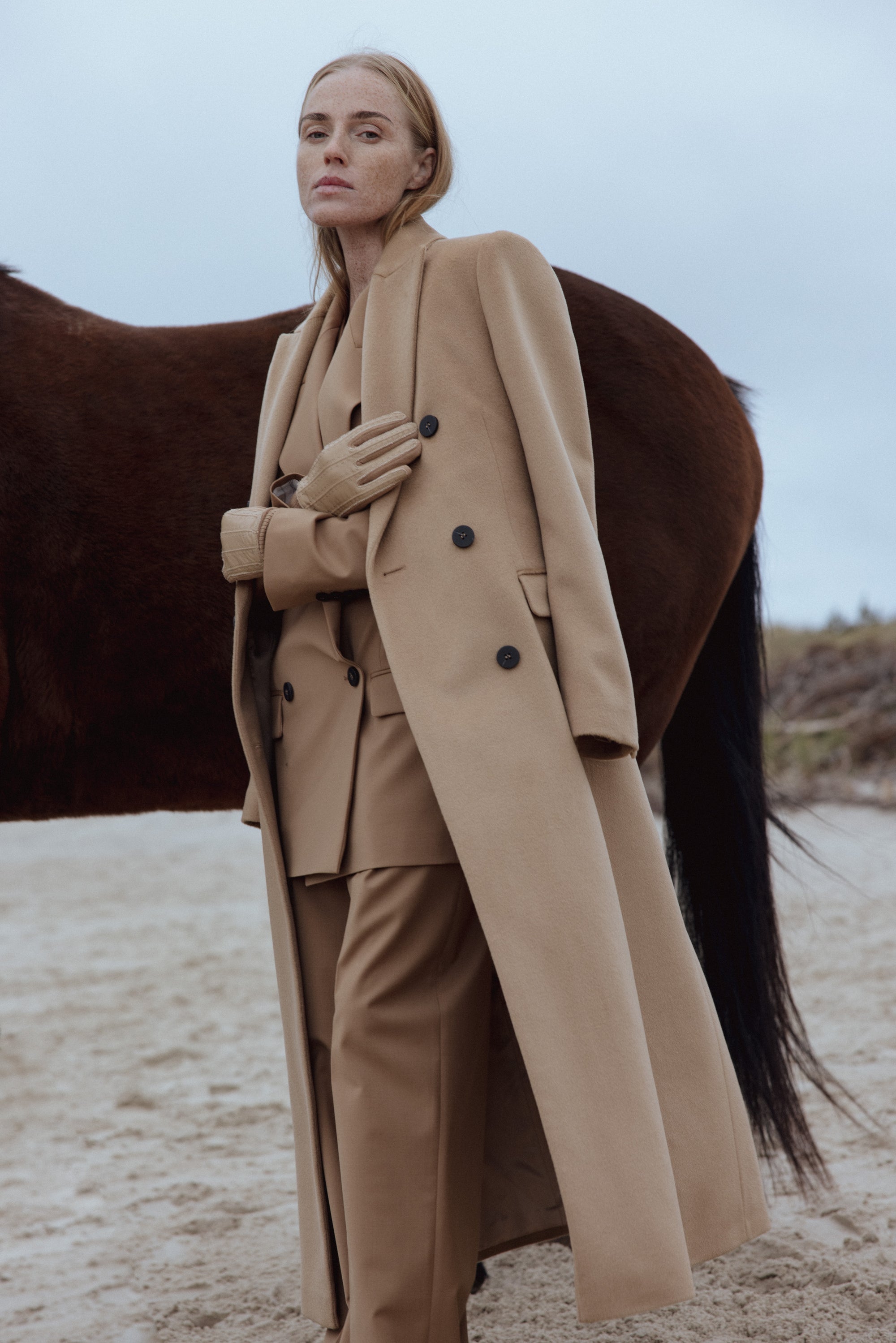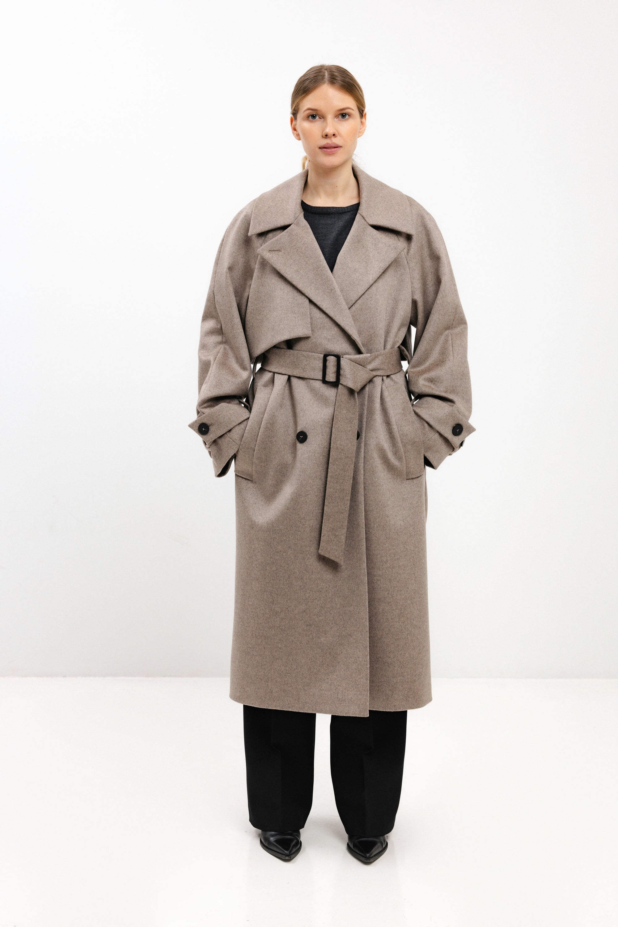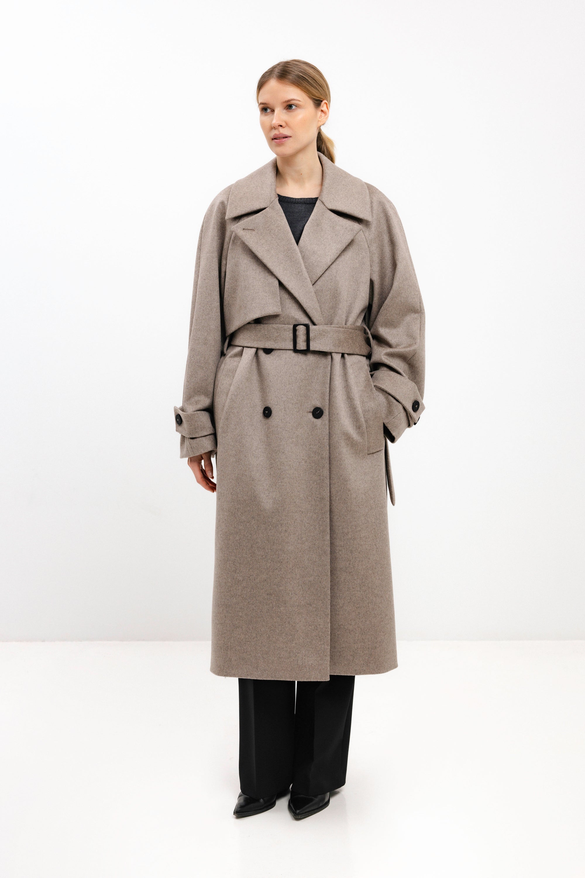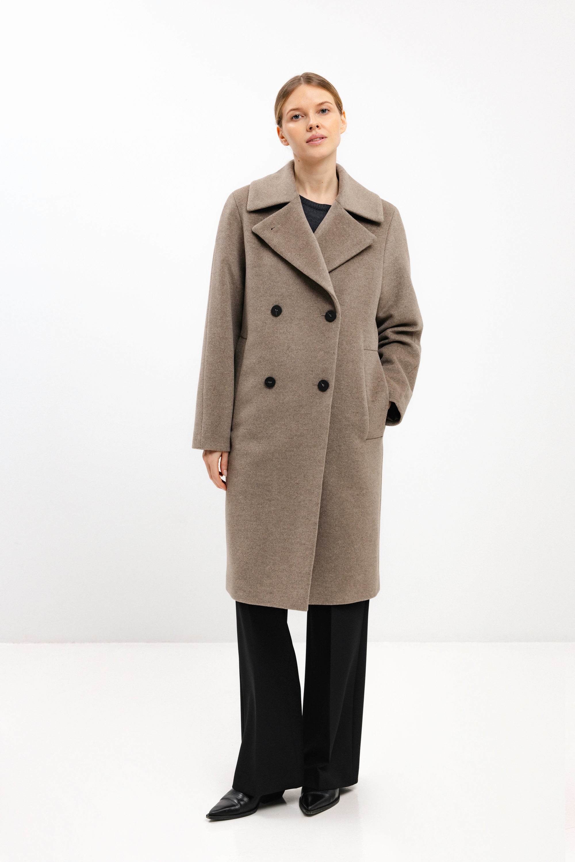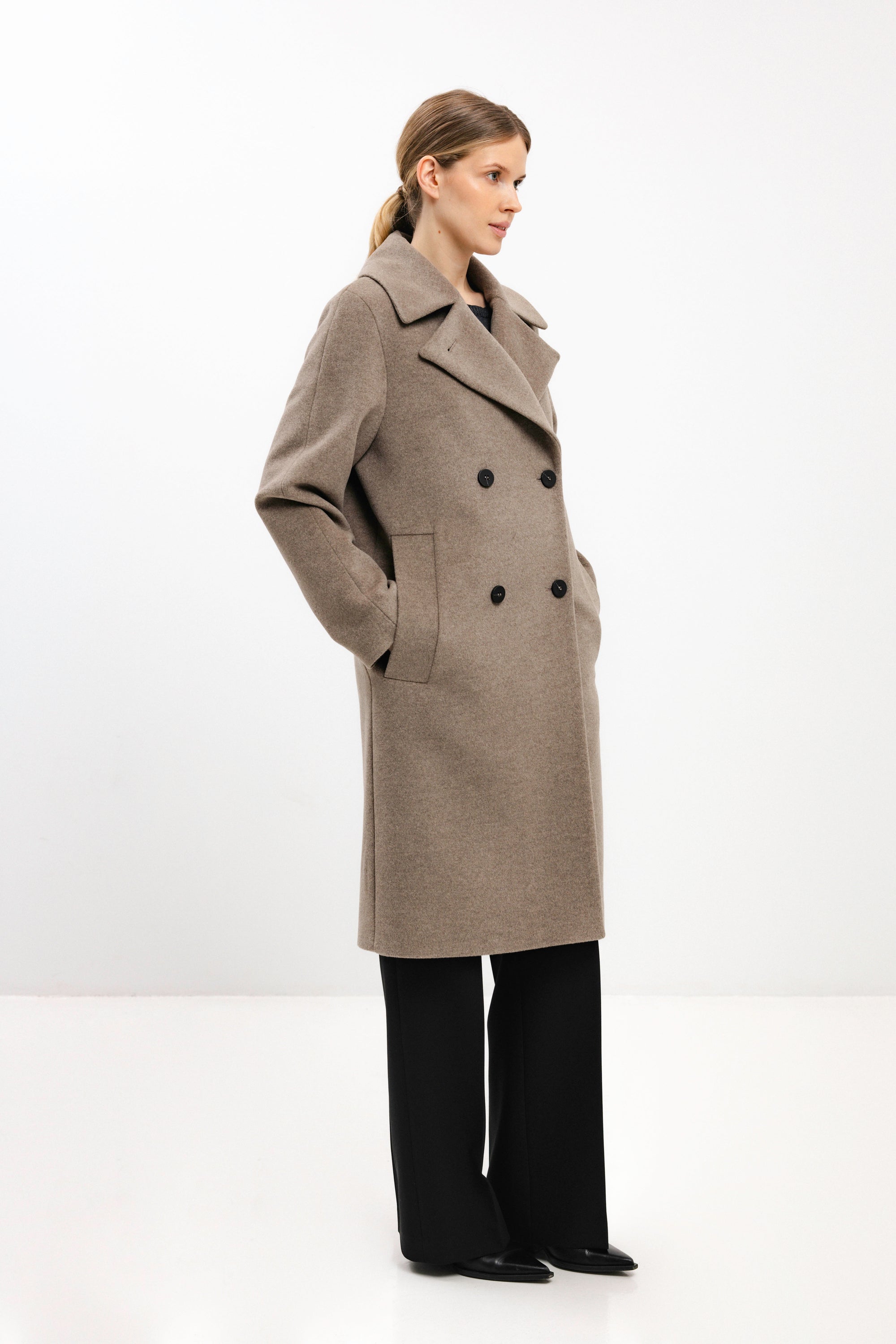 DOUBLE-BREASTED WOOL COAT IN BEIGE