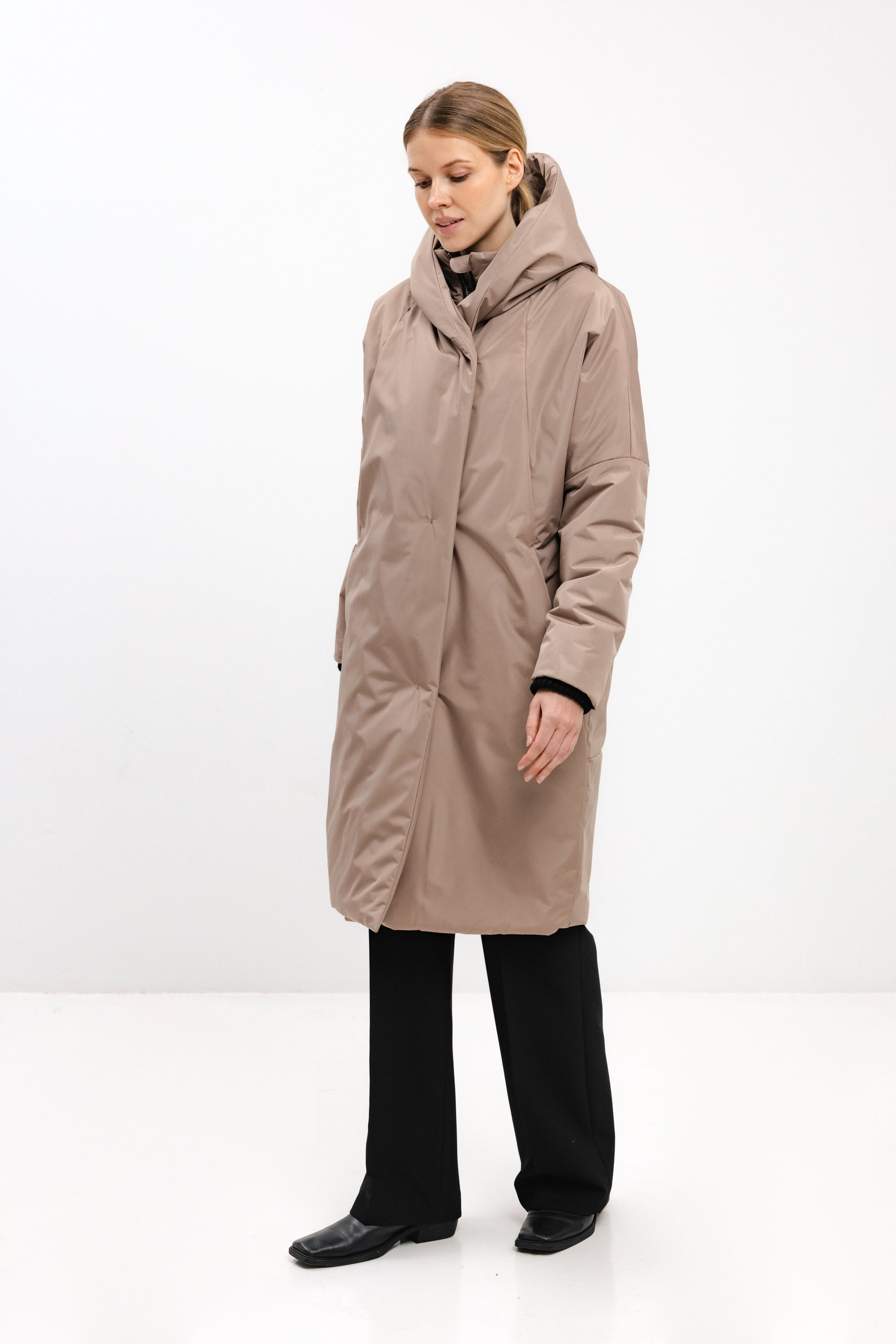STRAIGHT GREENISH BROWN COAT WITH ANGORA