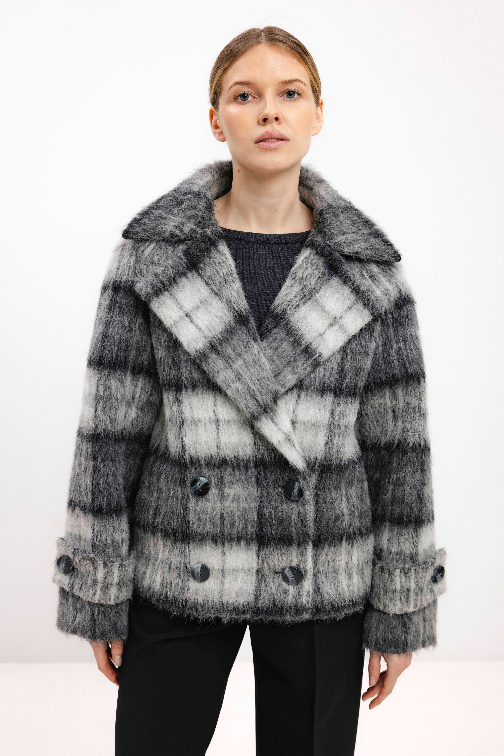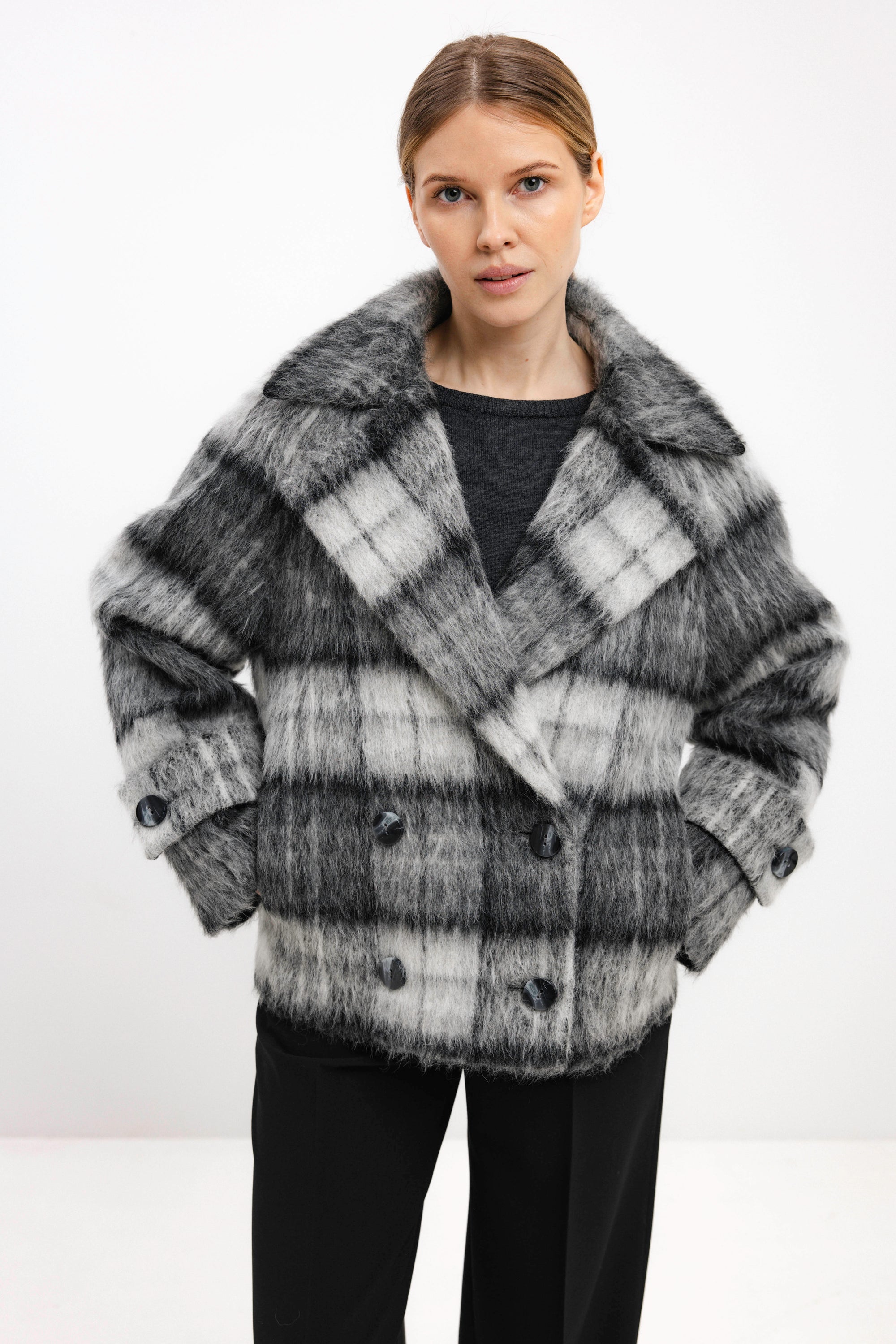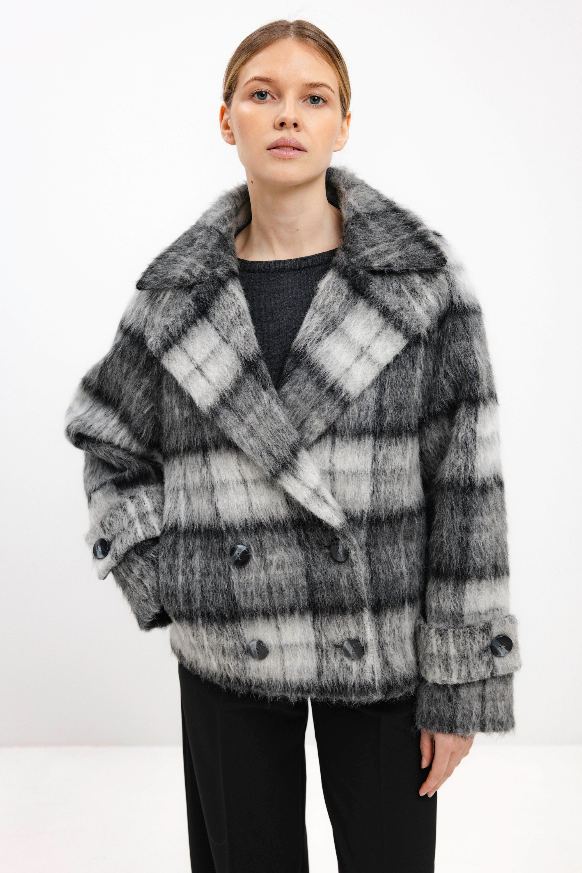 DOUBLE-BREASTED SHORT WOOL COAT IN BLACK