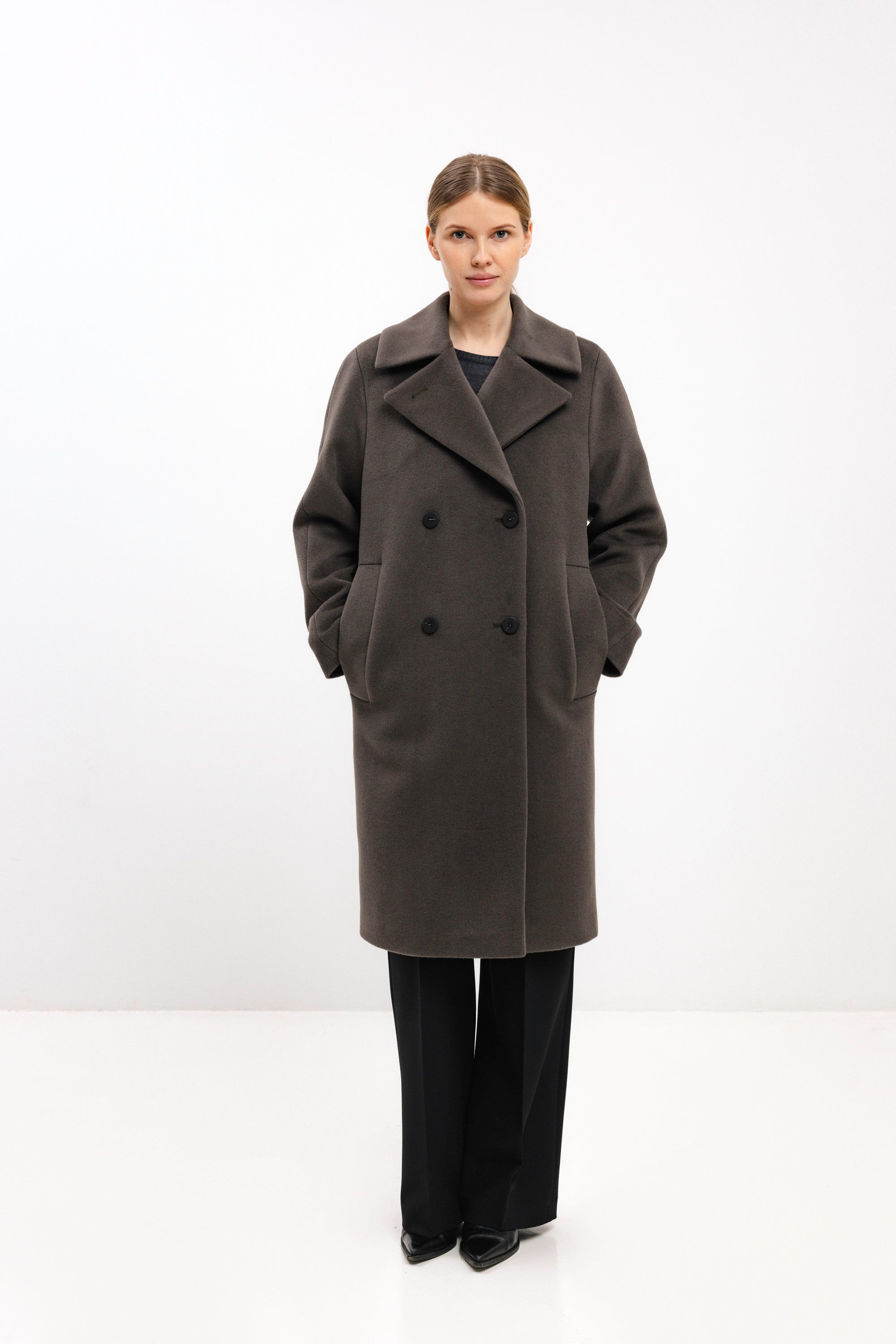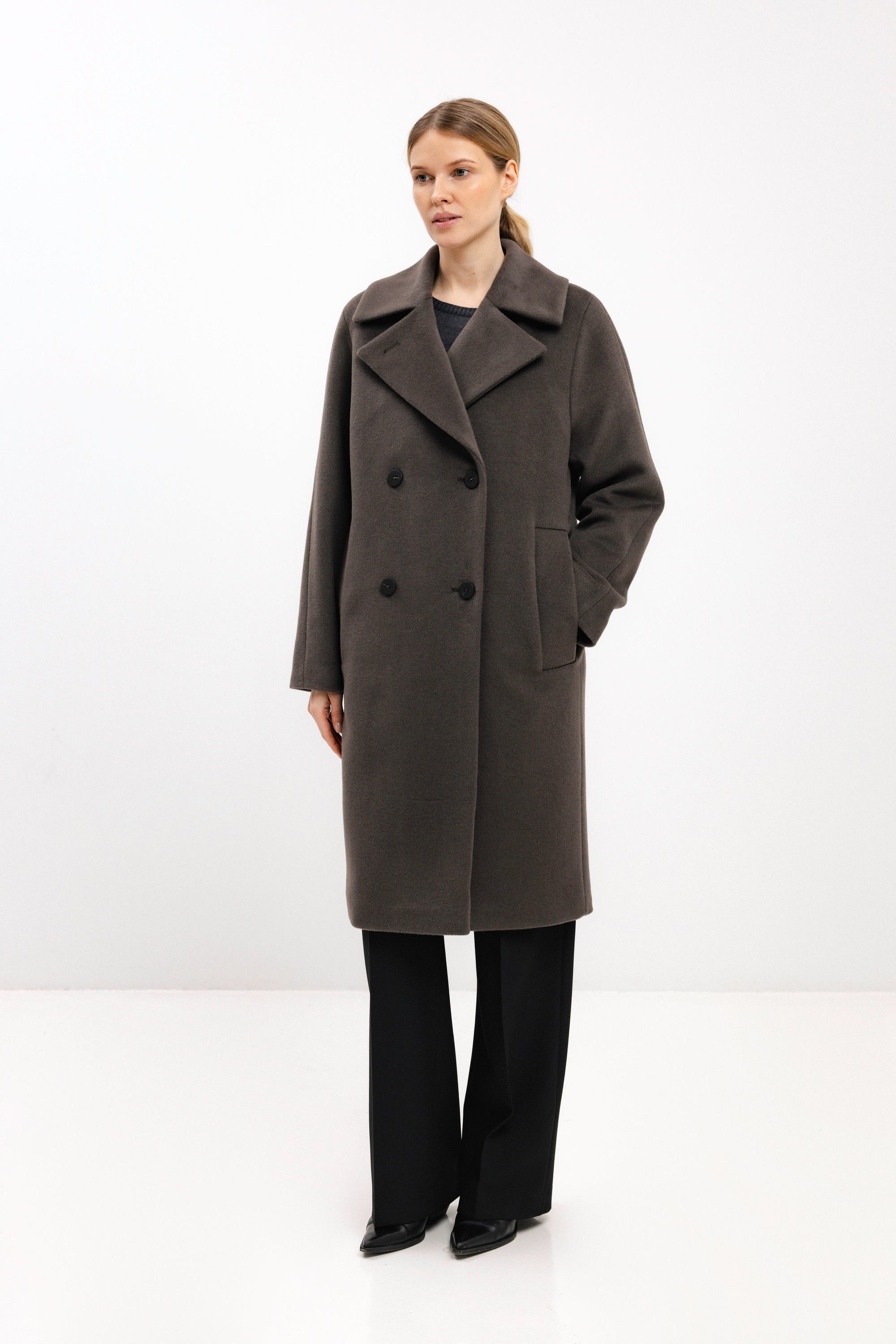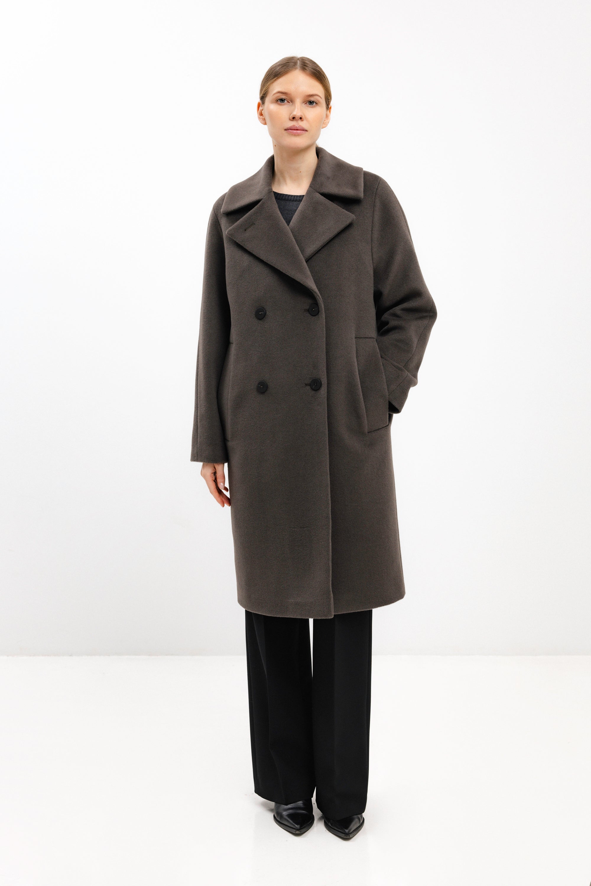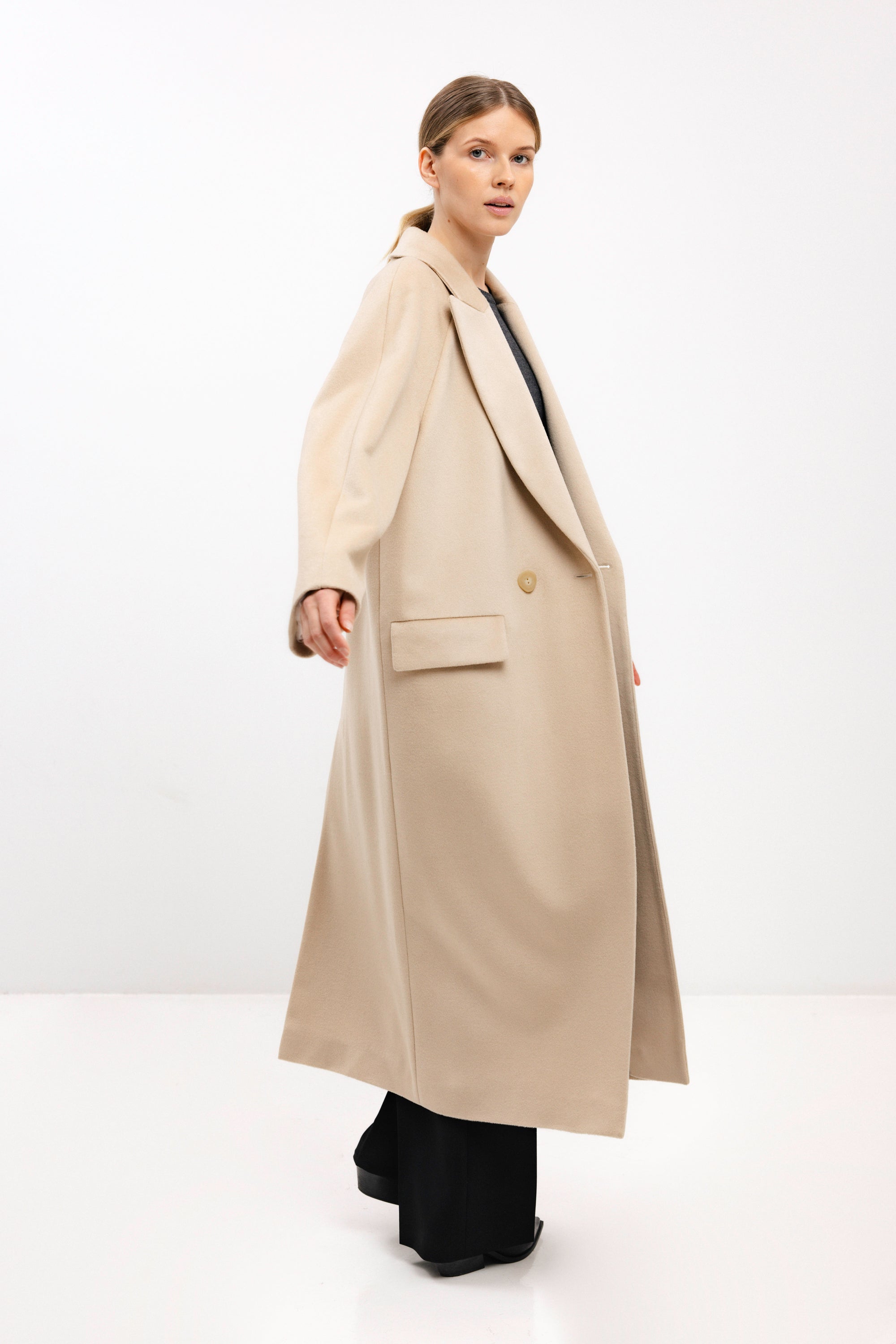 LONG DOUBLE-BREASTED WOOL COAT WITH RAGLAN SLEEVES