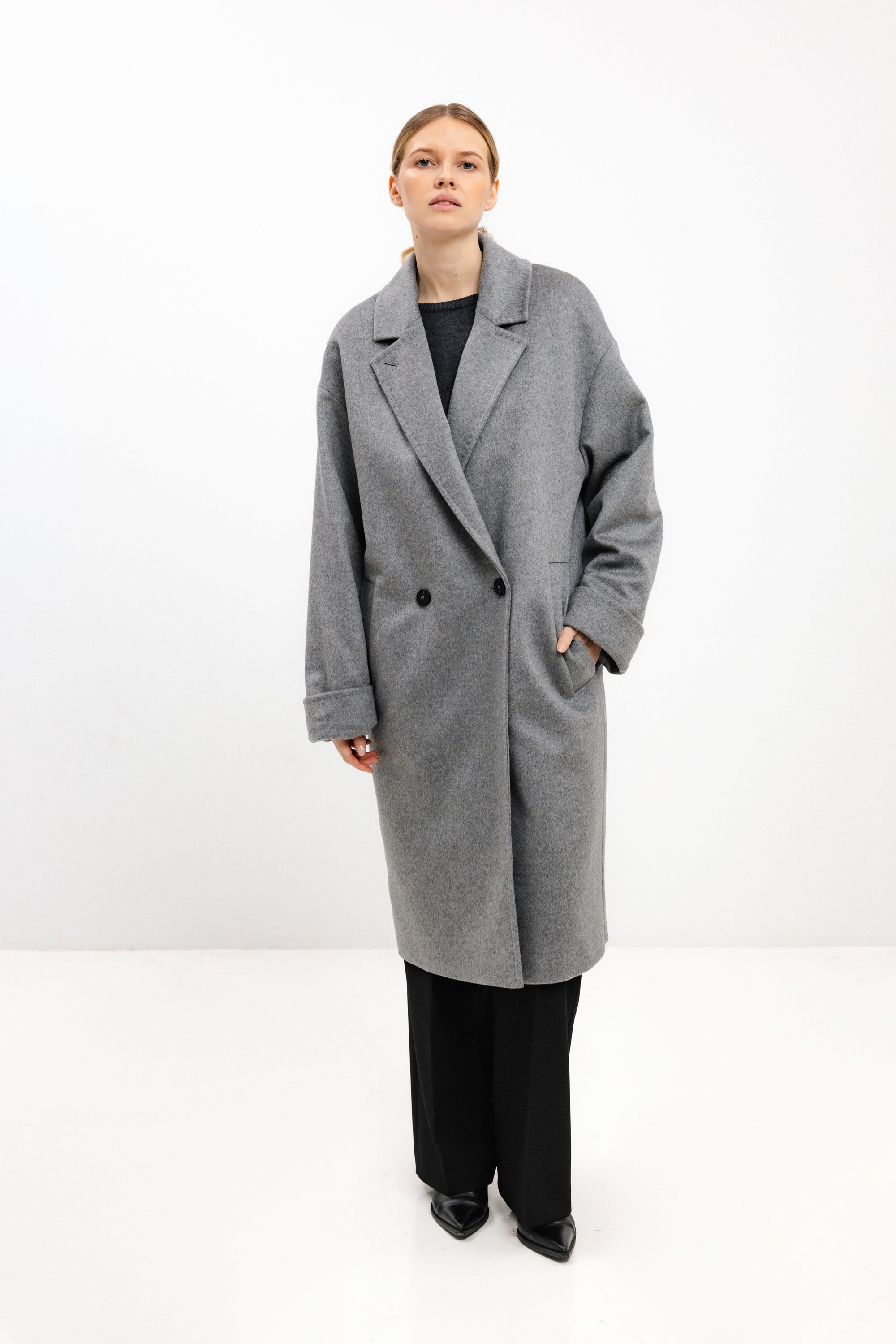 OVERSIZED DOUBLE-BREASTED WOOL COAT IN GREY