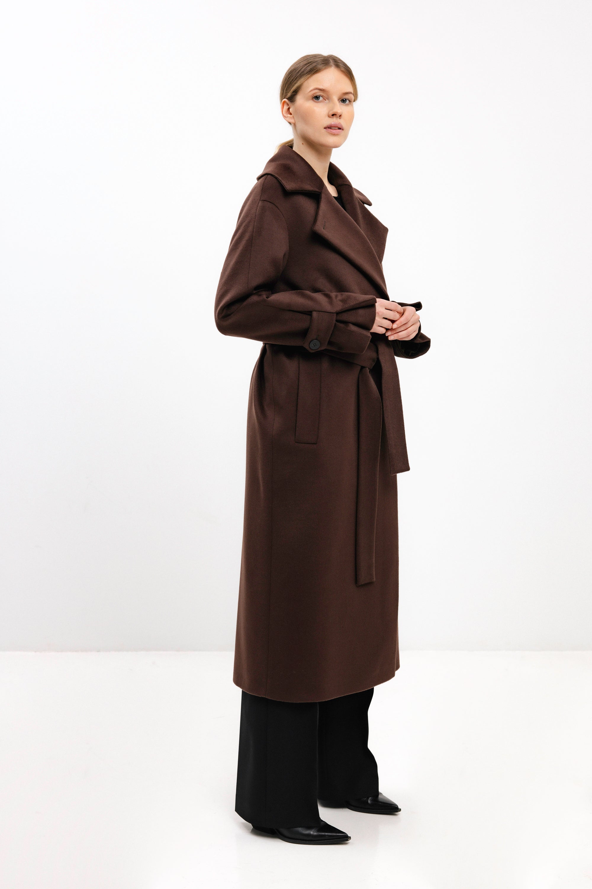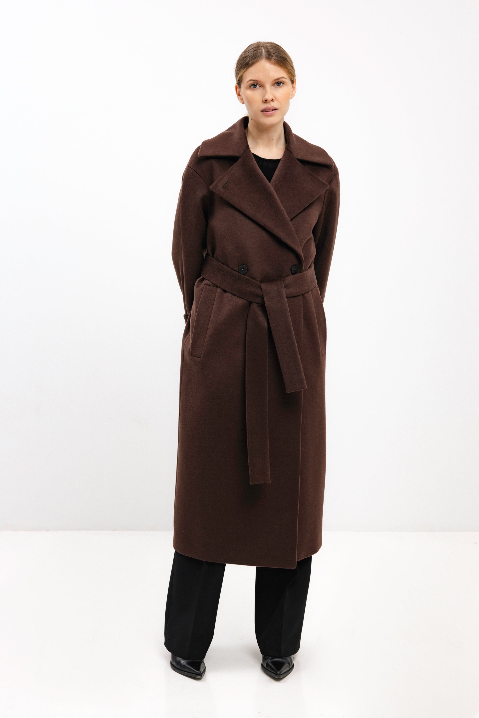 DOUBLE-BREASTED WOOL COAT IN CHOCOLATE BROWN