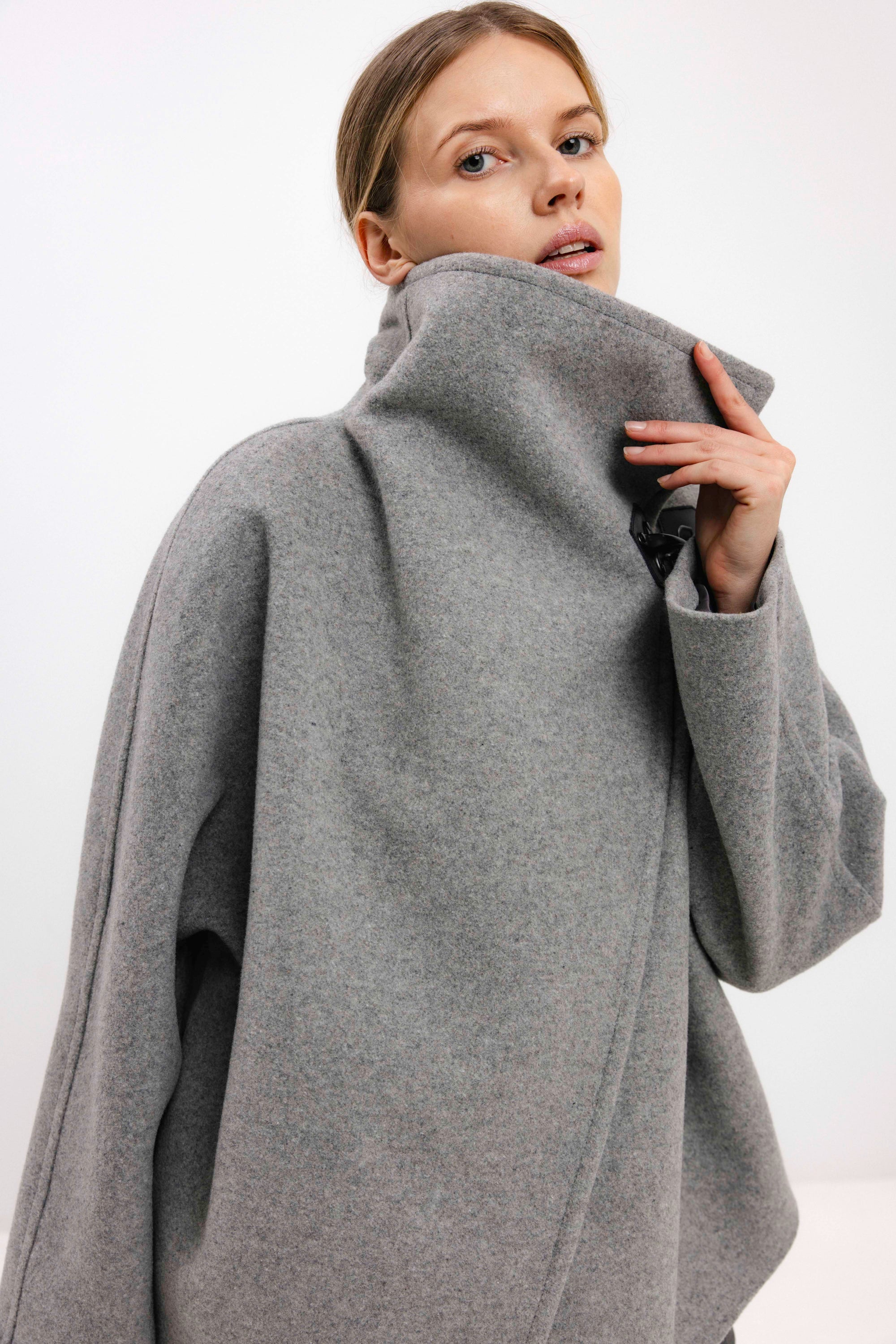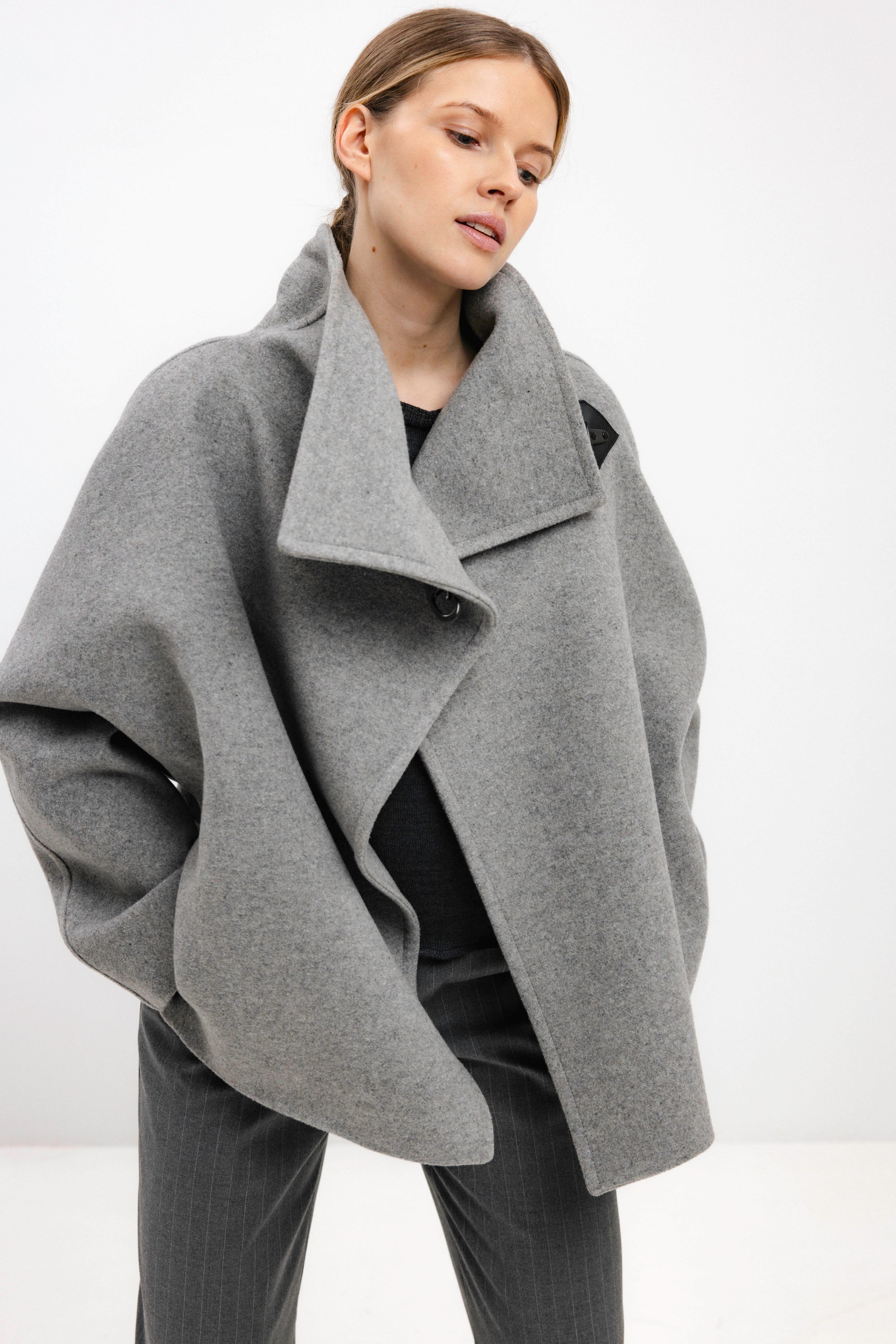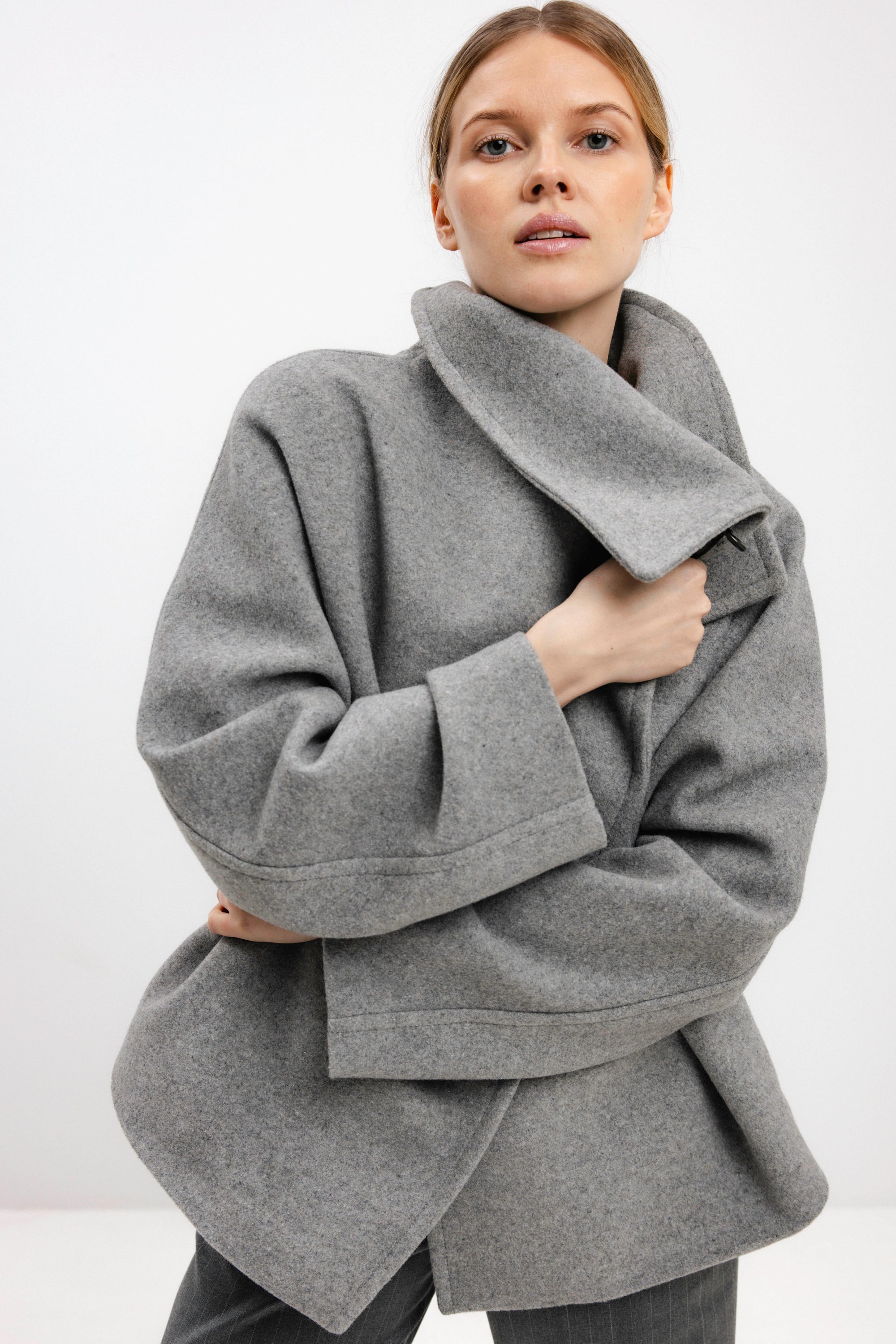 HIGH-COLLAR ASYMMETRIC SHORT COAT