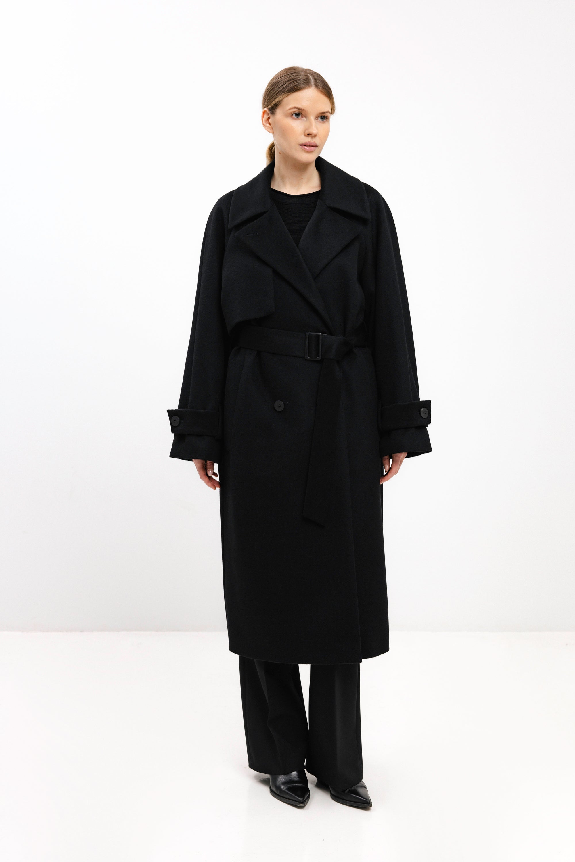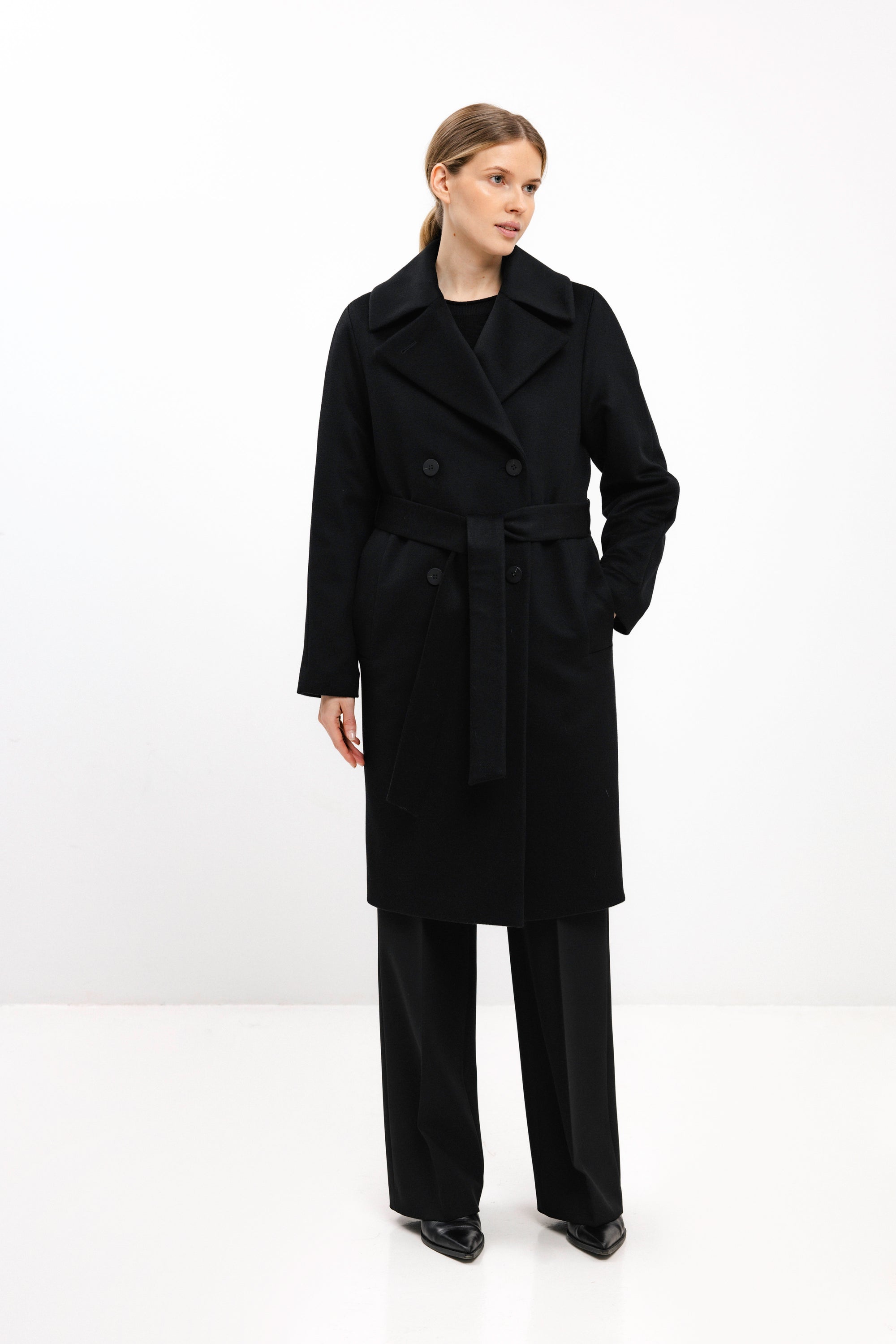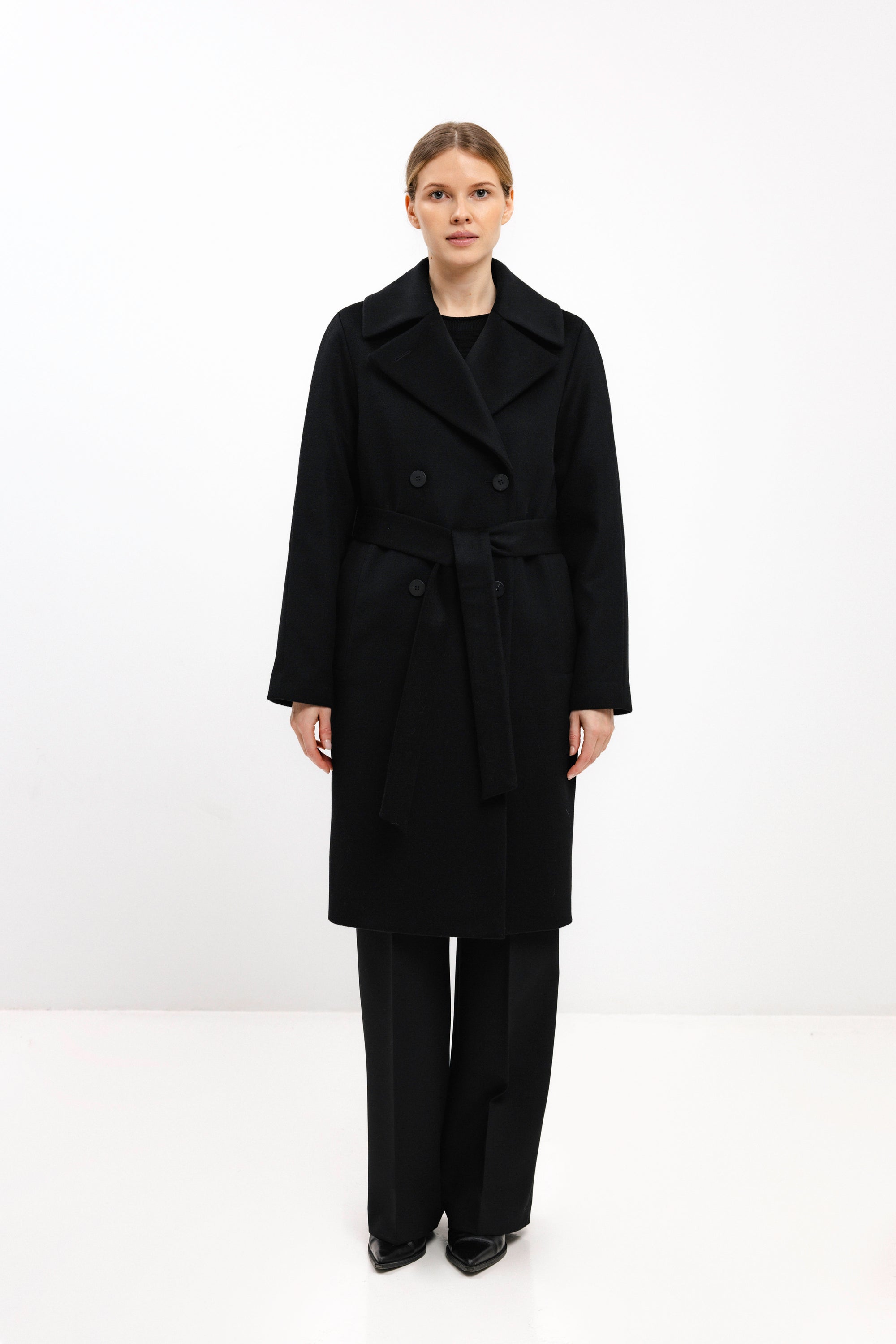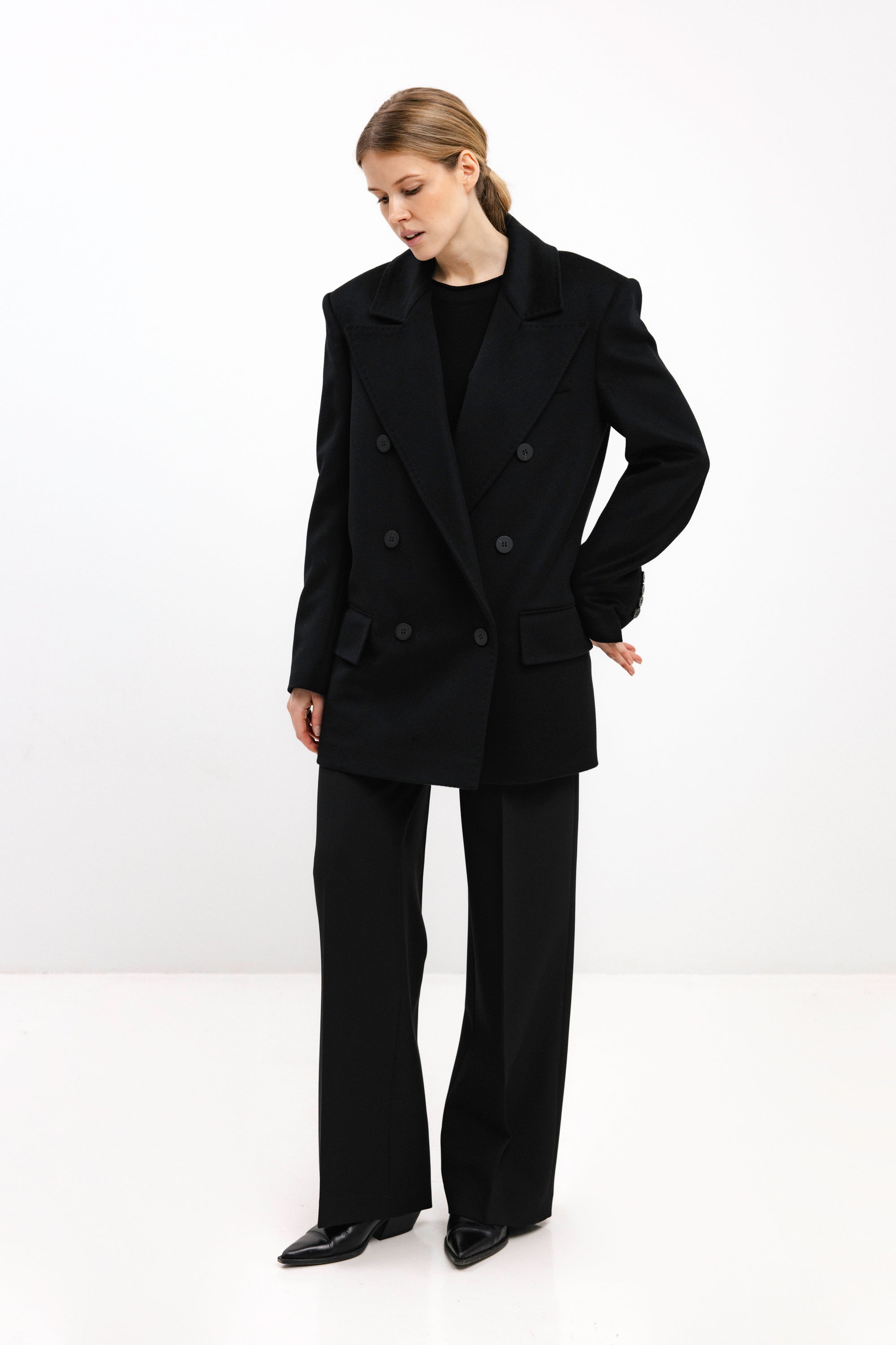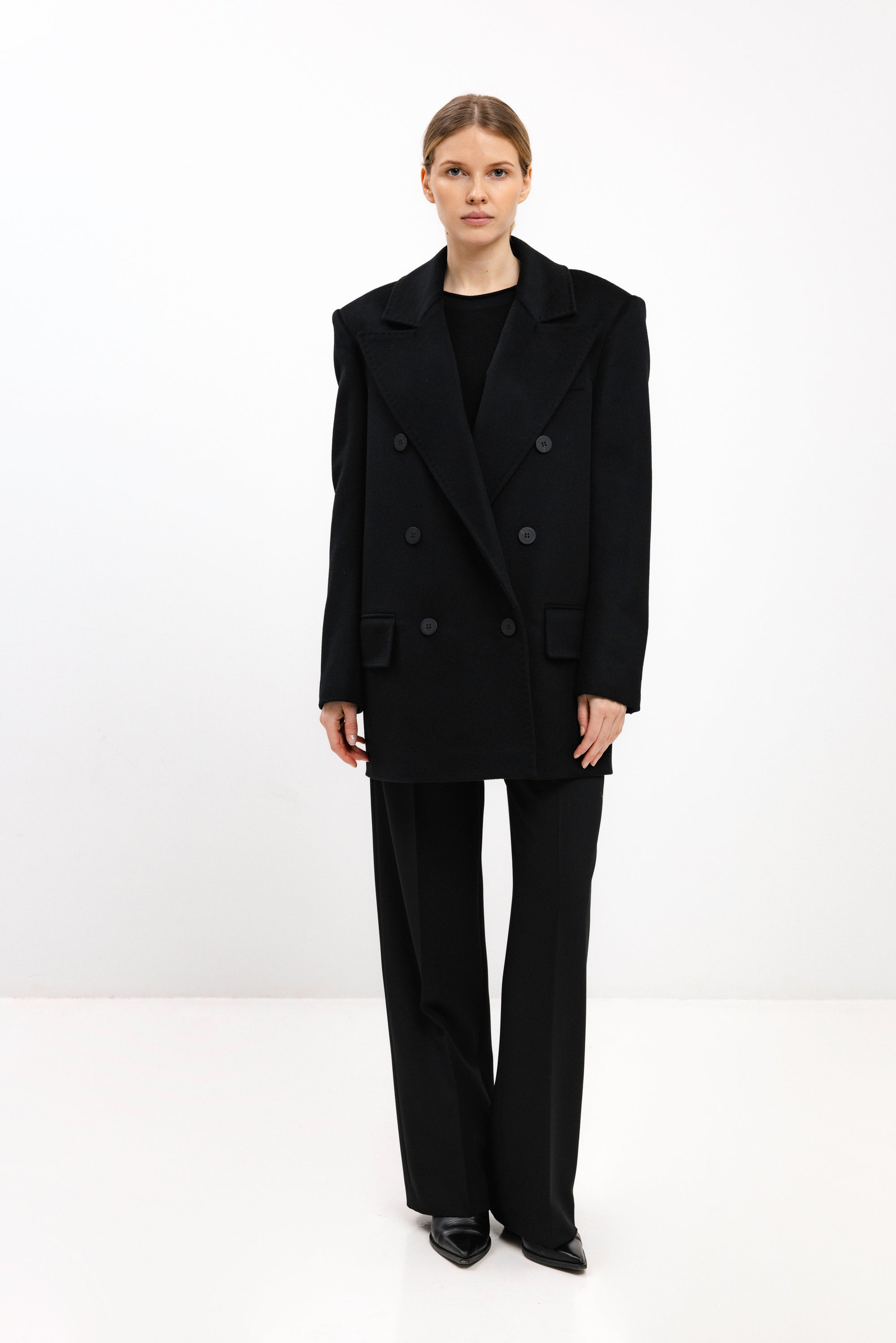 BLACK DOUBLE-FACE WOOL COAT WITH CASHMERE