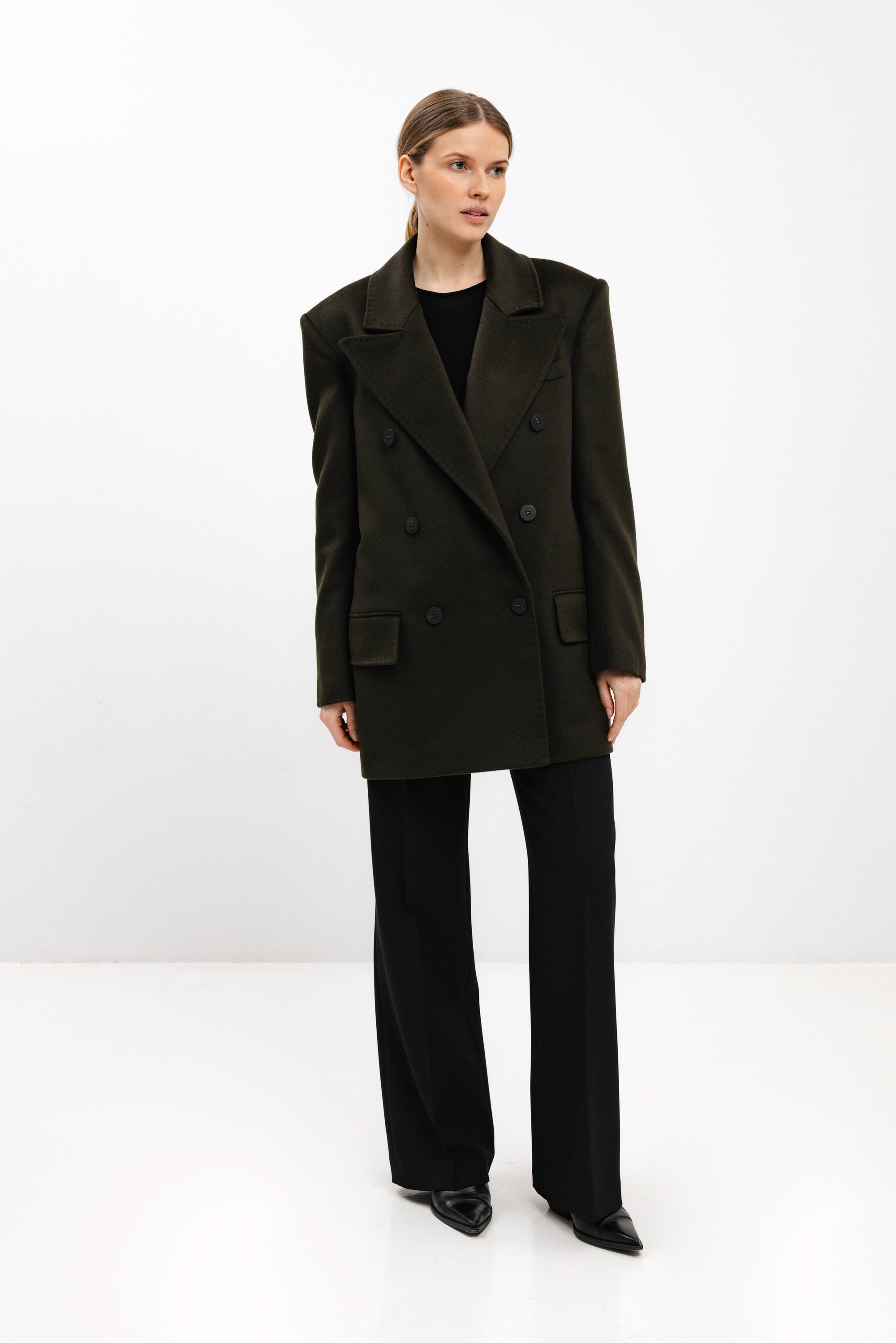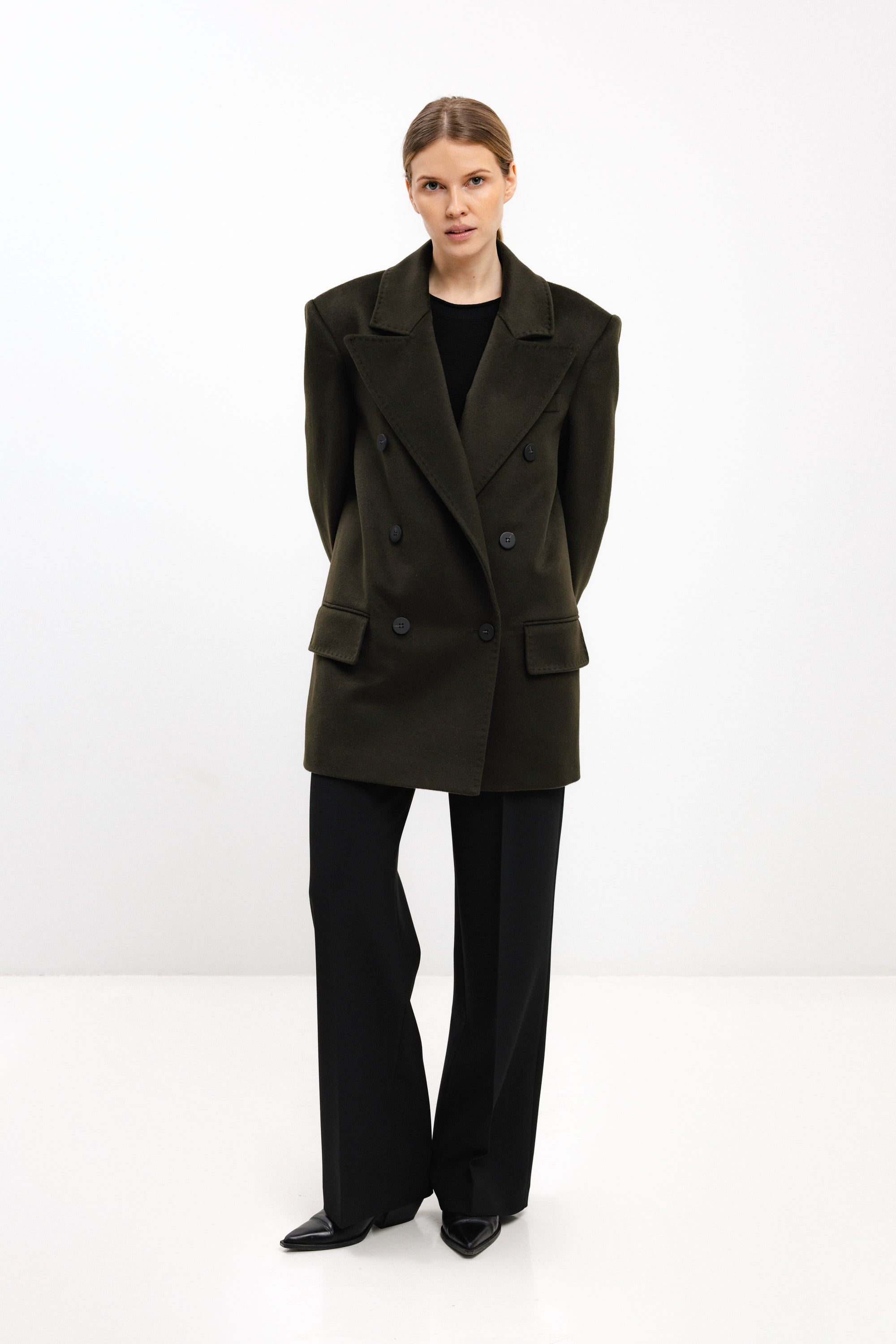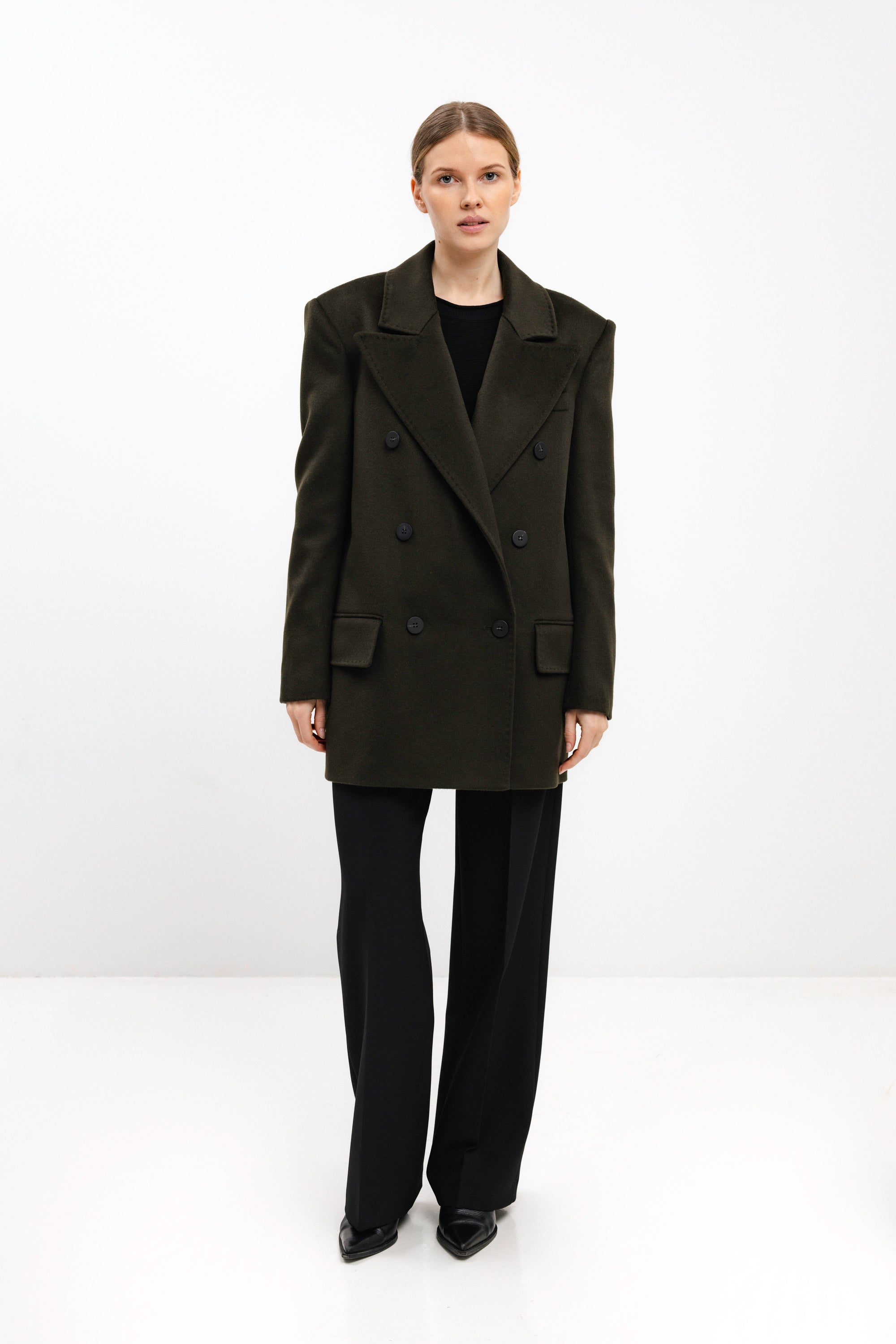 DOUBLE-BREASTED SHORT WOOL COAT IN OLIVE