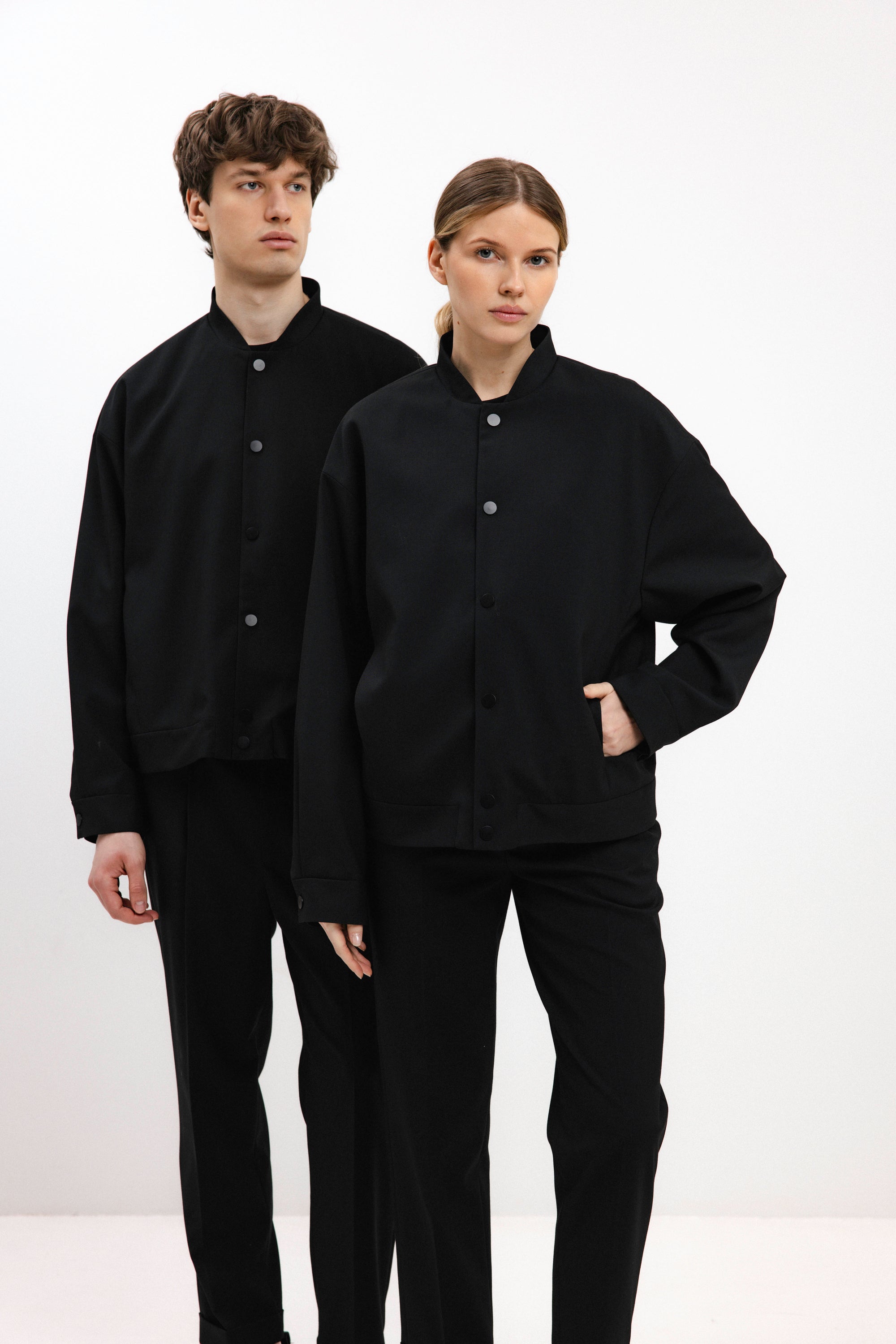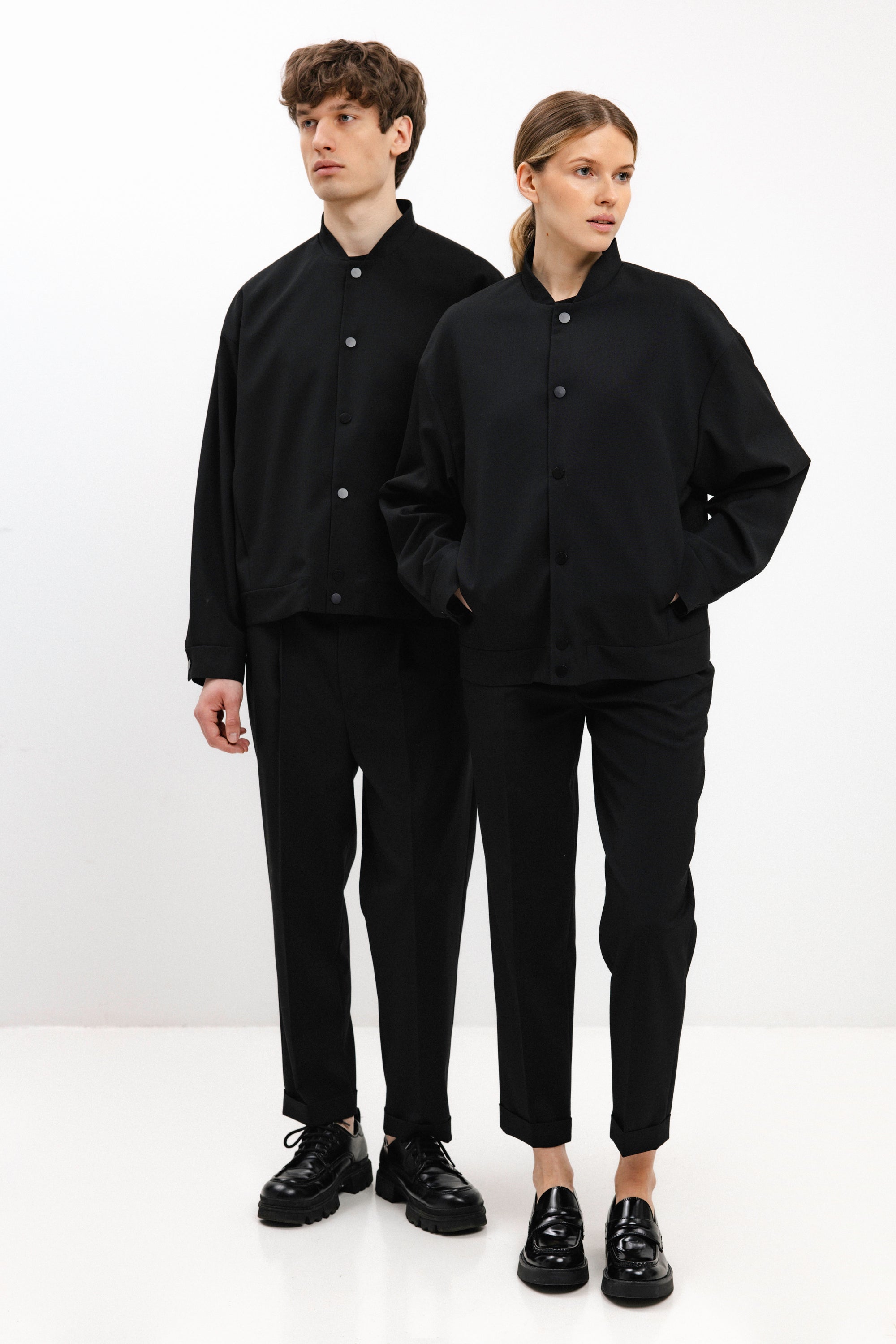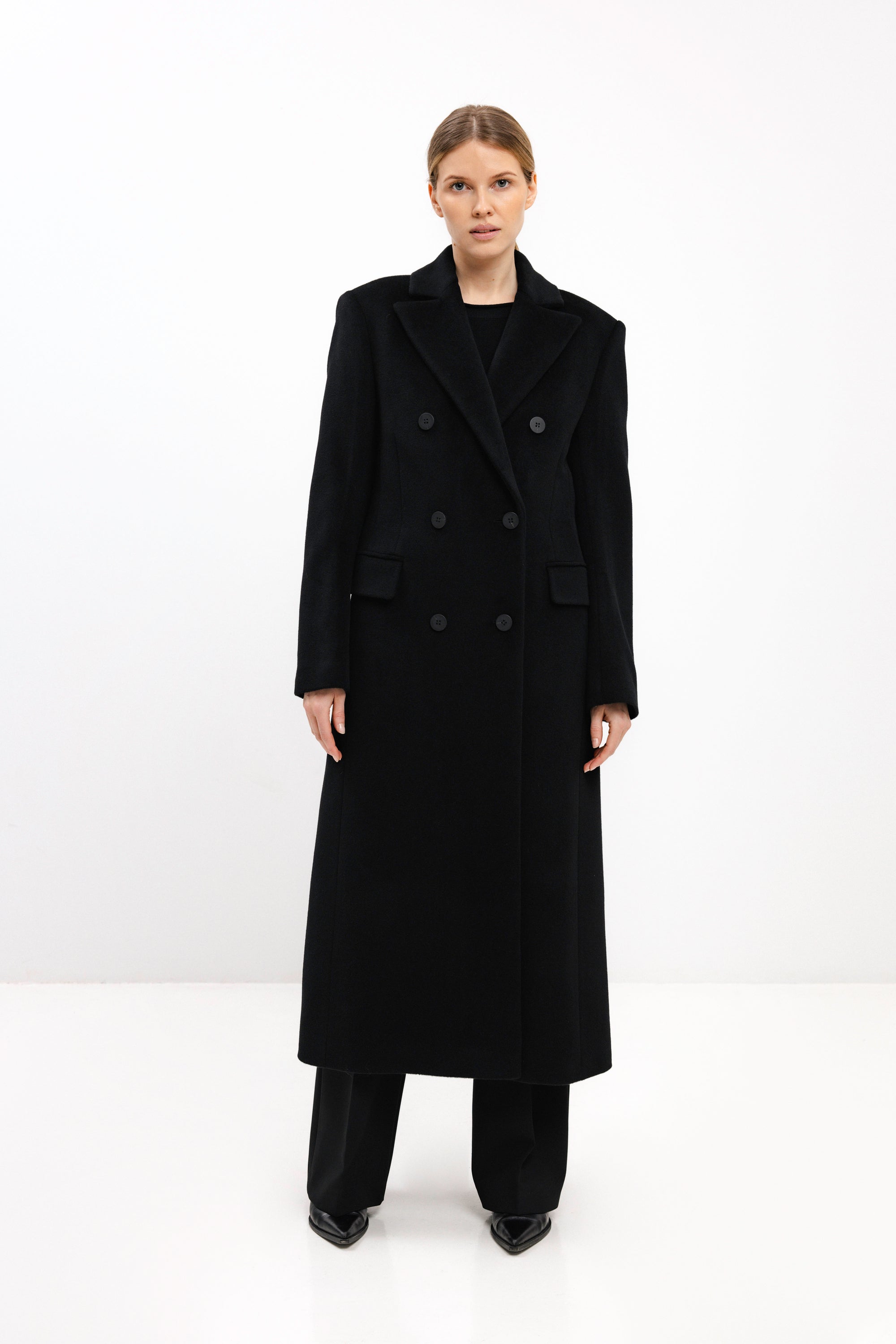 UNISEX LONG BLACK DOUBLE-BREASTED WOOL COAT