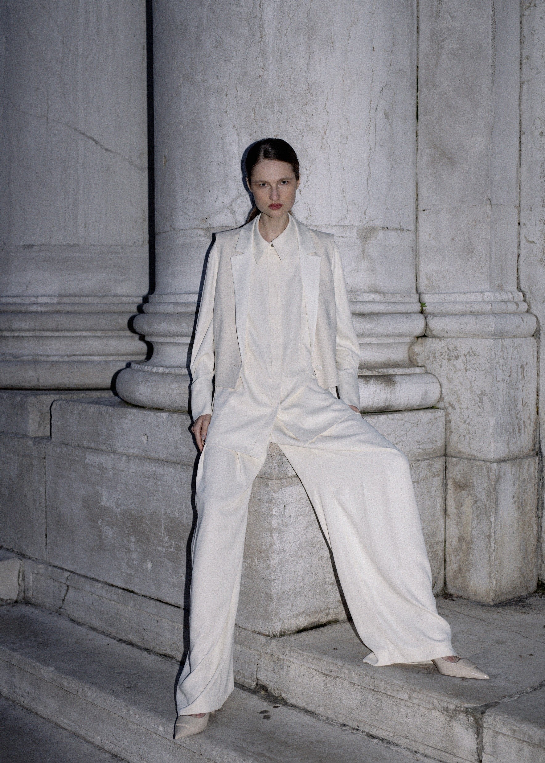 MILK-SHADE BLOUSE WITH ASYMMETRICAL APPLIQUE