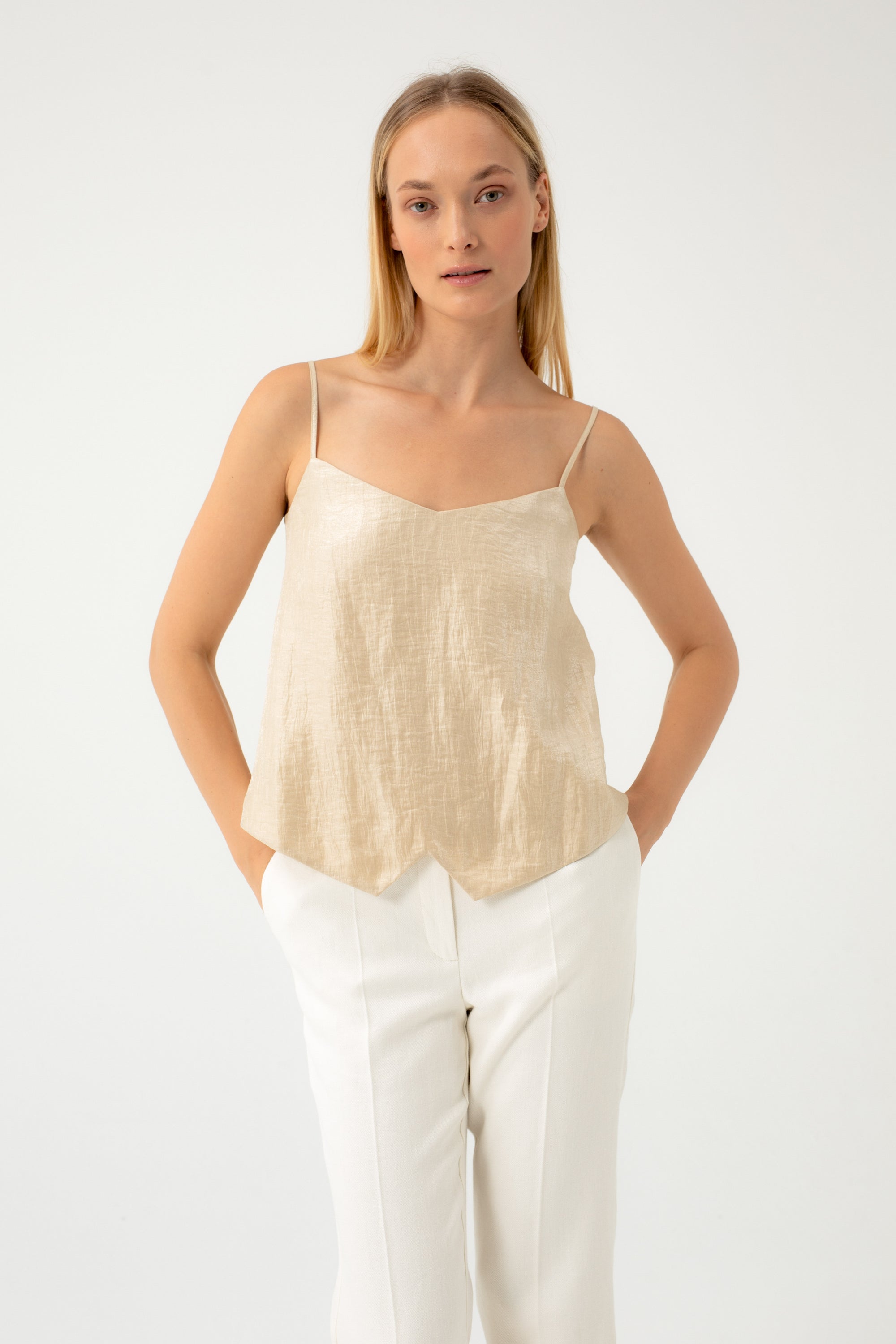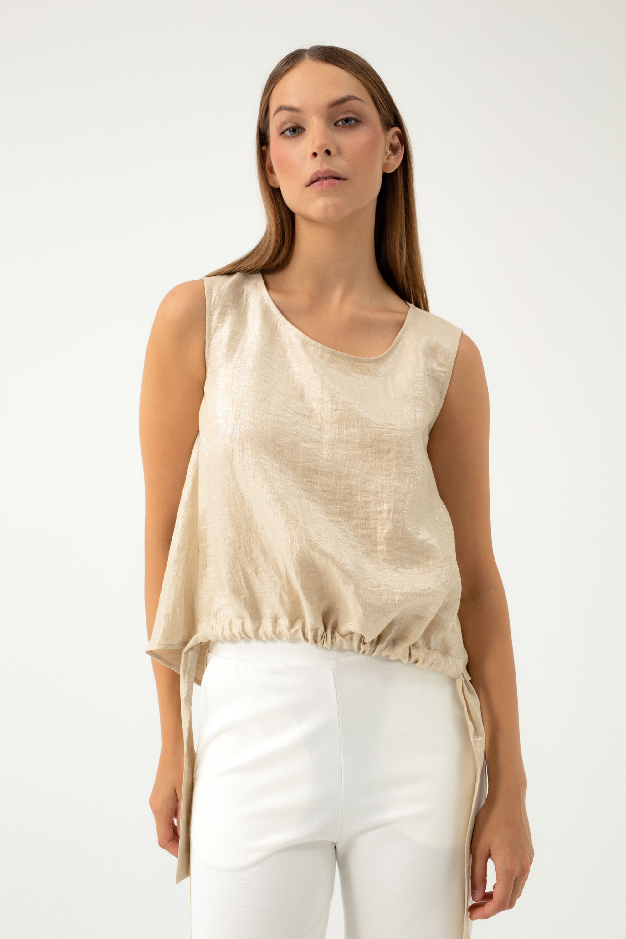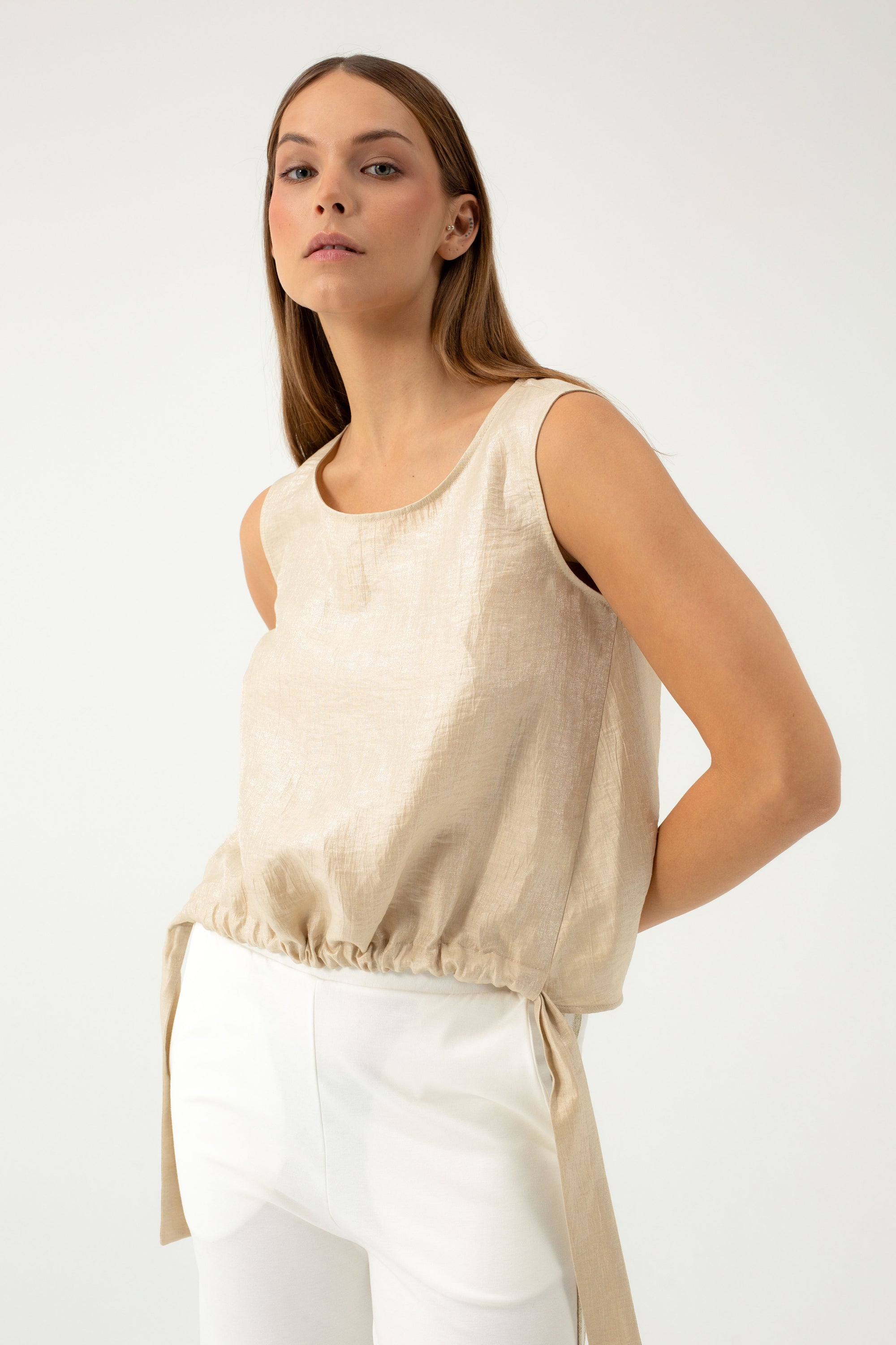 SLEEVELESS BEIGE BLOUSE WITH LINEN